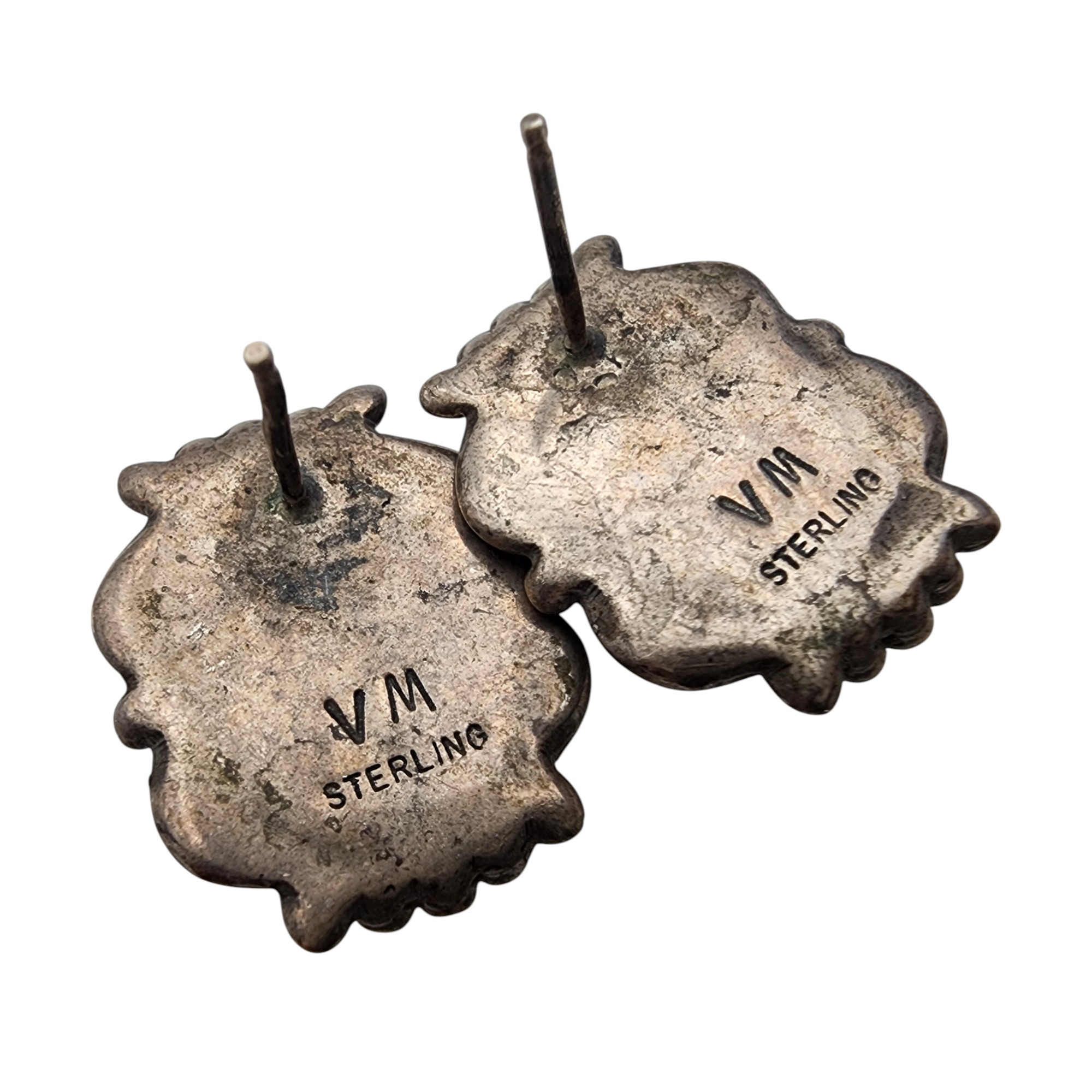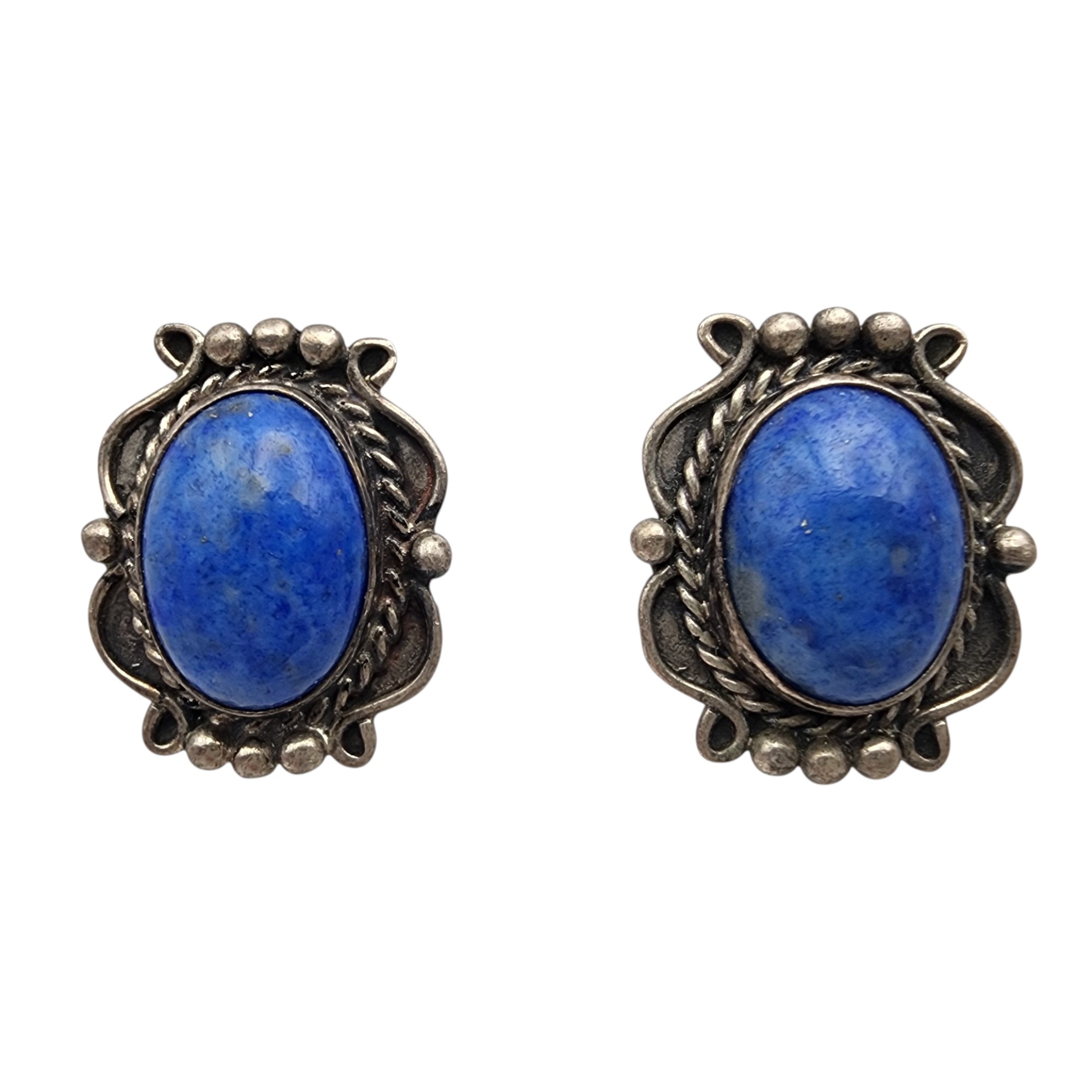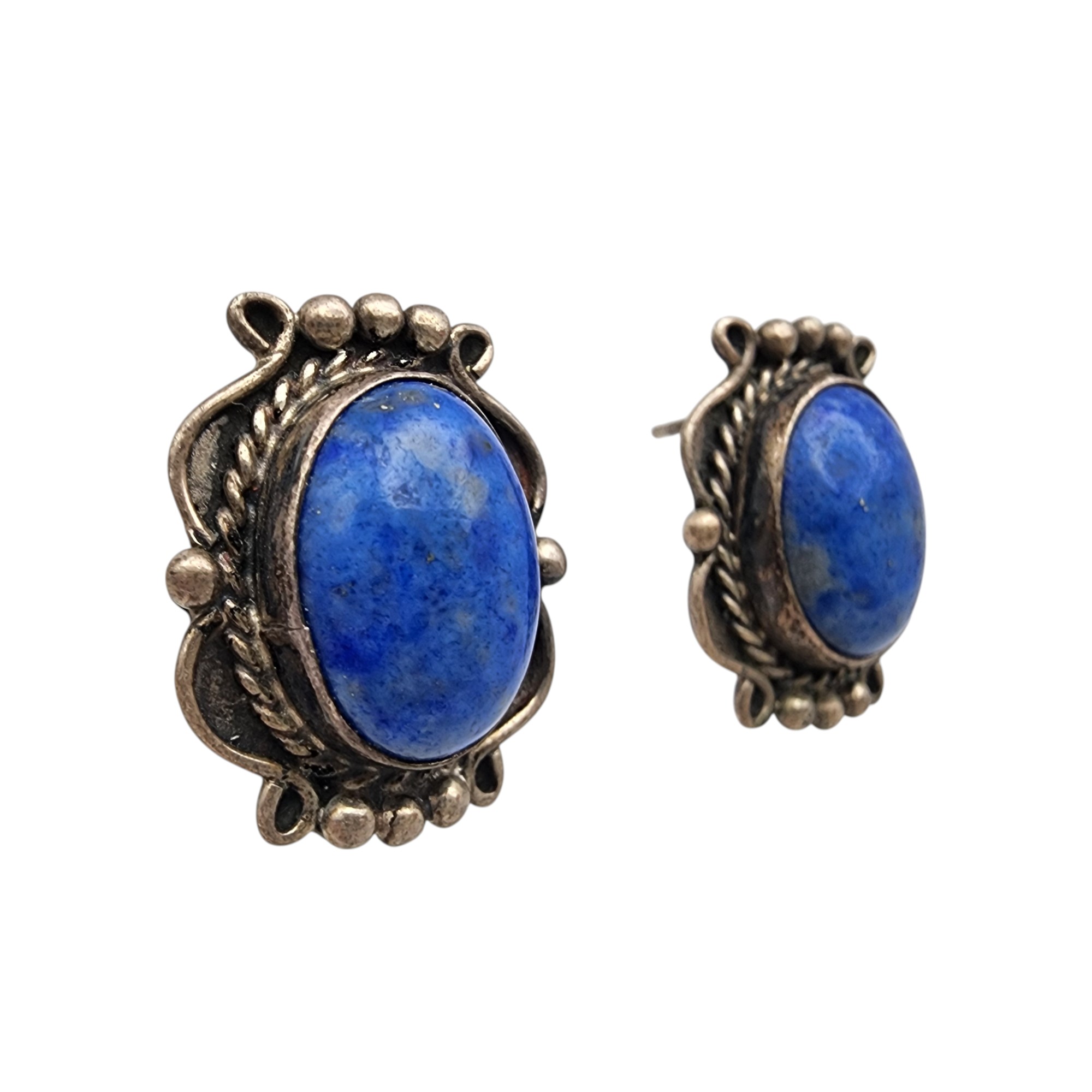 Signed VM Navajo Sterling Denim Lapis Earrings, 7.6g