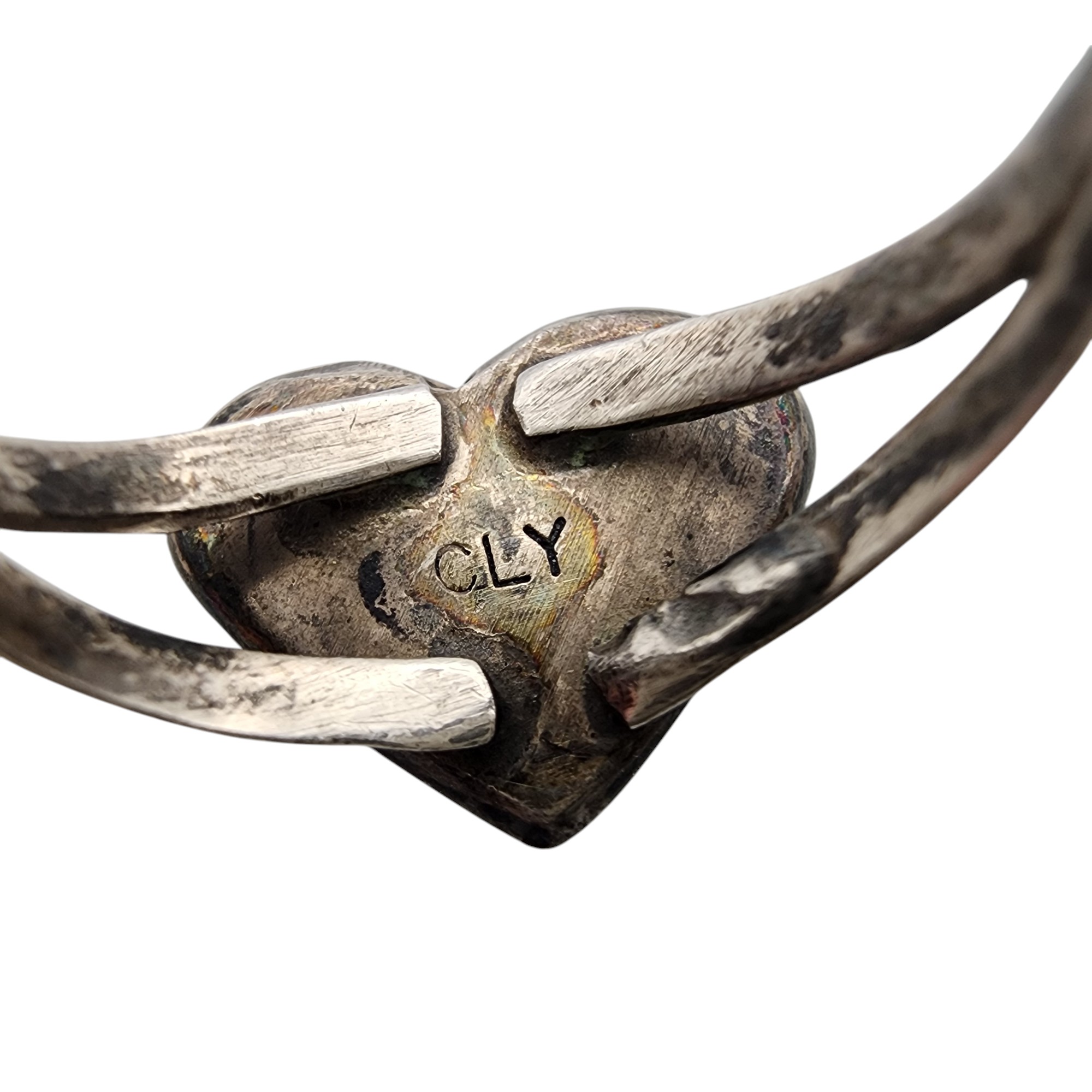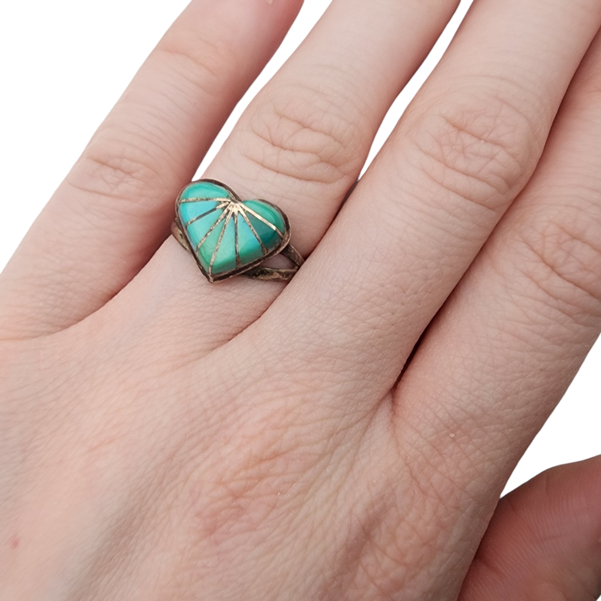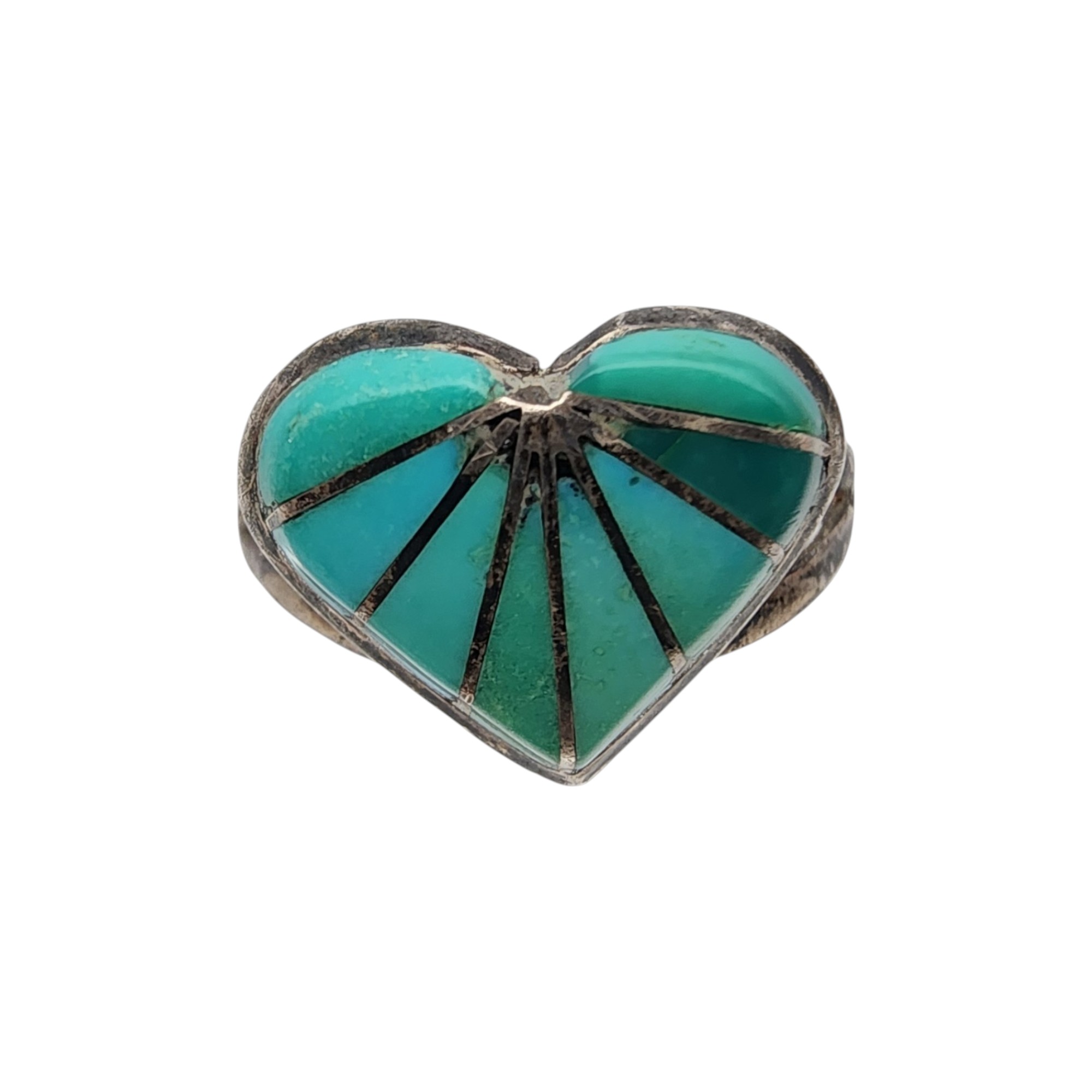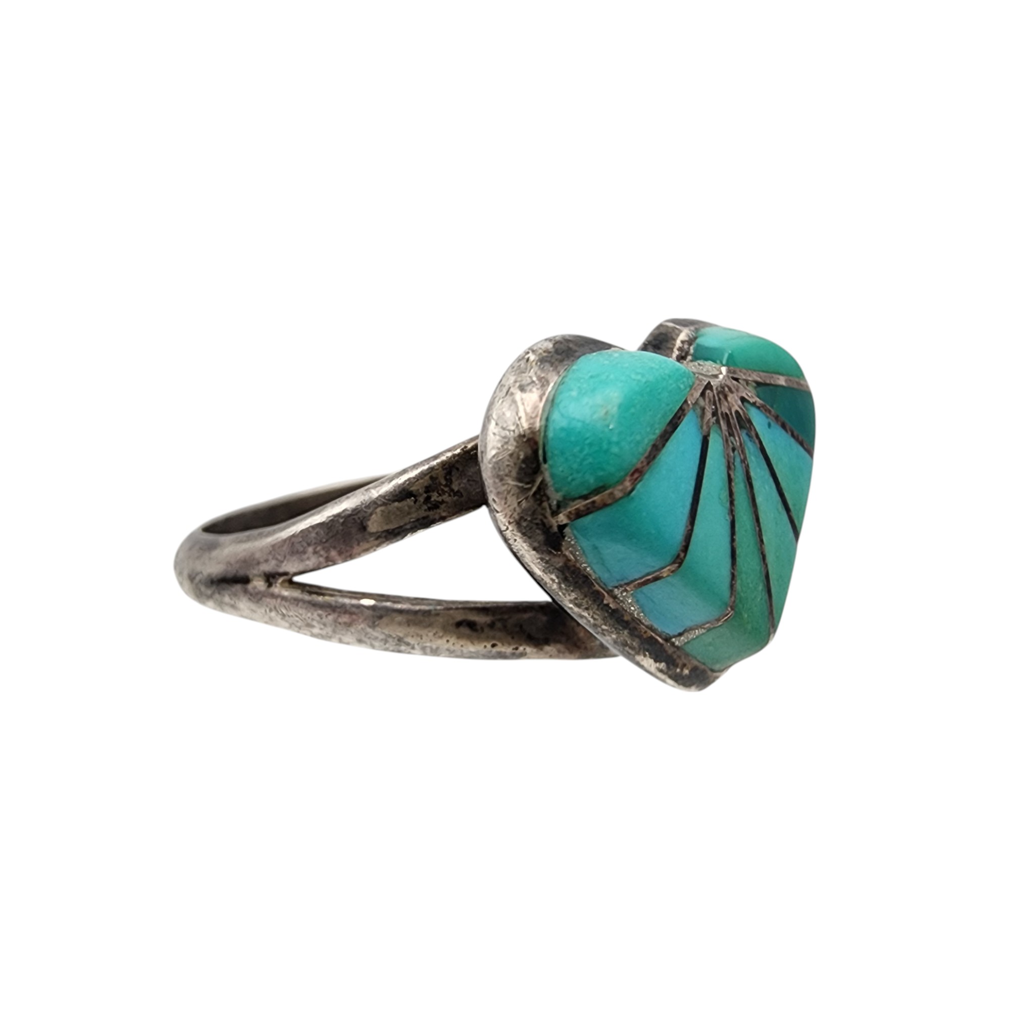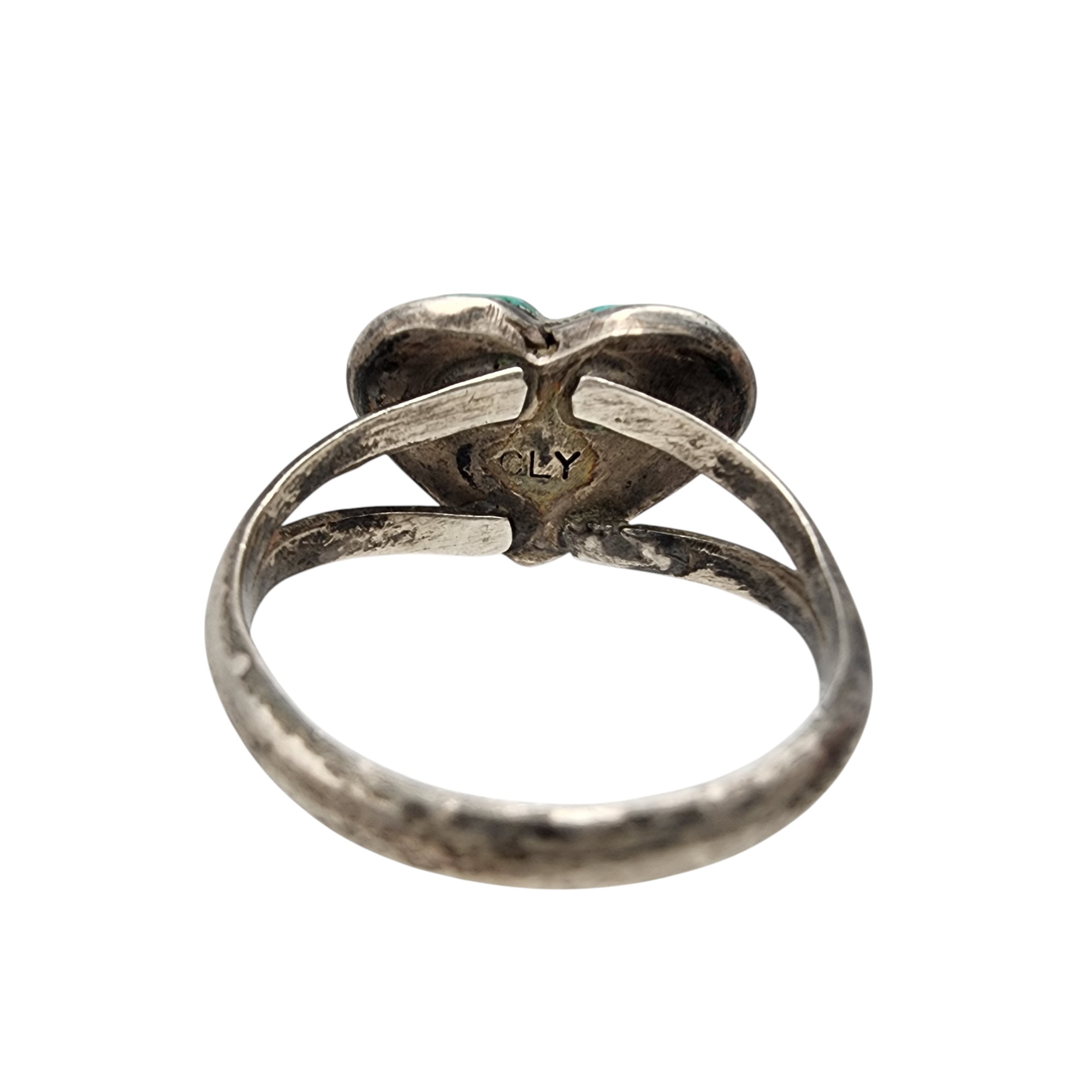 John Cly Zuni Sterling Turquoise Inlay Heart Ring Sz 5.5, 2.9g
