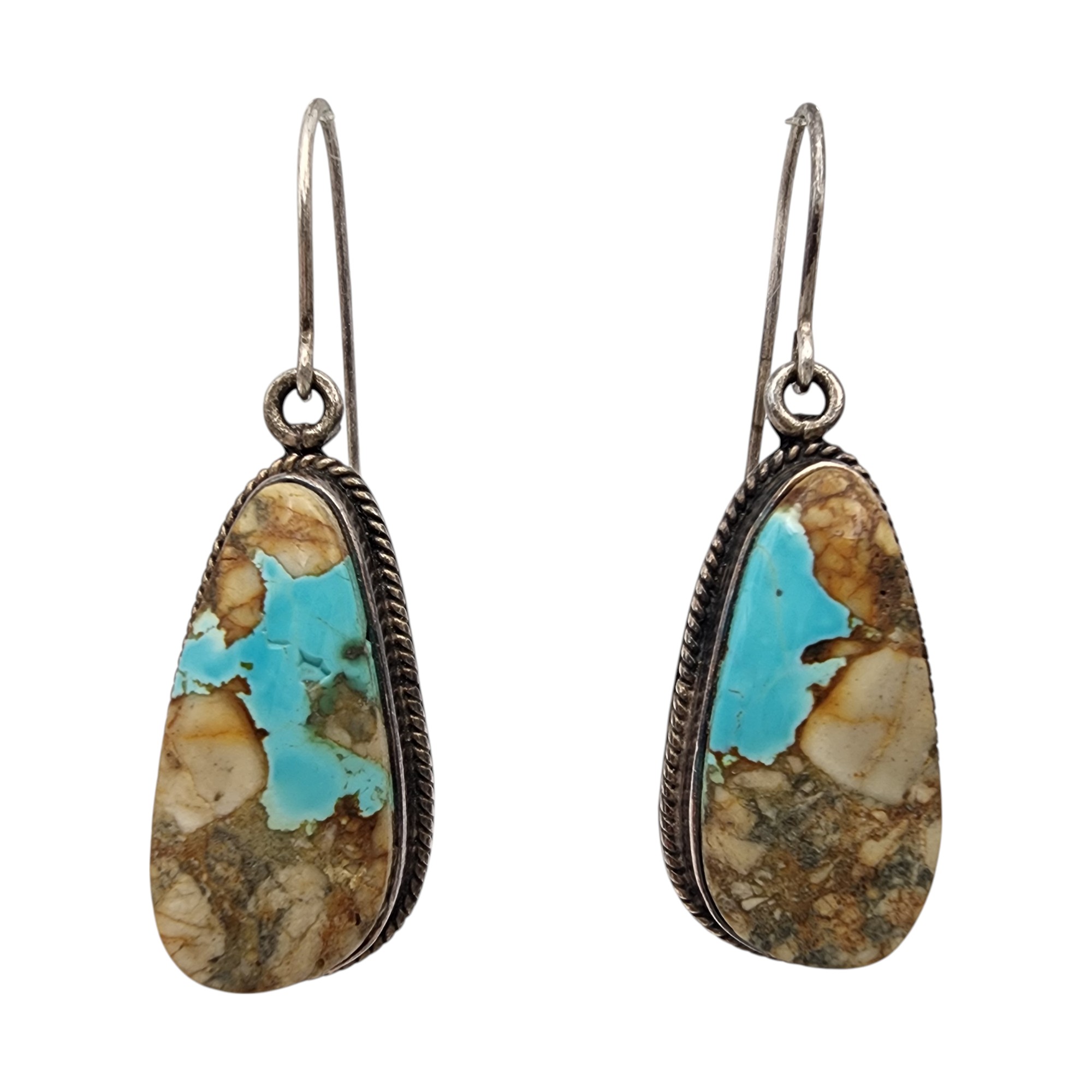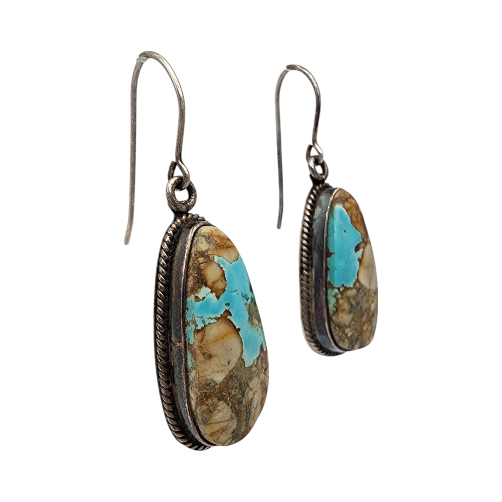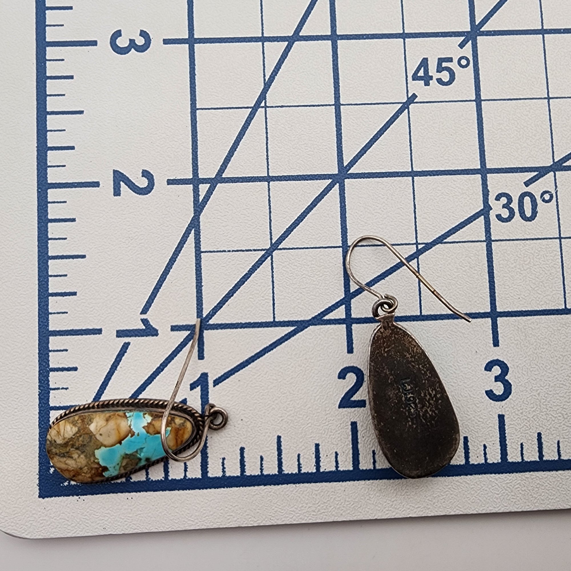 Signed LJ Sterling Turquoise Dangle Earrings, 9.6g