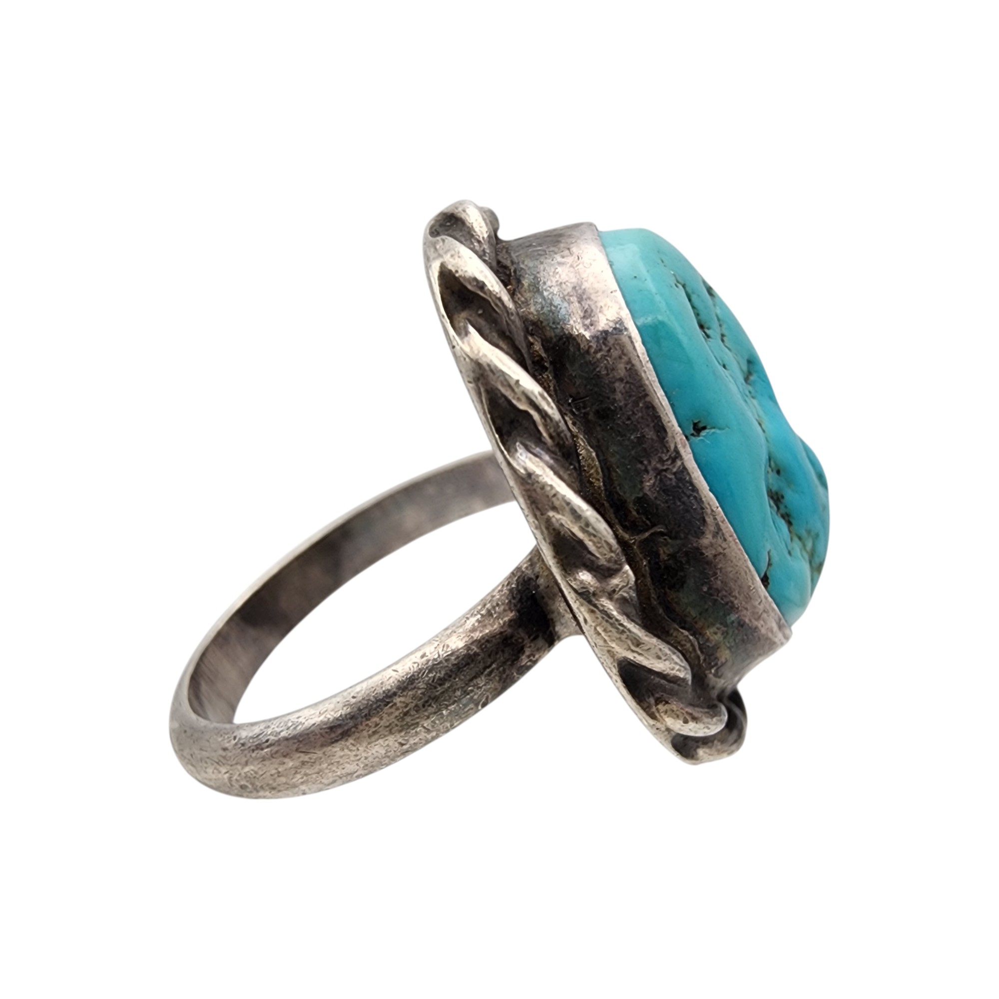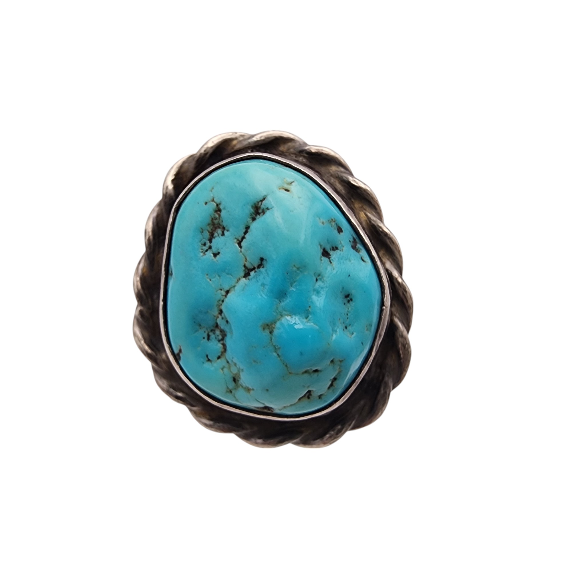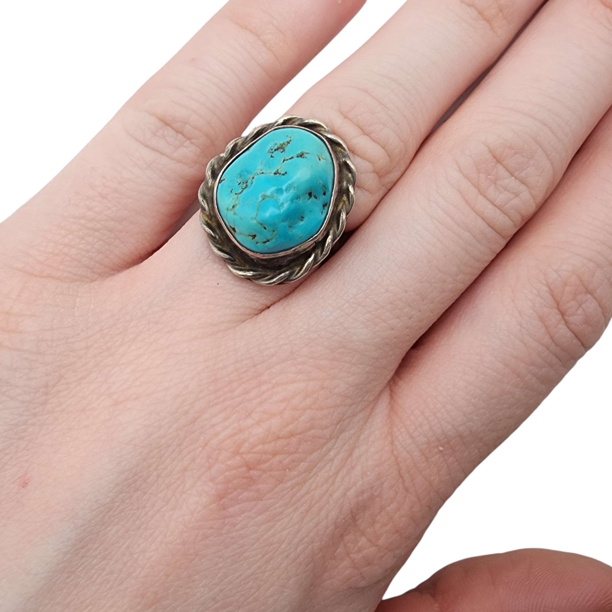 Signed P Navajo Sterling Turquoise Chunk Ring Sz 6, 6.9g