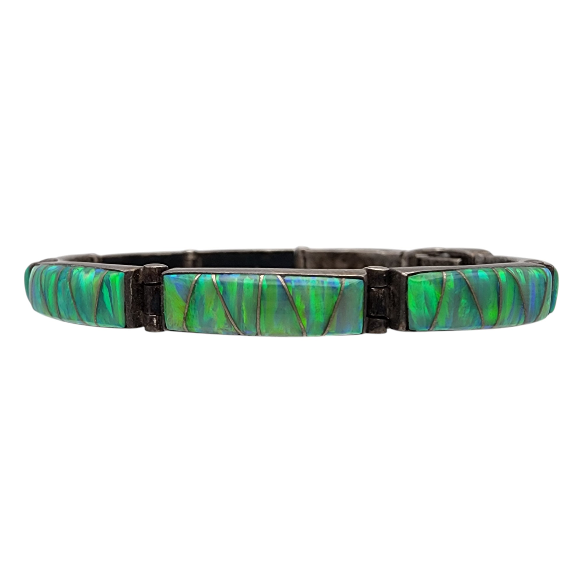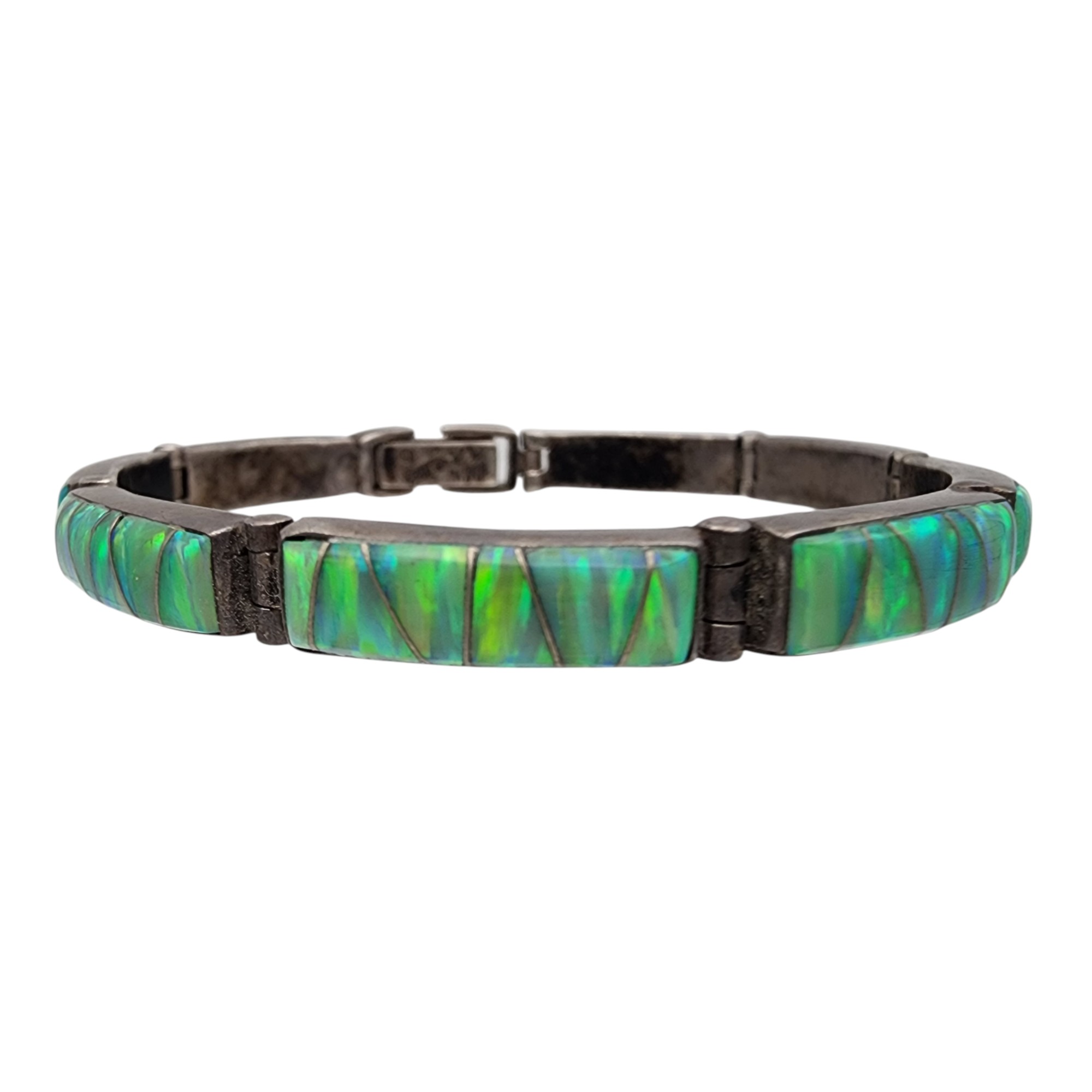 Southwestern Signed Sterling Opal Inlay Link Bracelet, 11.9g
