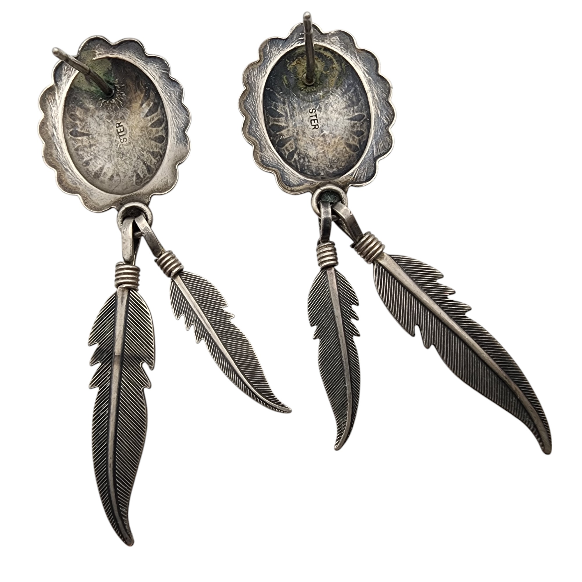 Navajo Sterling Concho Feather Dangle Earrings, 5.2g