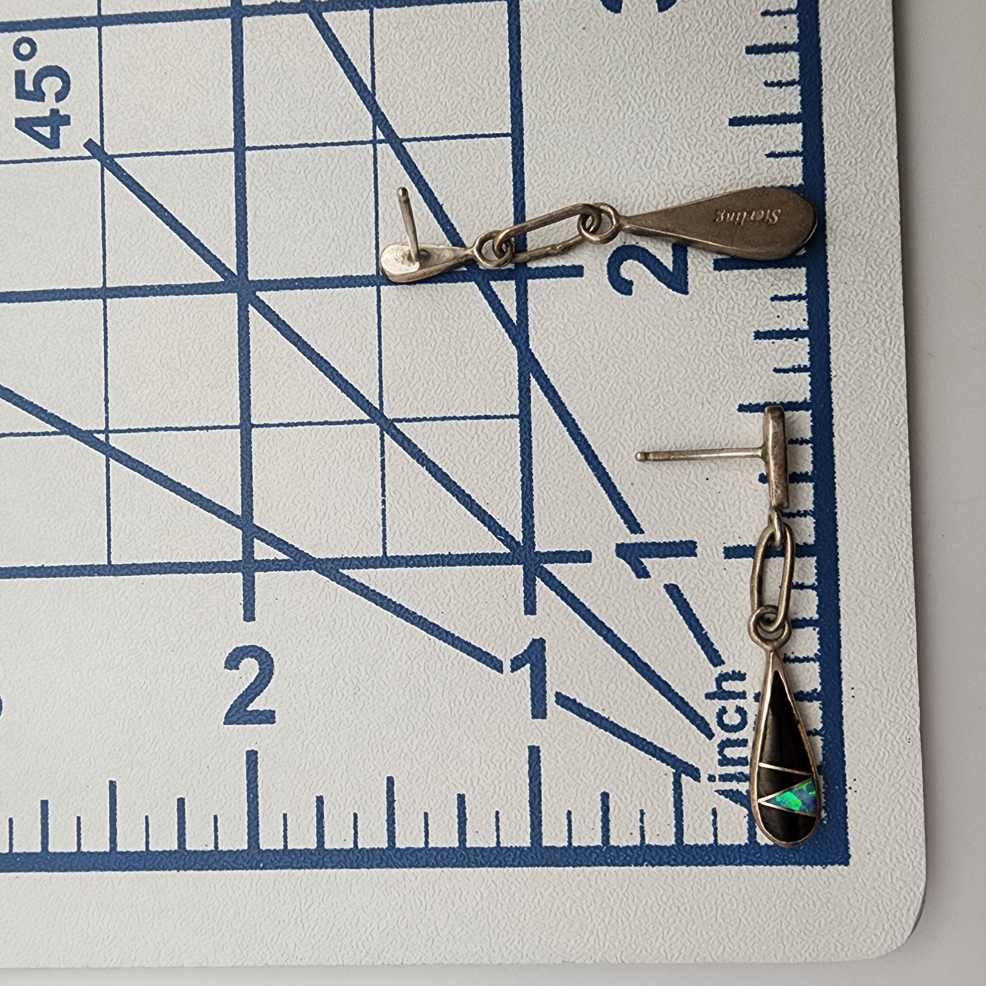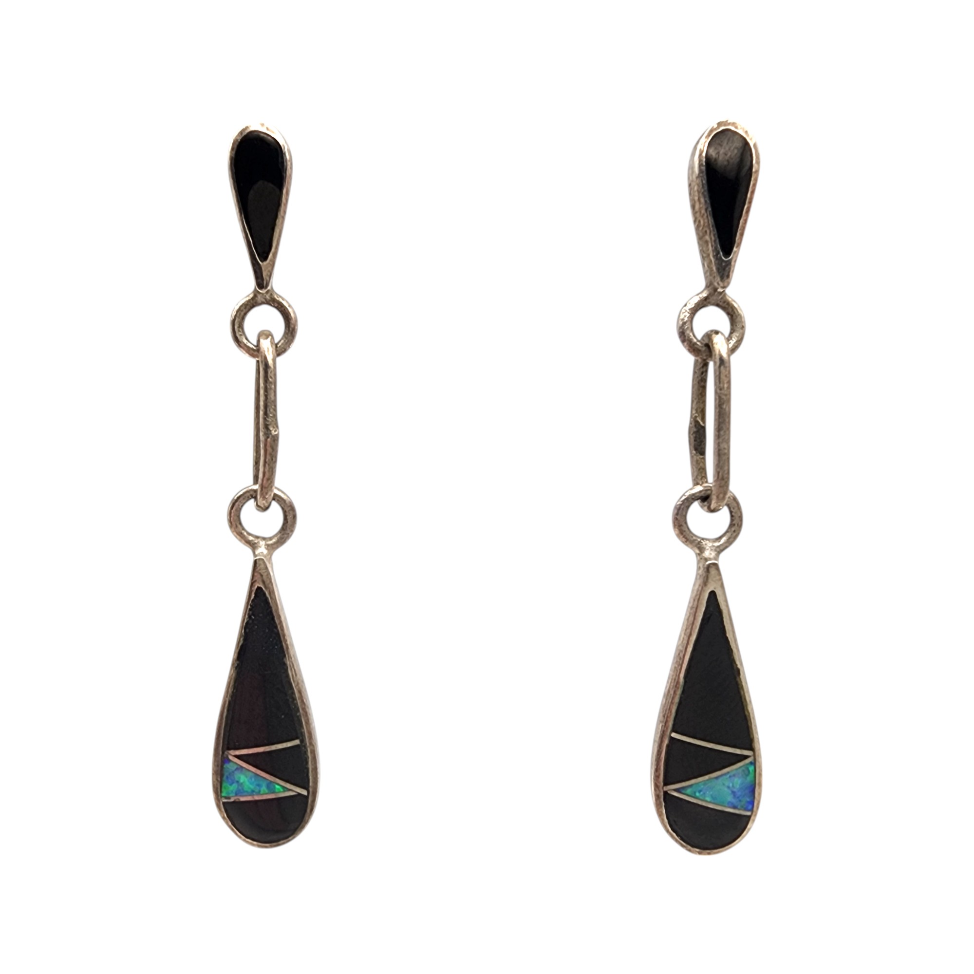 Southwestern Sterling Multistone Inlay Dangle Earrings, 2.5g