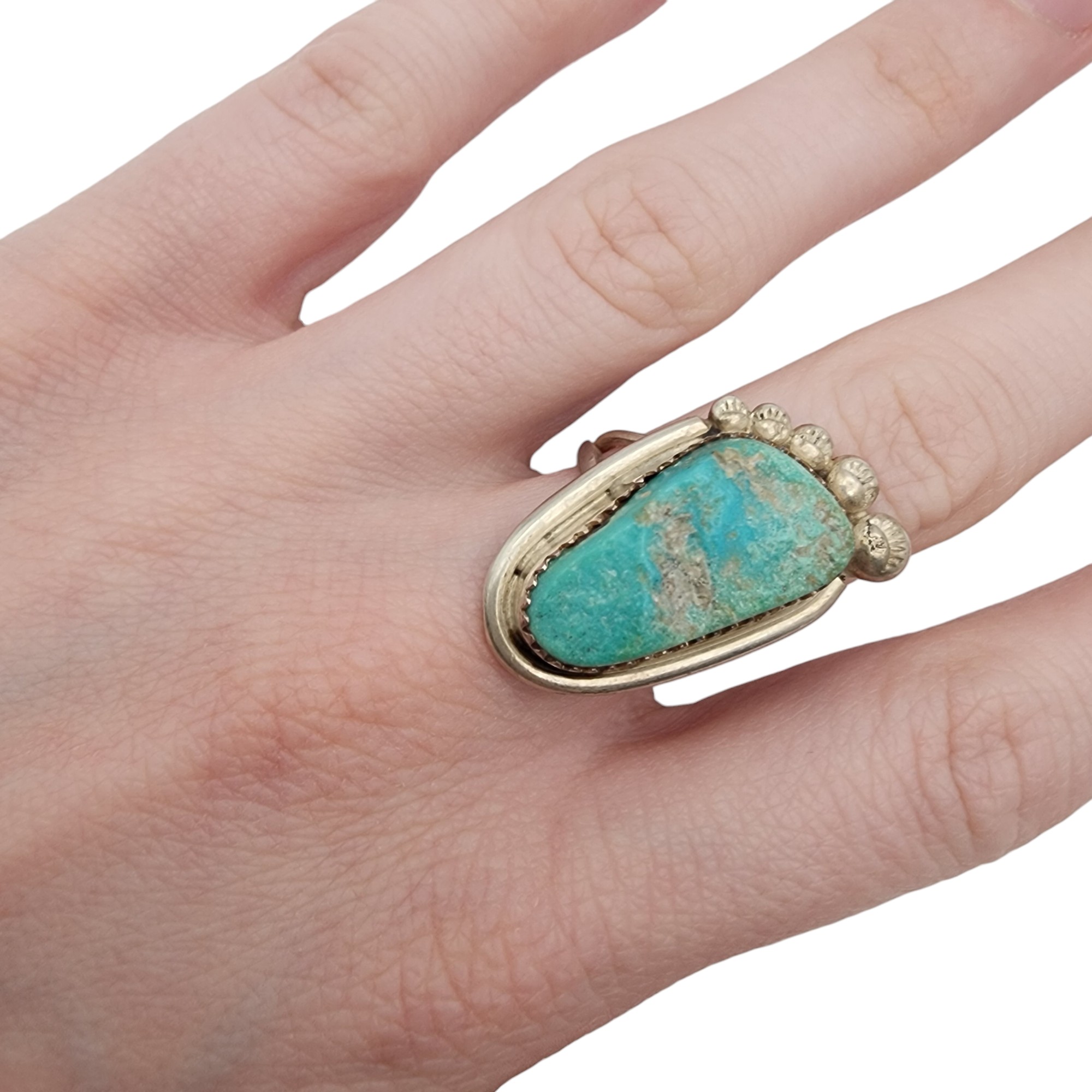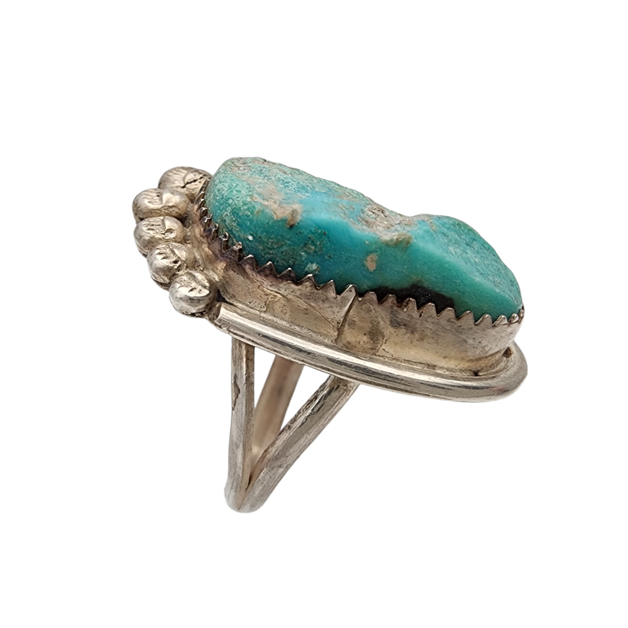 Southwestern Sterling Turquoise Chunk Ring Sz 6.5, 9.9g