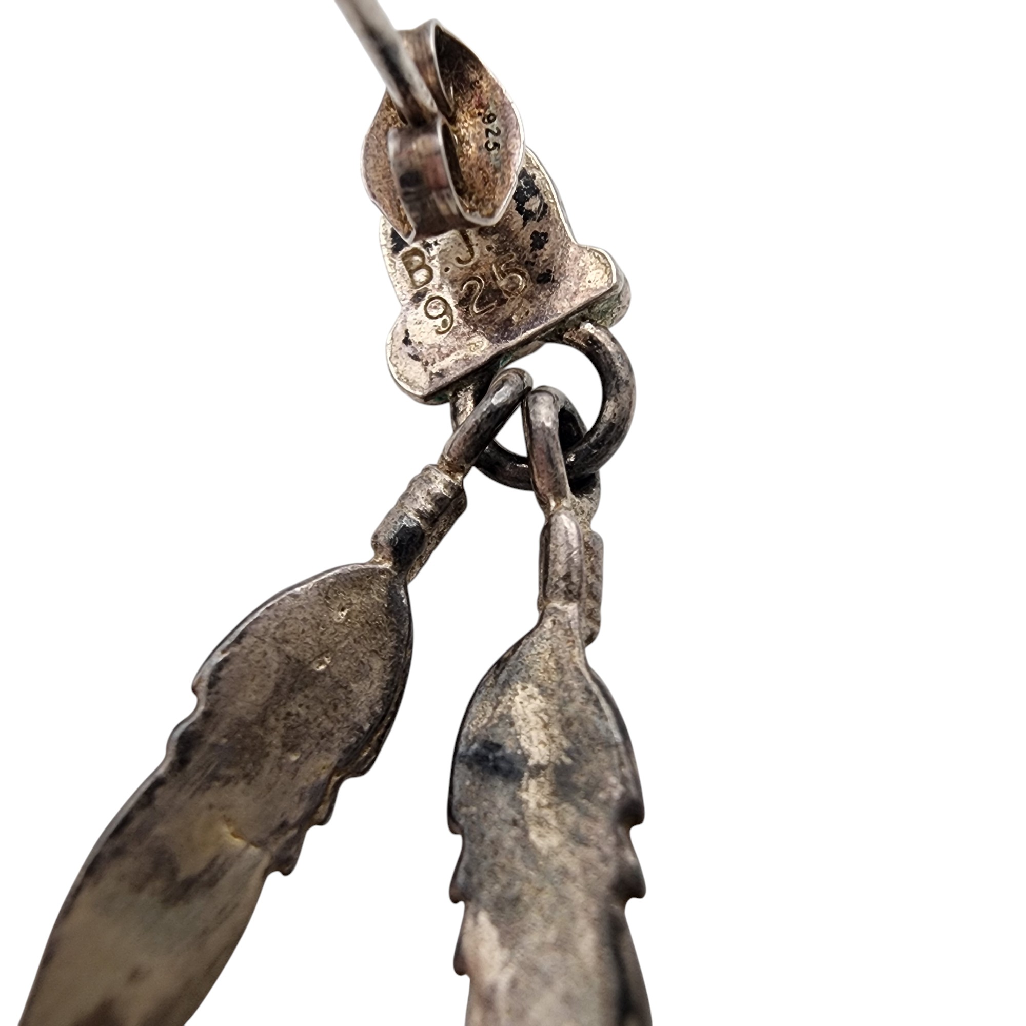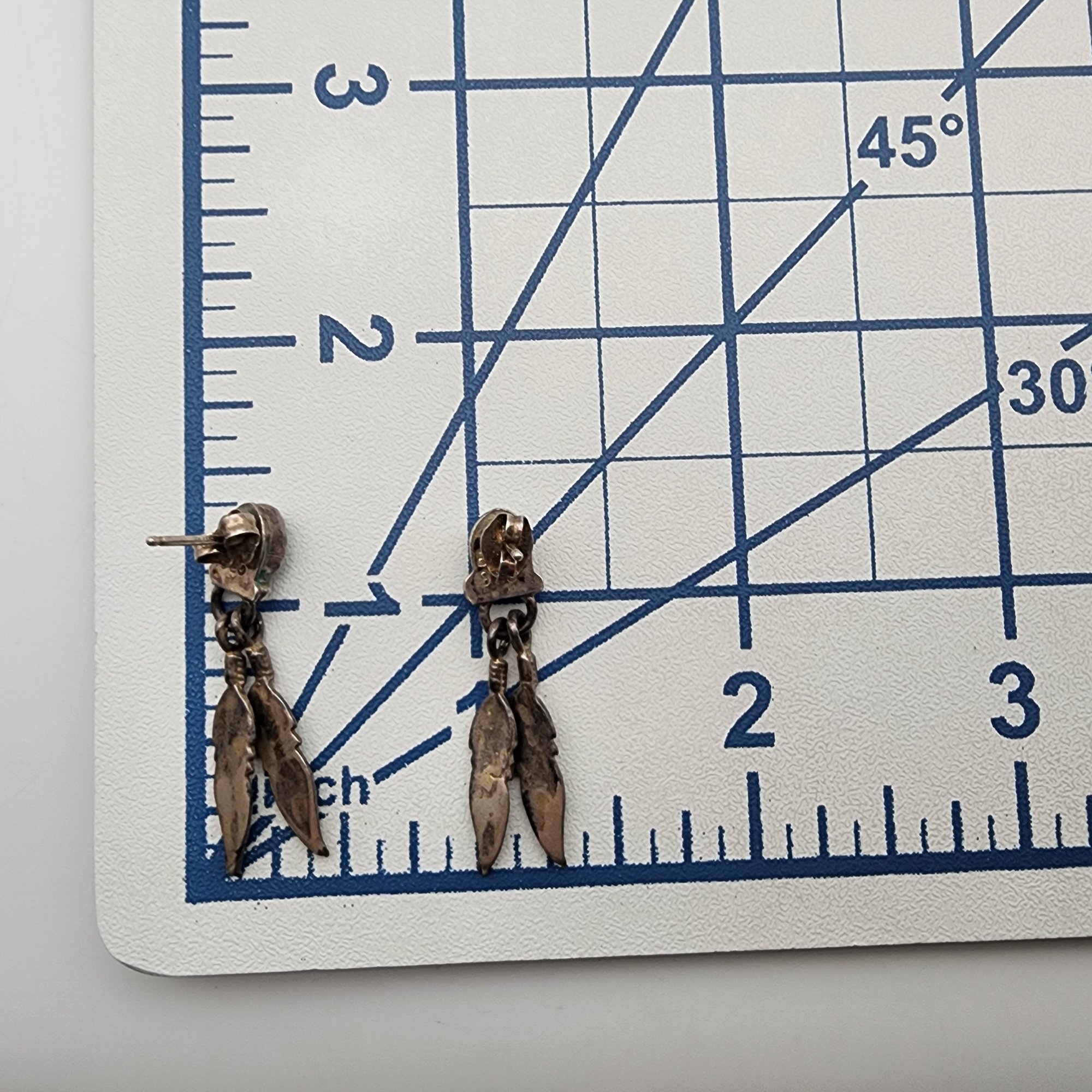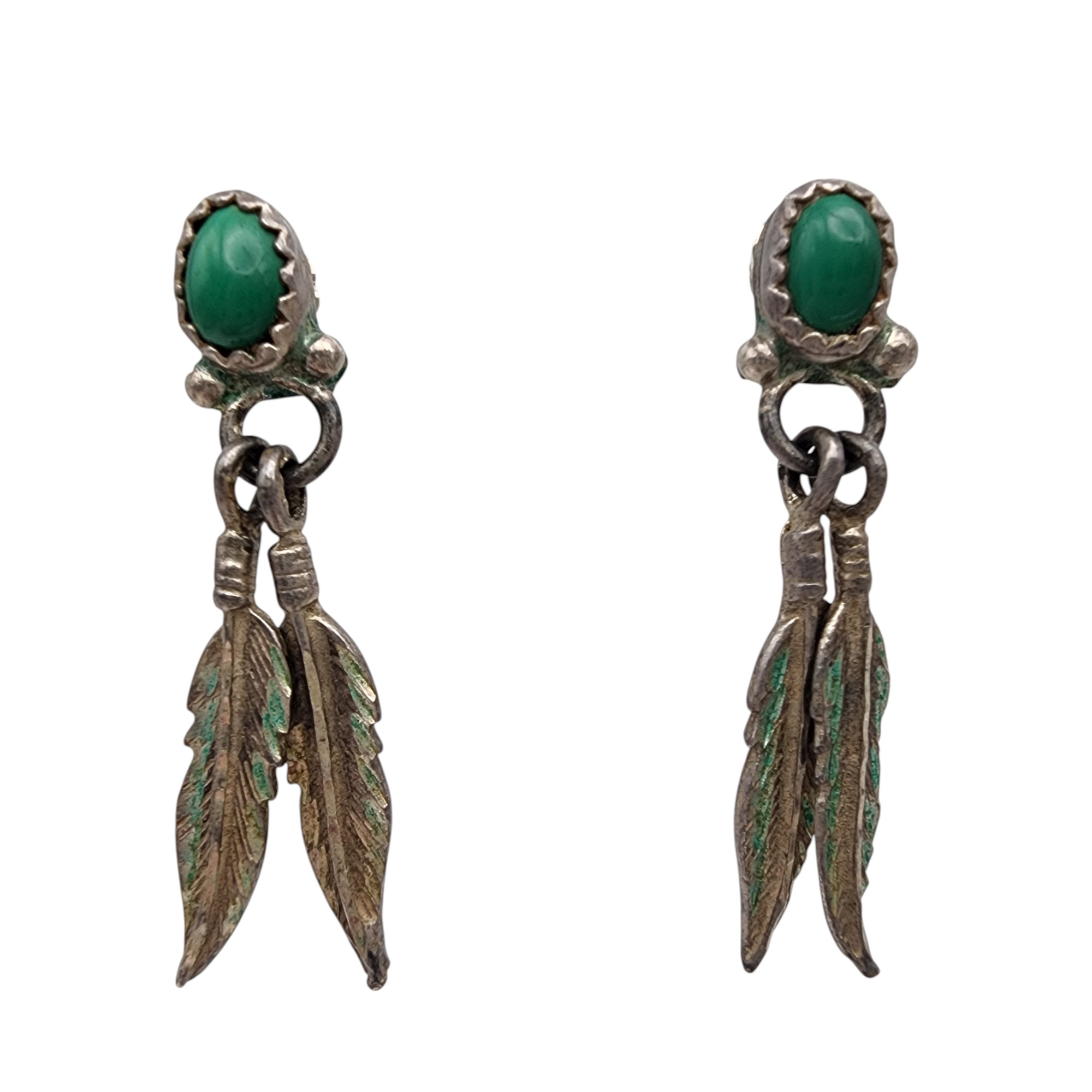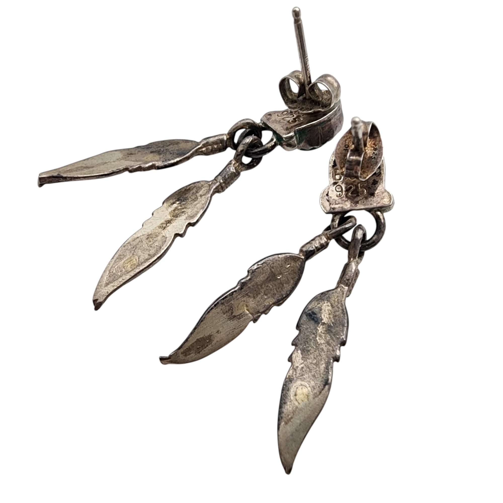 Southwestern Sterling Malachite Feather Dangle Earrings, 4.2g