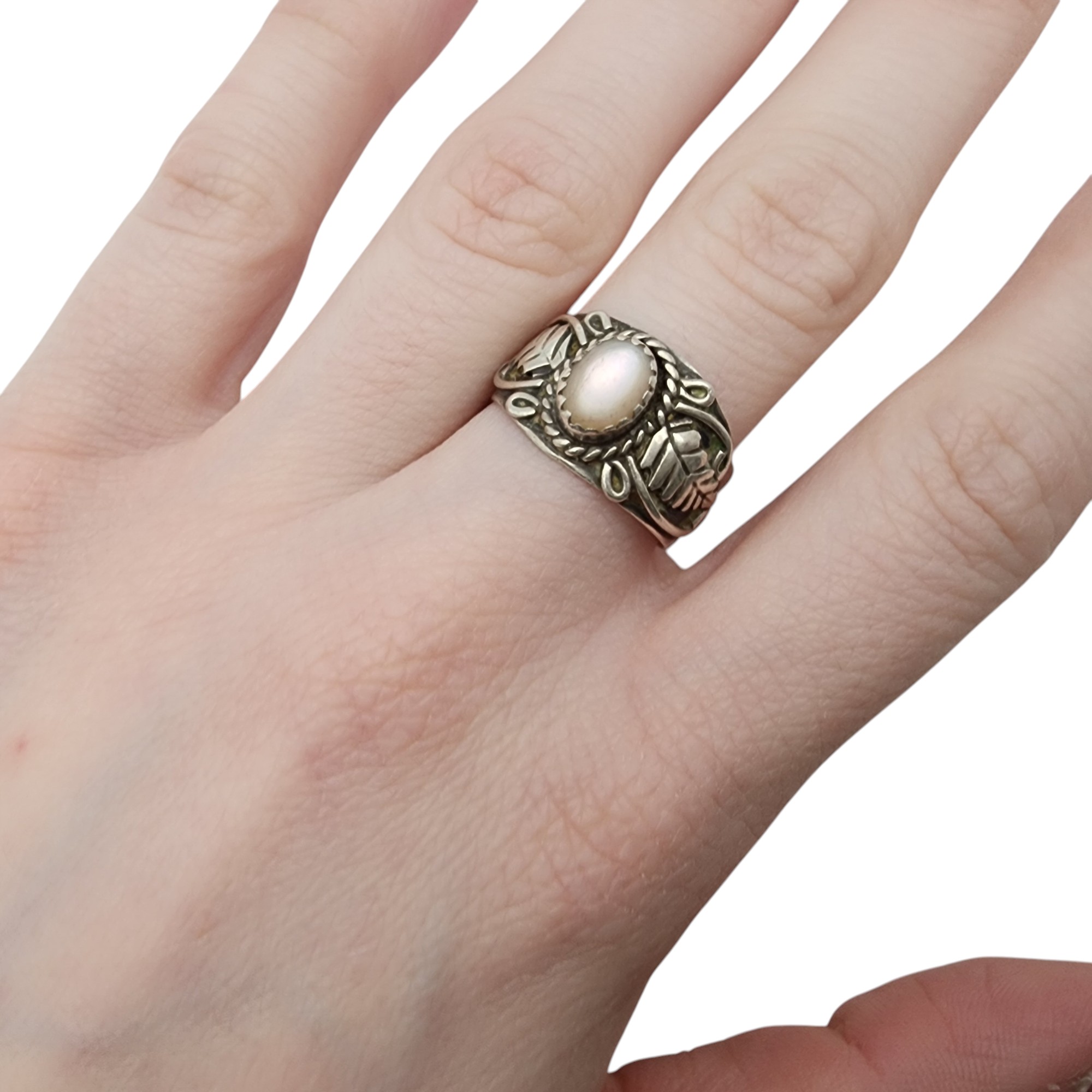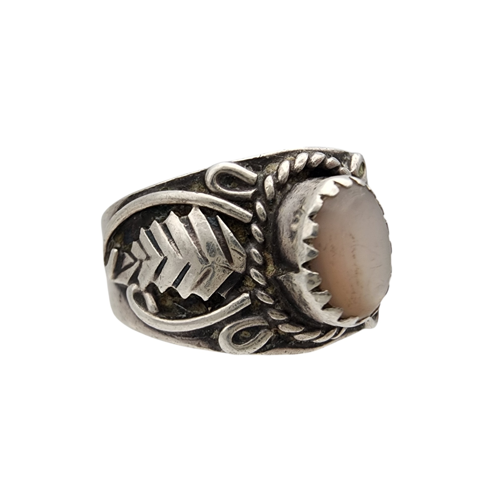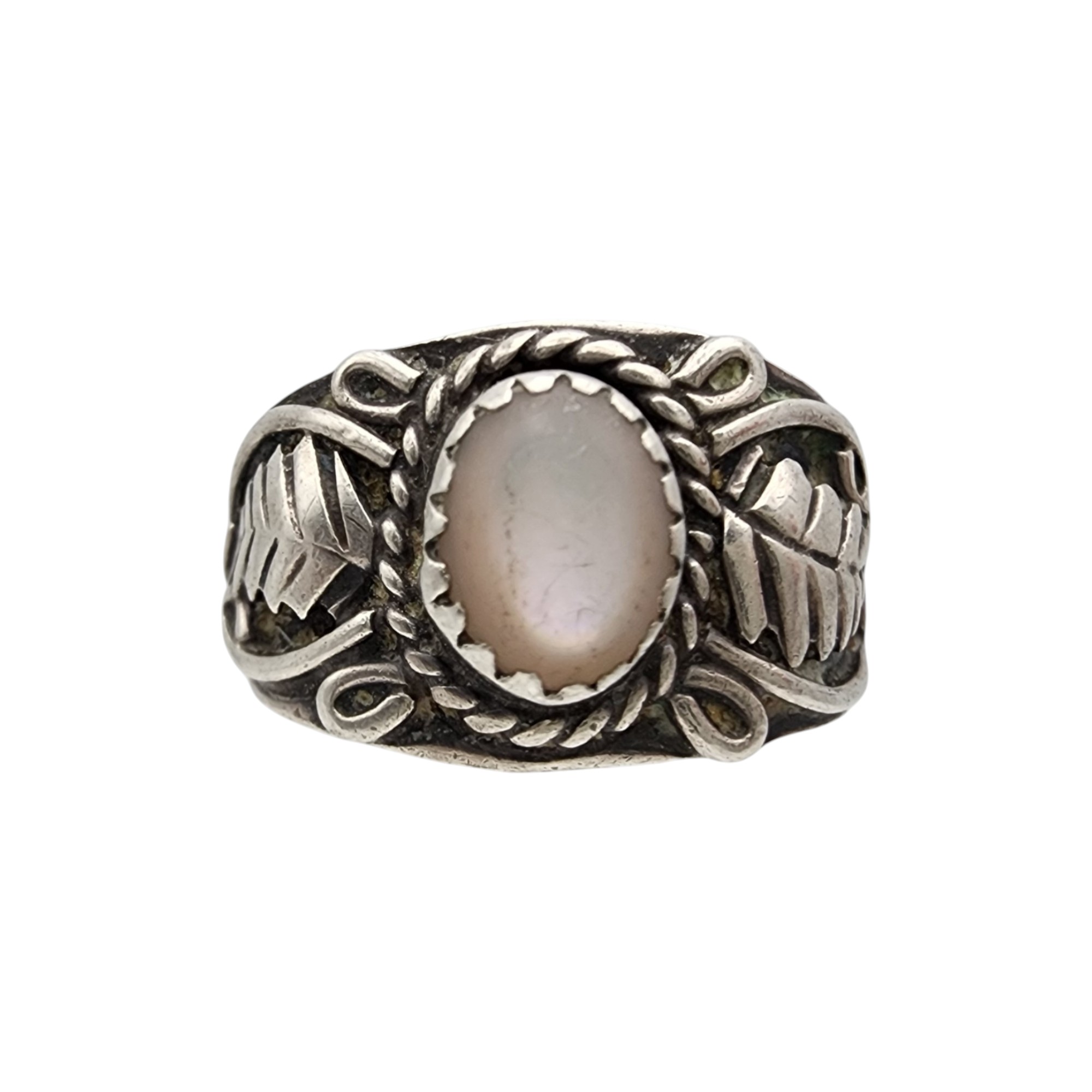 Tully Sam Navajo Sterling Mother of Pearl Ring Sz 8, 4.5g