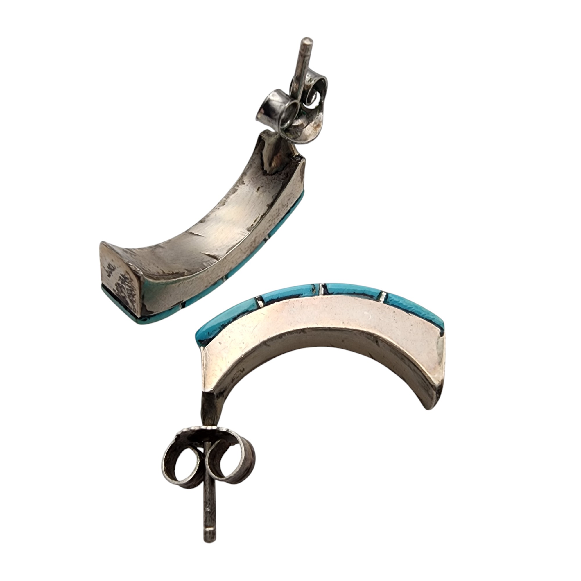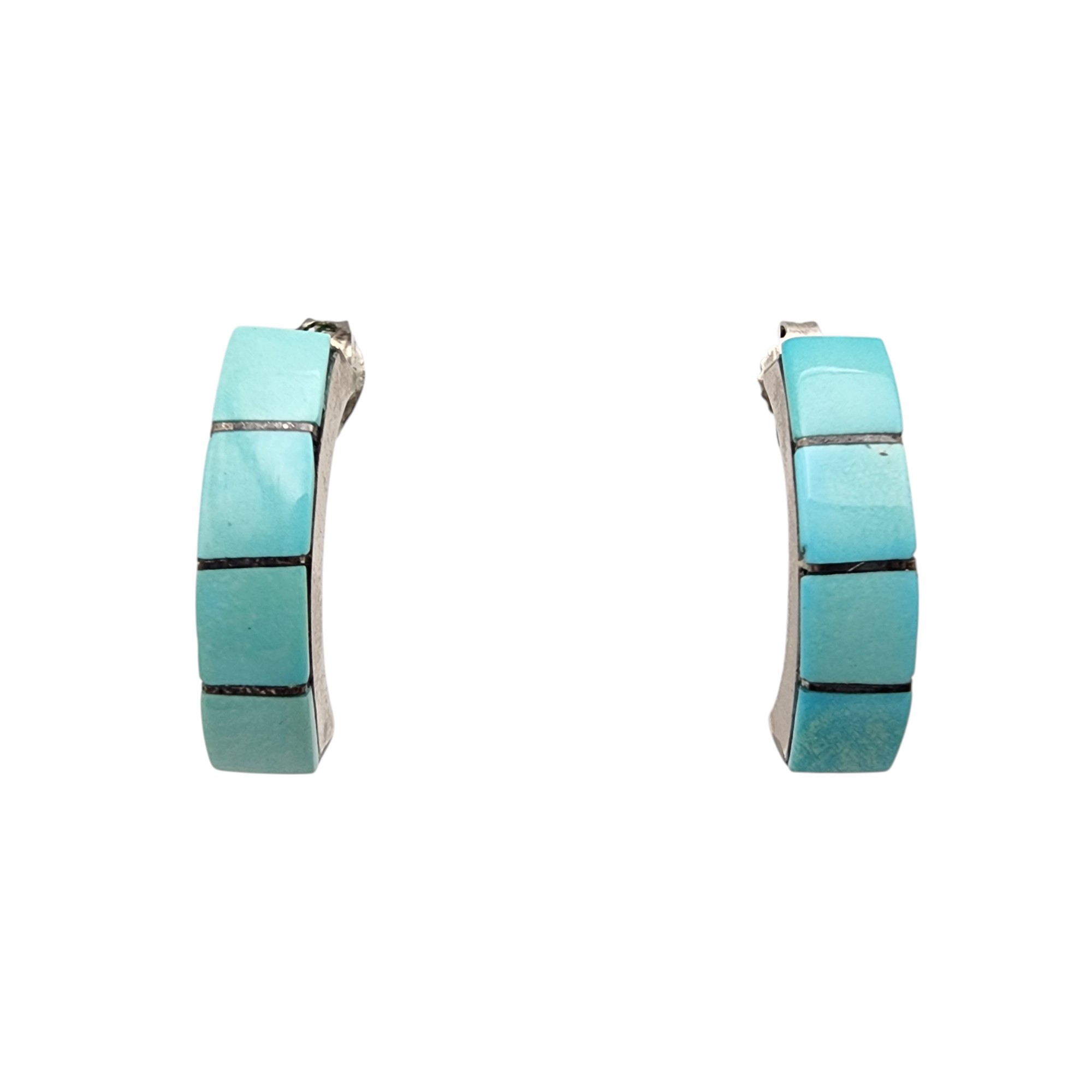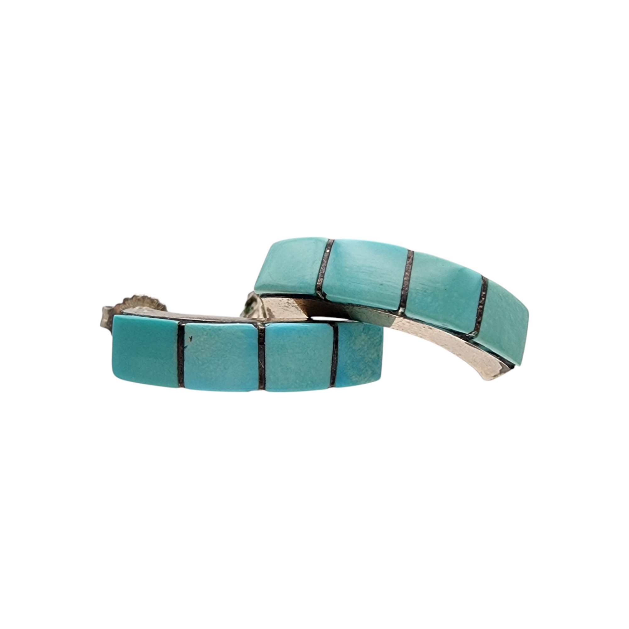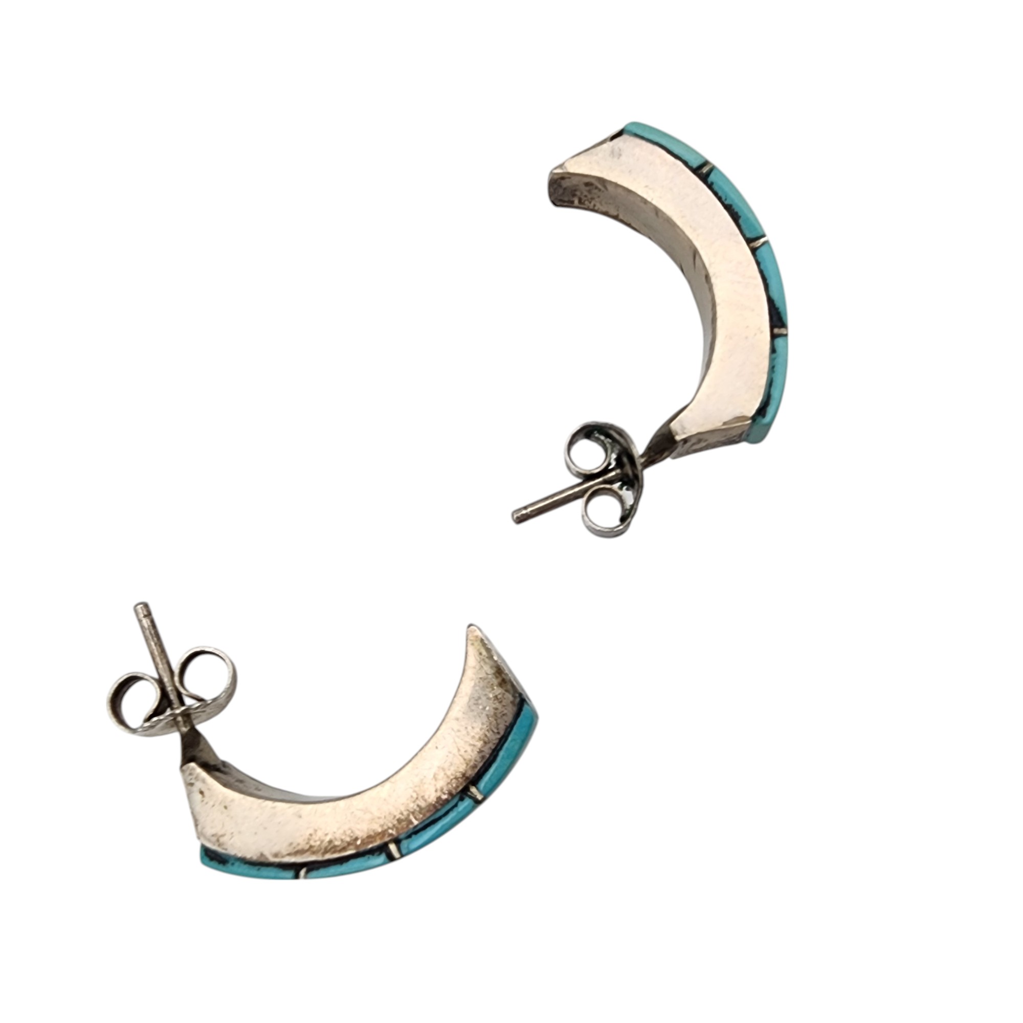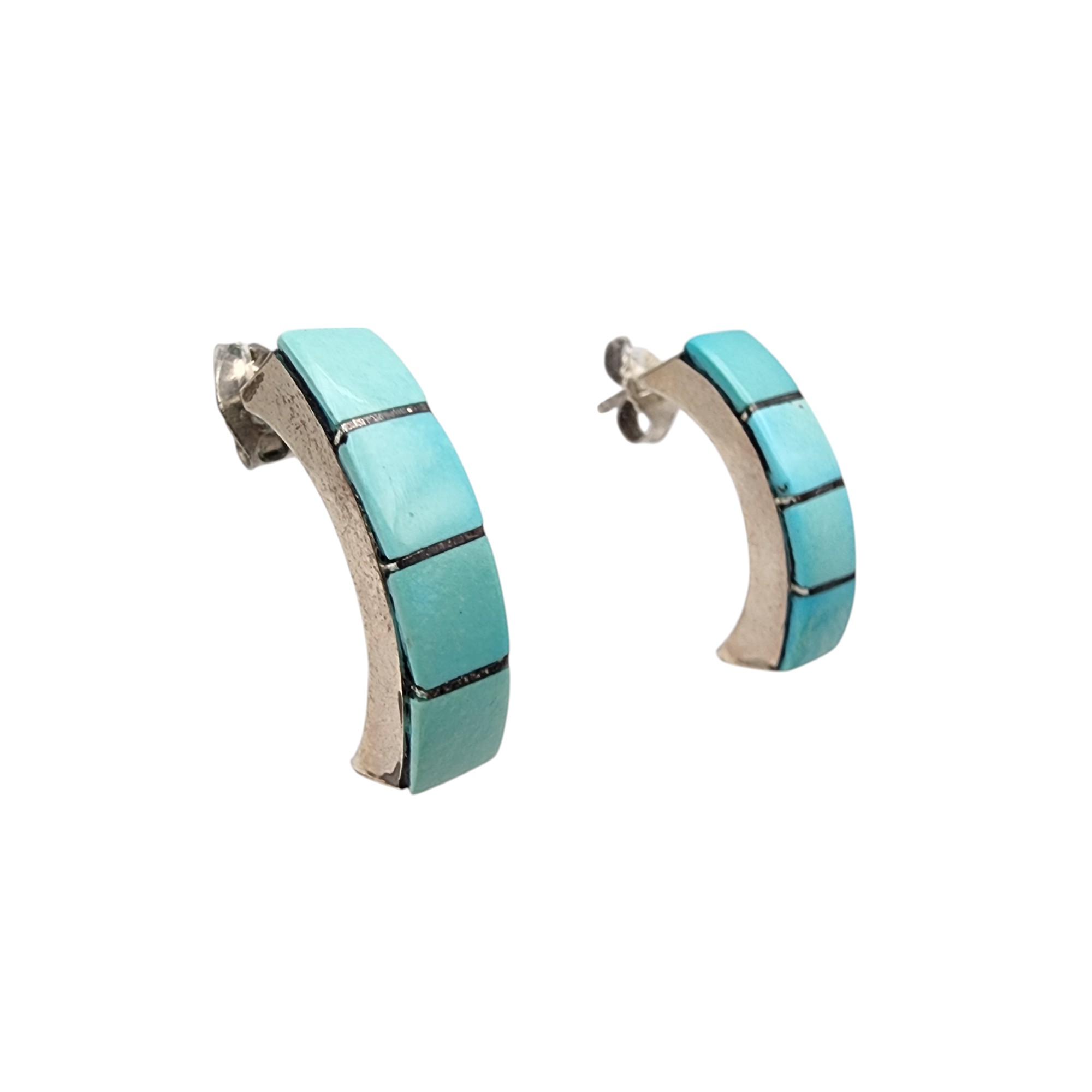 Southwestern Sterling Turquoise Inlay Earrings, 4g