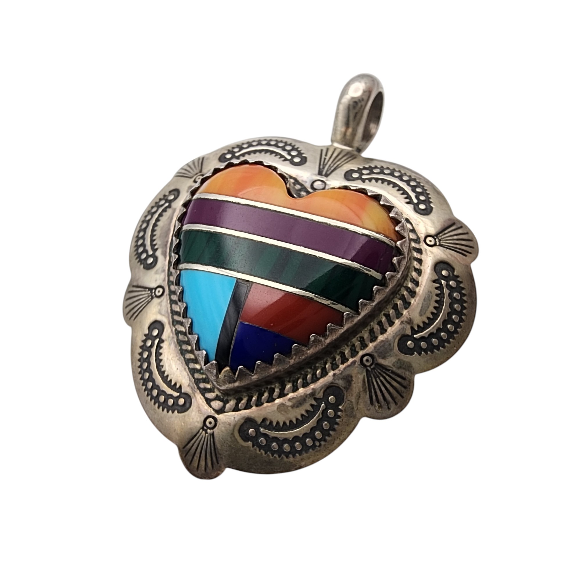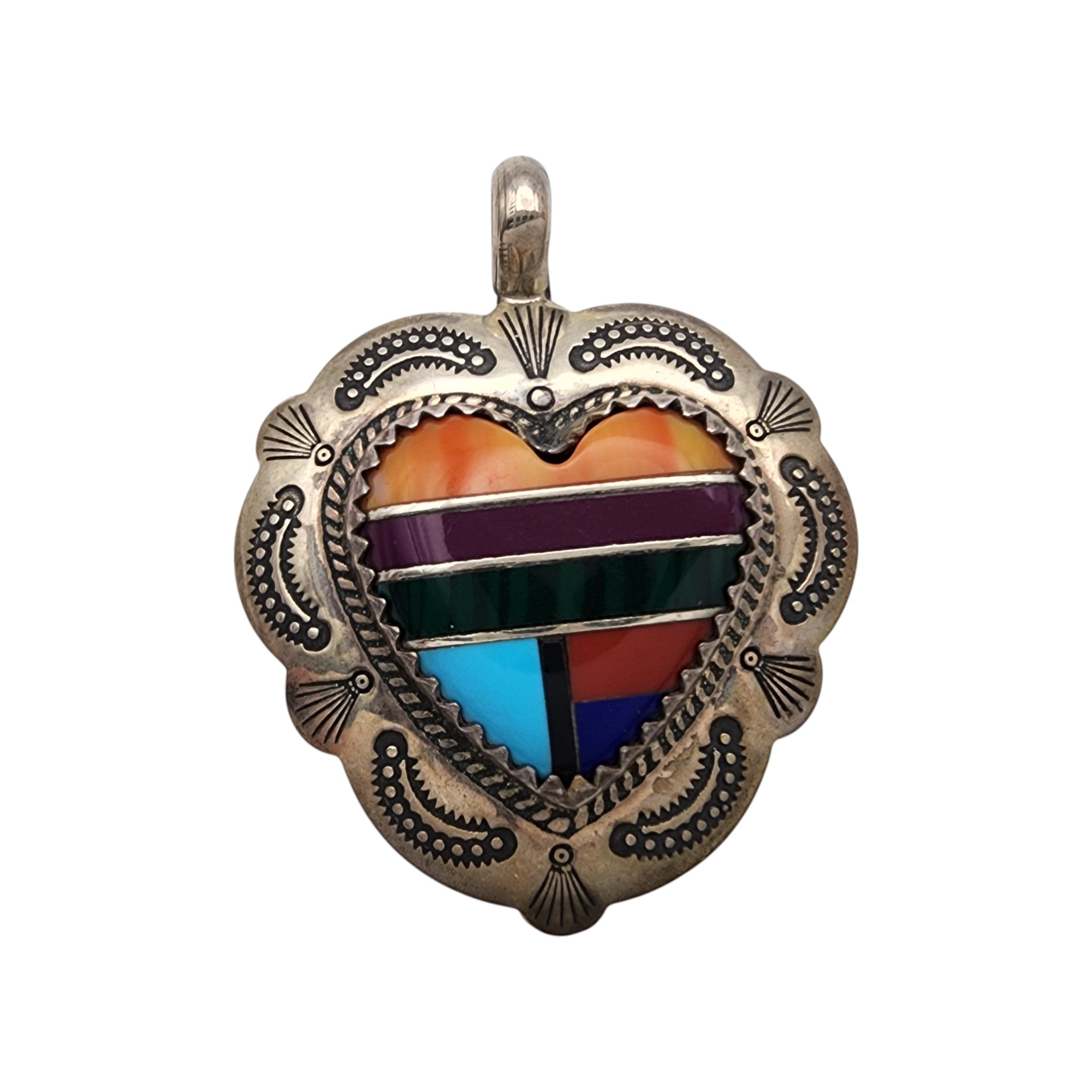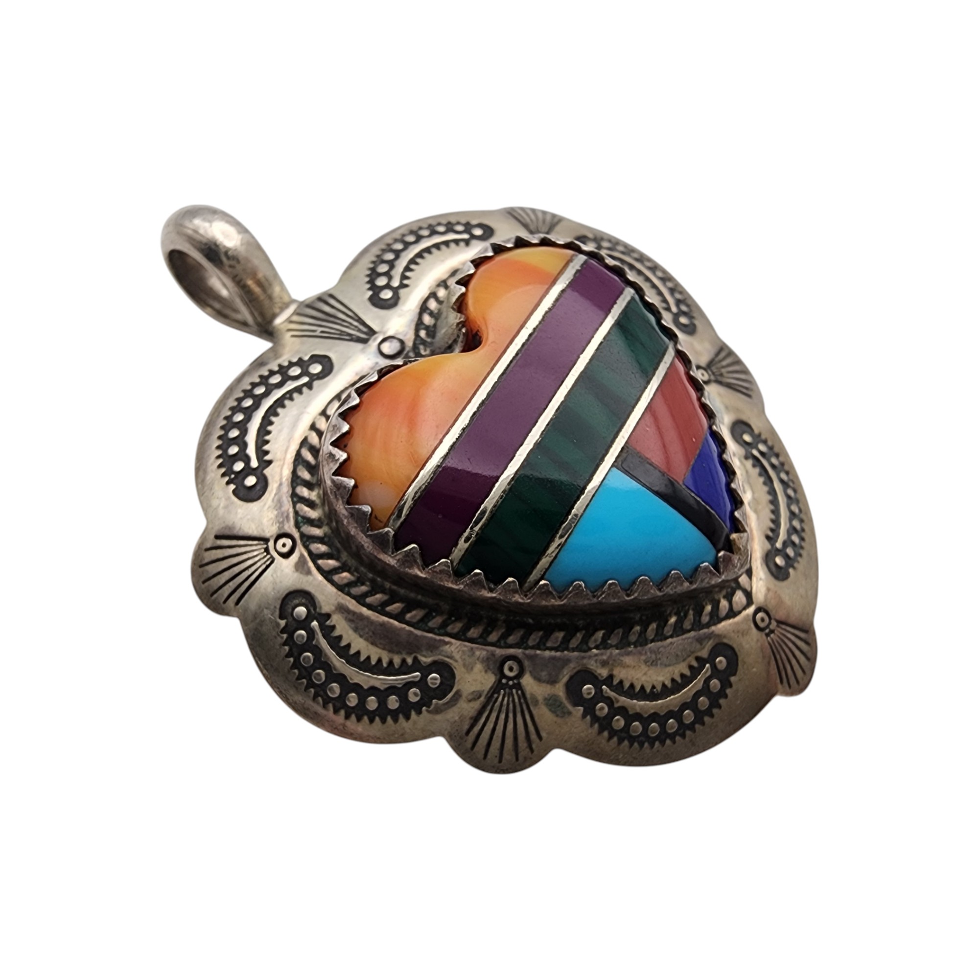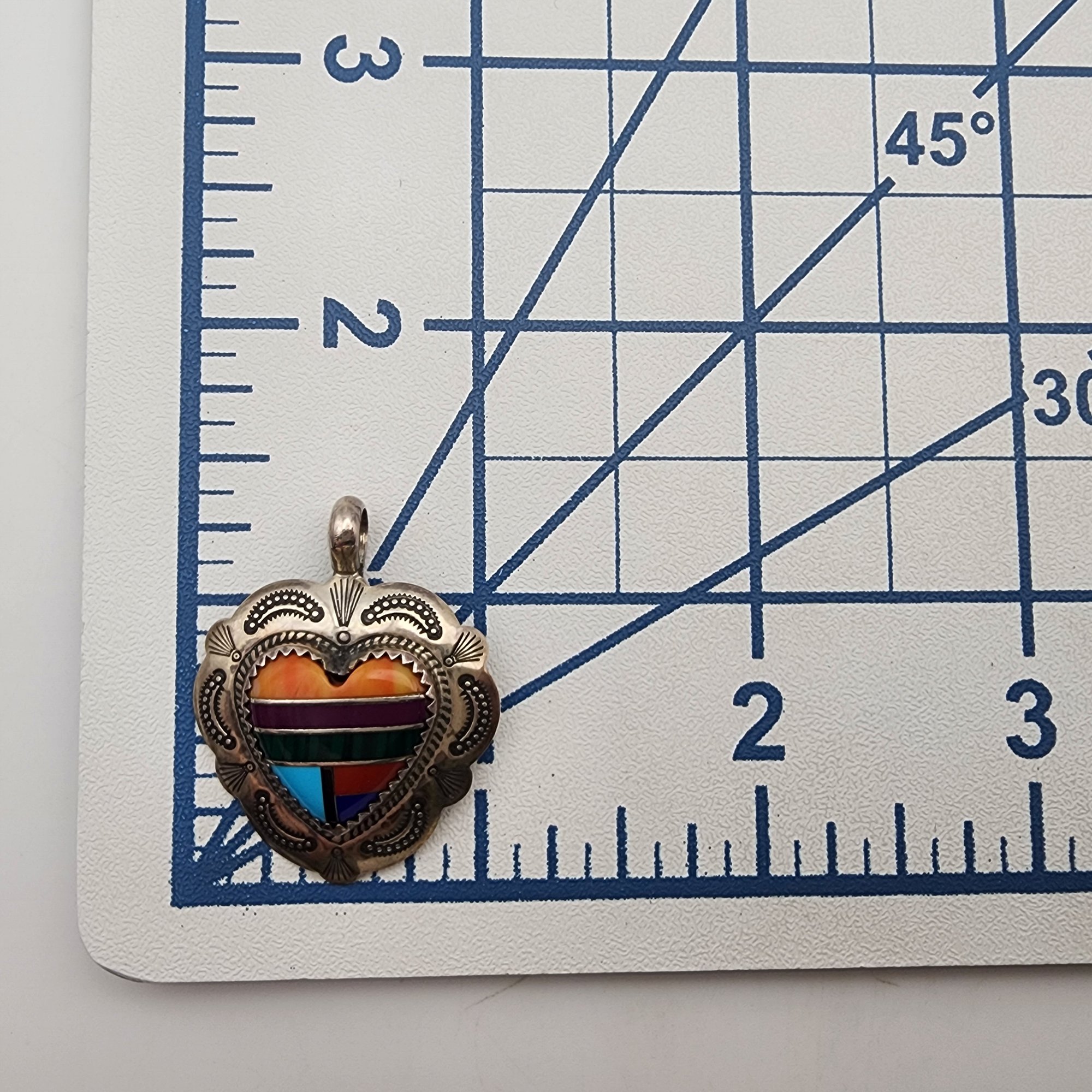 Quoc Trading Sterling Multistone Inlay Heart Pendant, 4.4g
