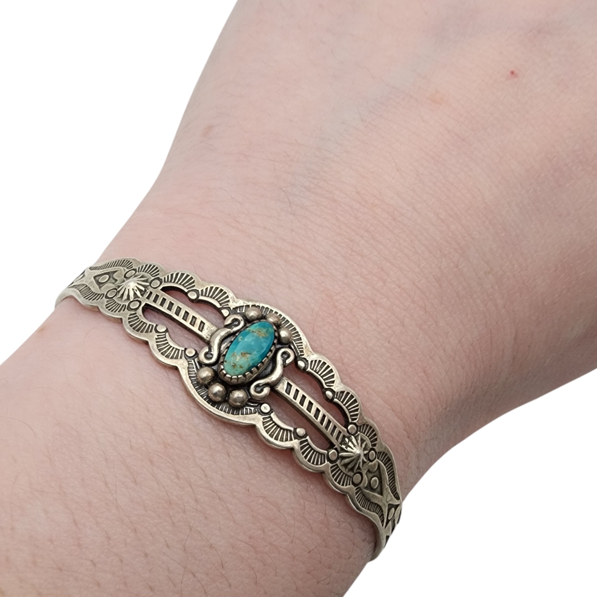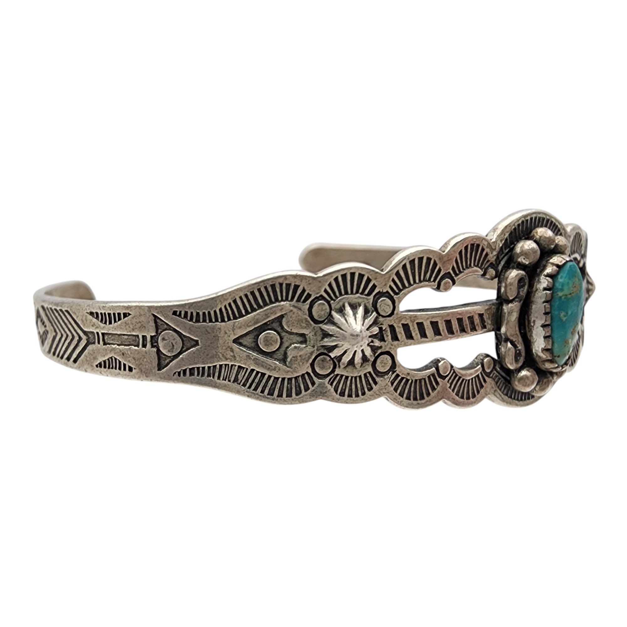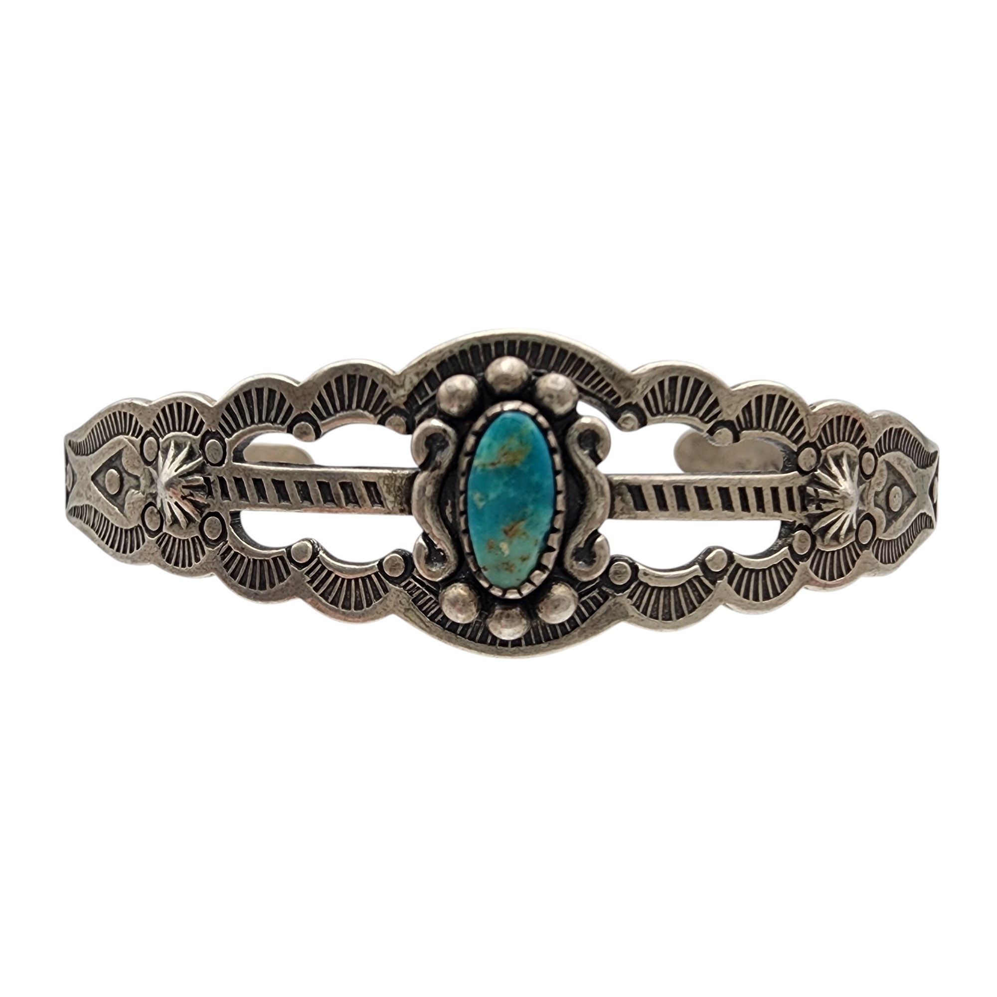 Pacific Jewelry Co. Sterling Turquoise Stamped Cuff Bracelet, 8.1g