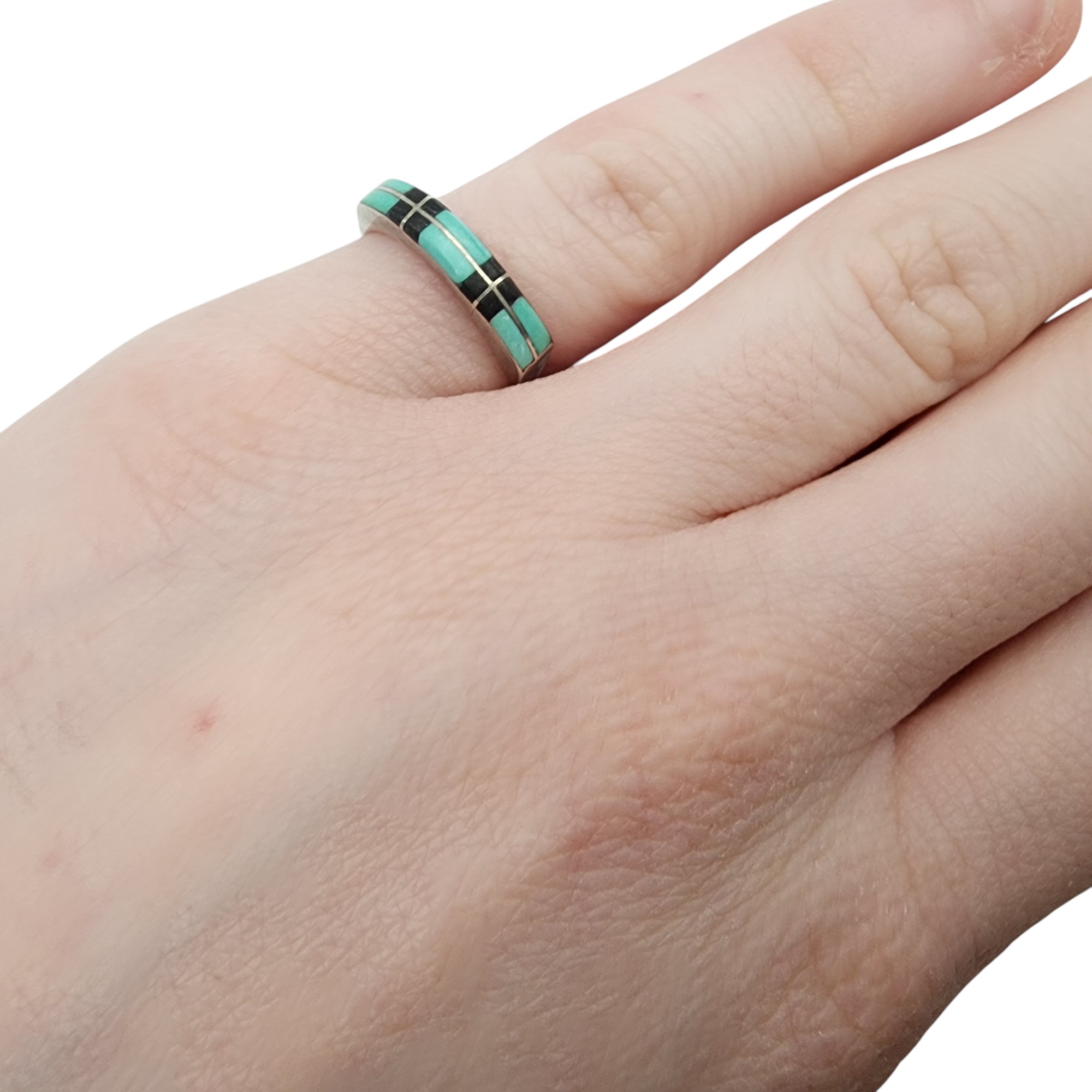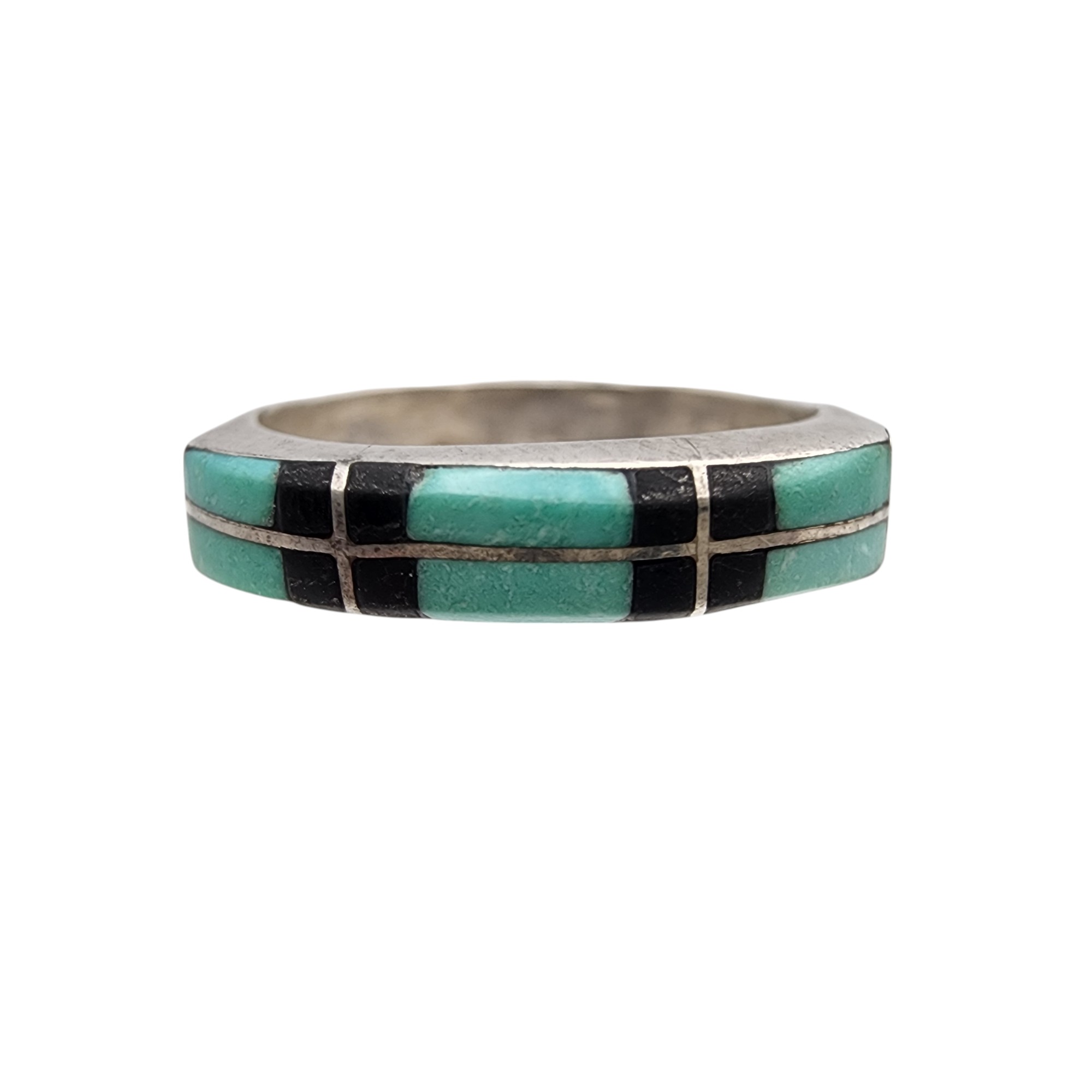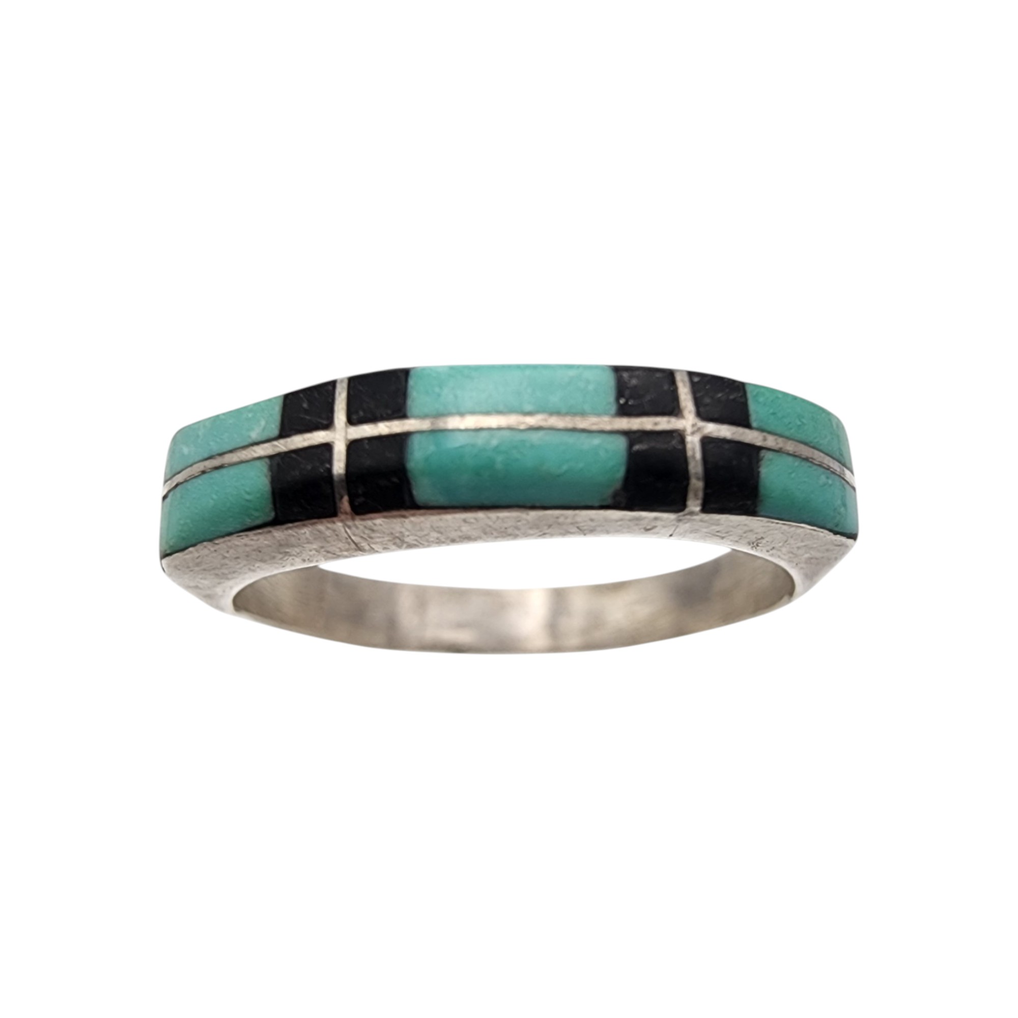 Southwestern Sterling Turquoise Onyx Inlay Ring Sz 5.25
