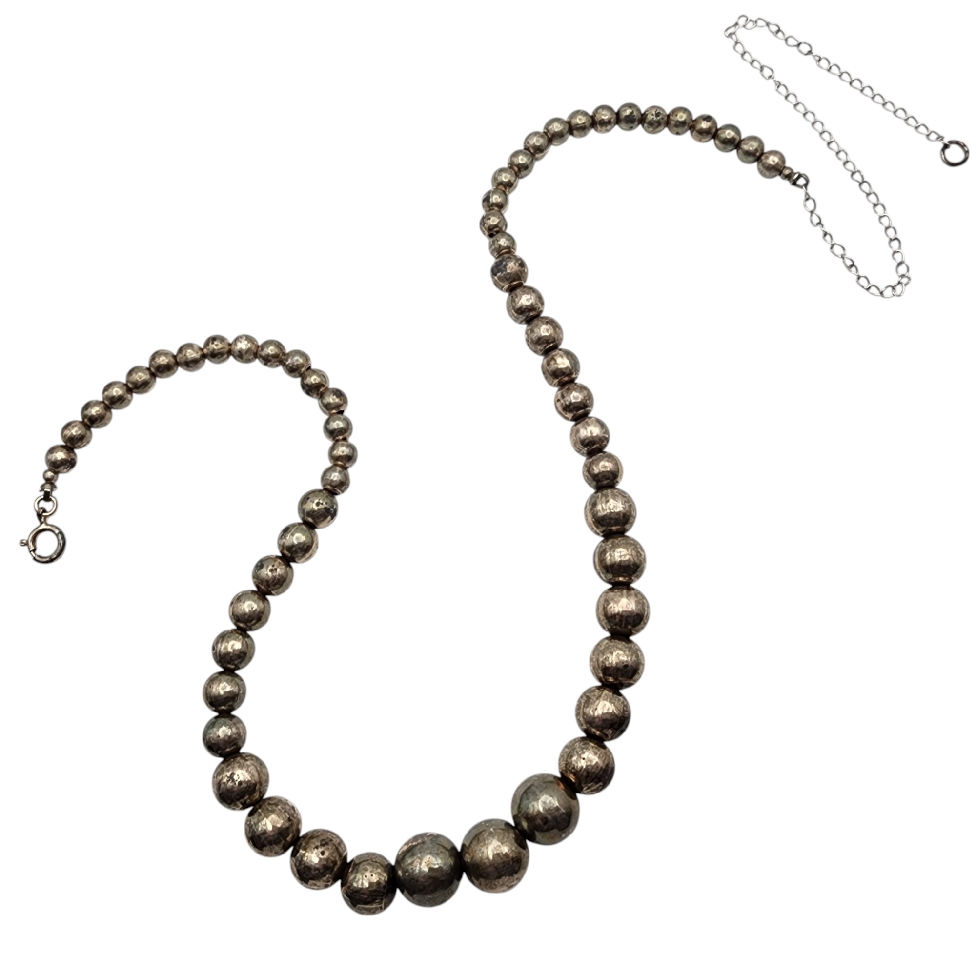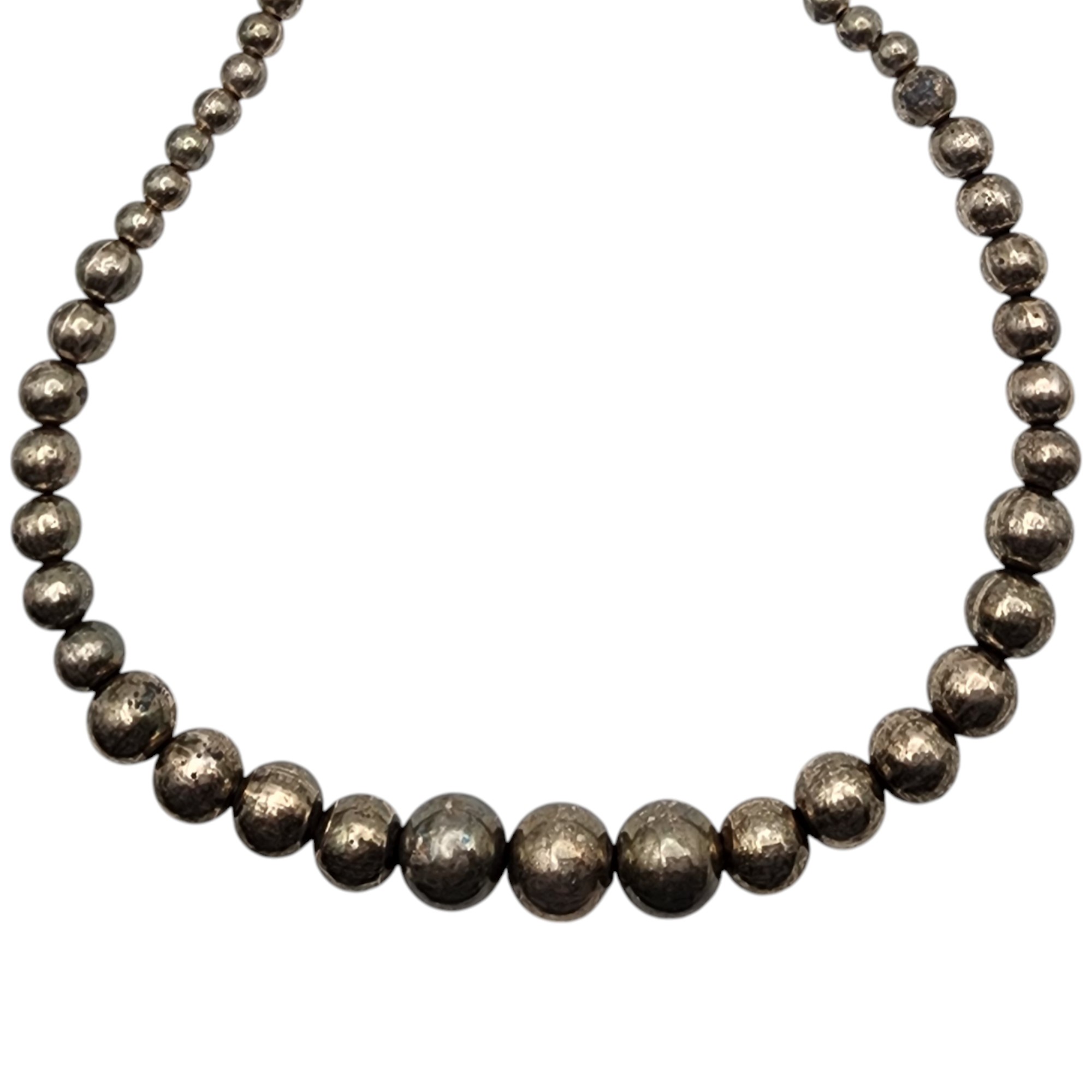 Southwestern Sterling Graduated Bead Necklace, 7.2g