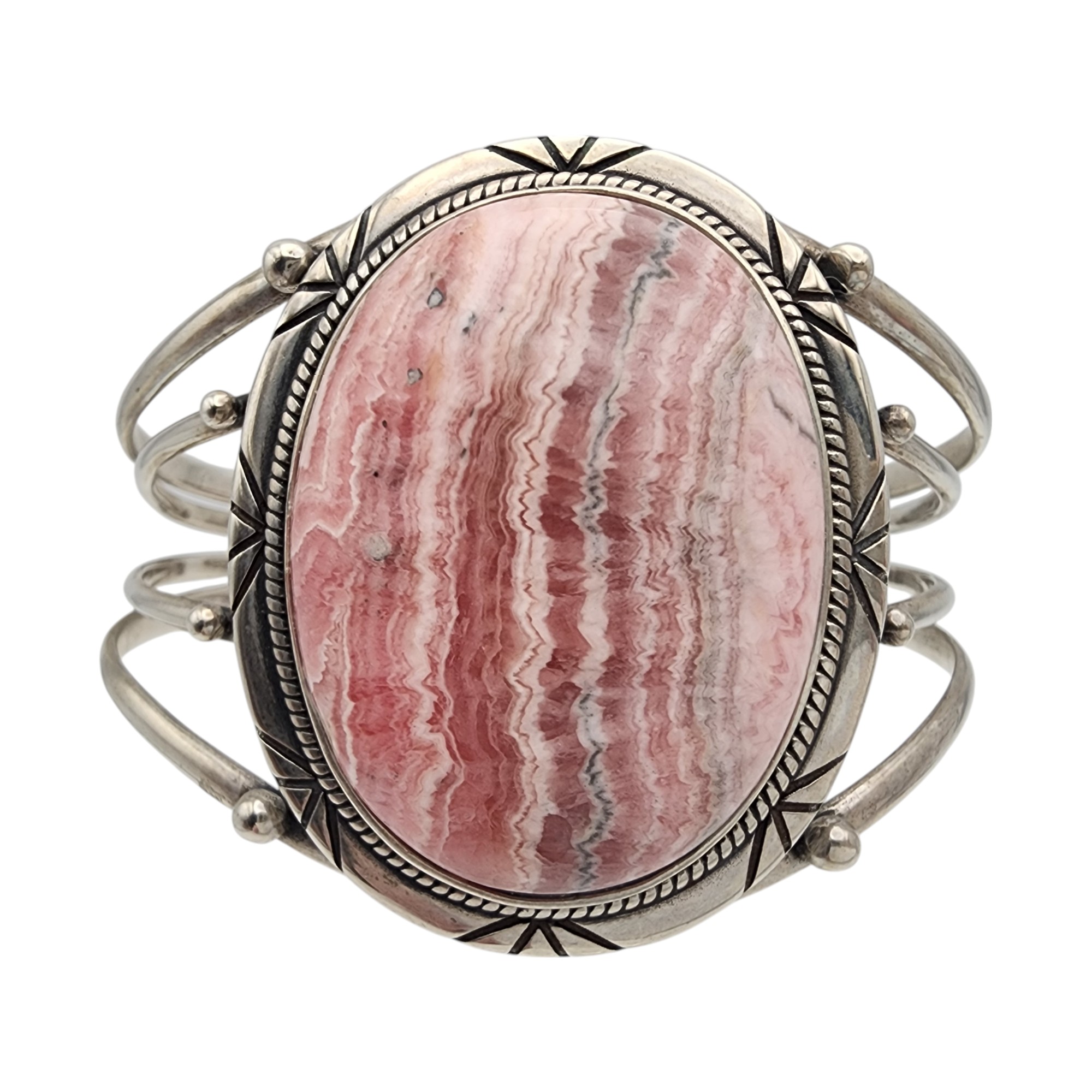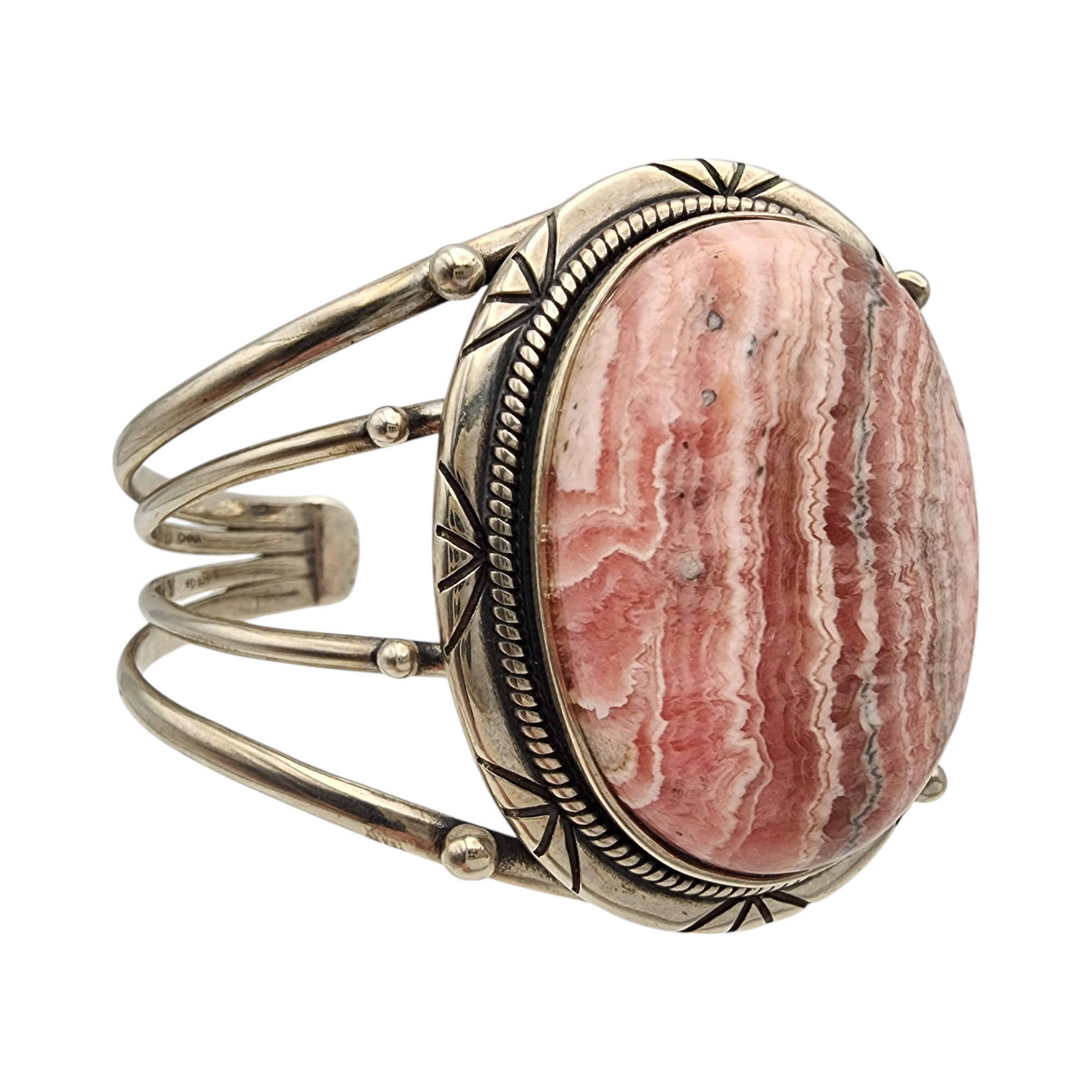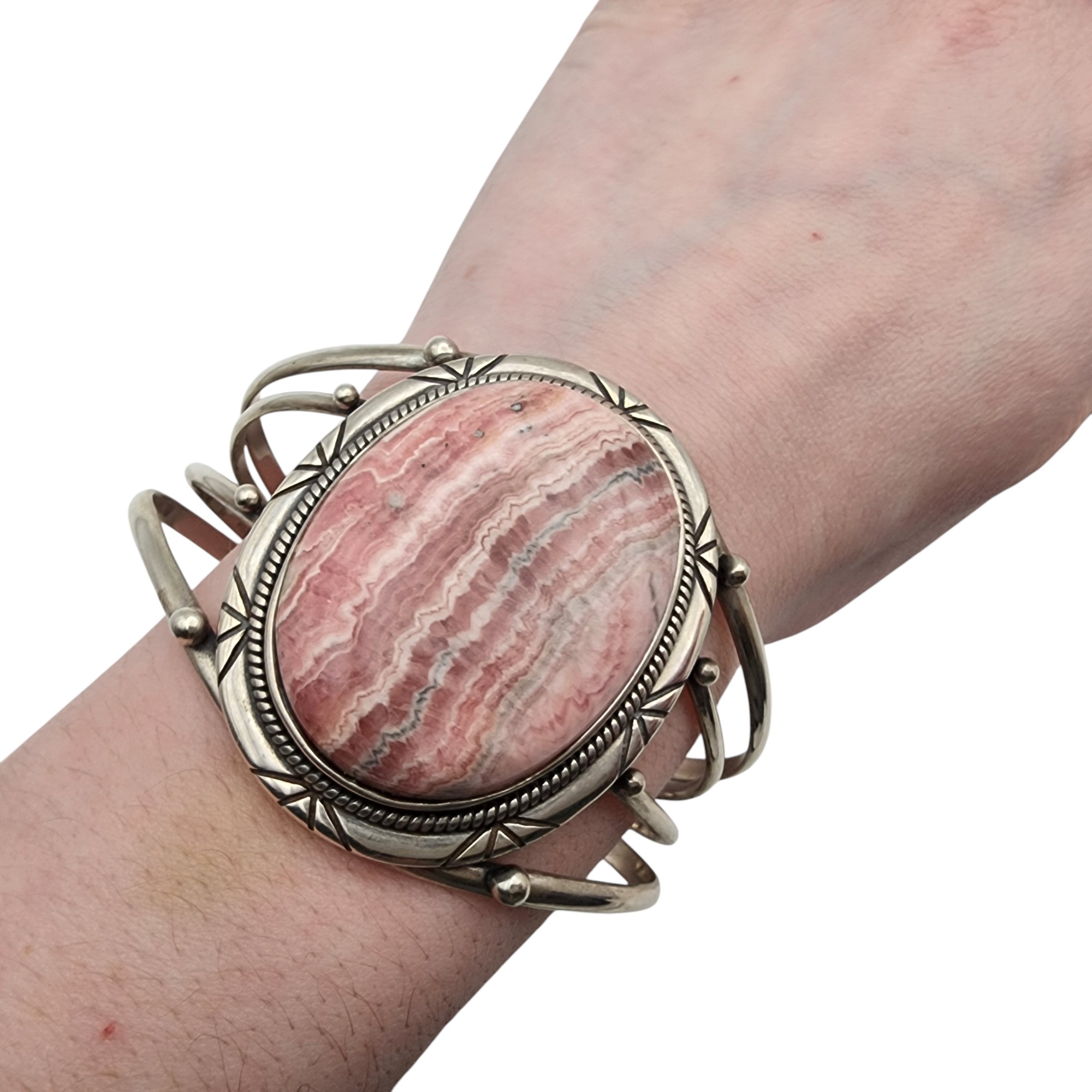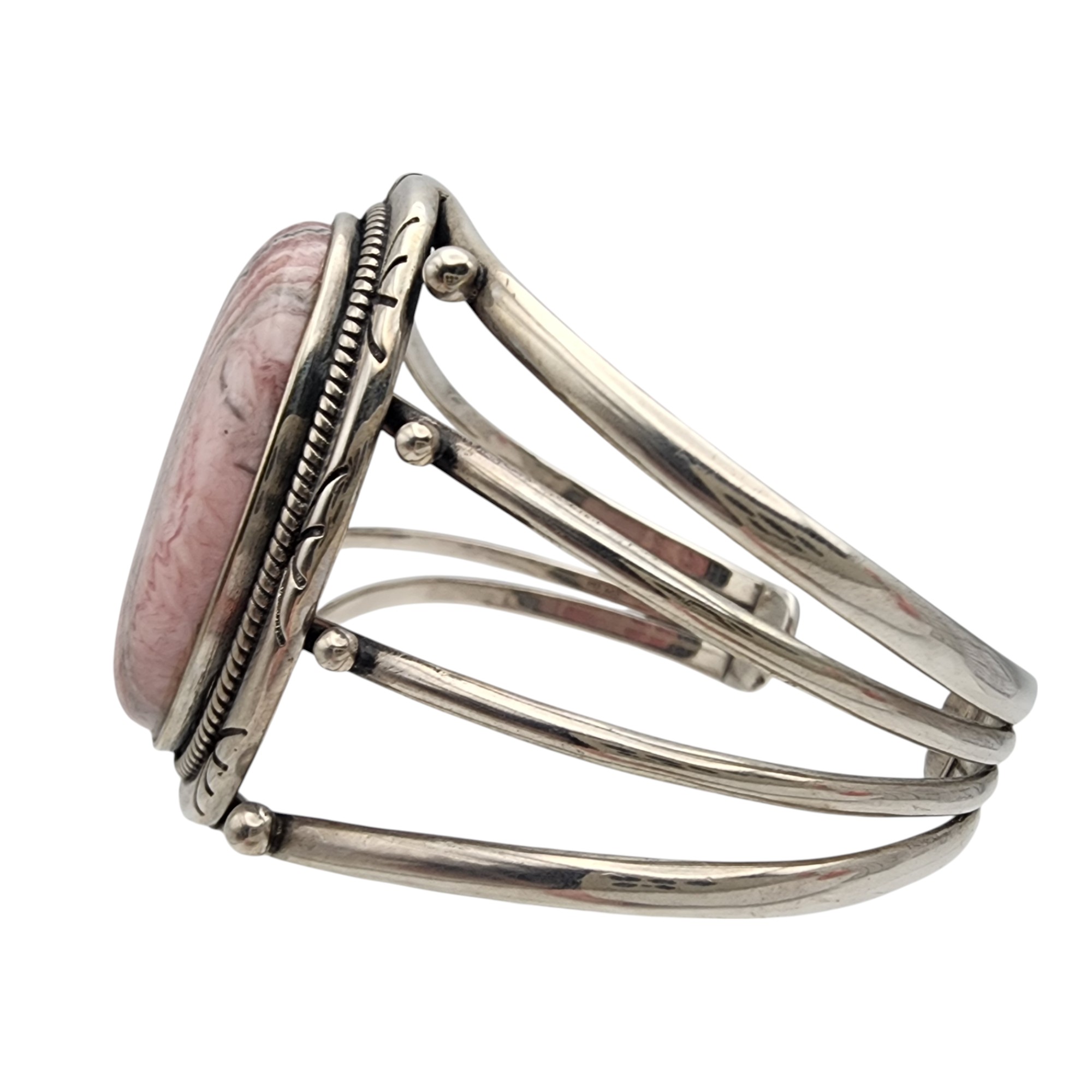 Southwest Style Sterling Rhodonite Cuff Bracelet, 55.2g