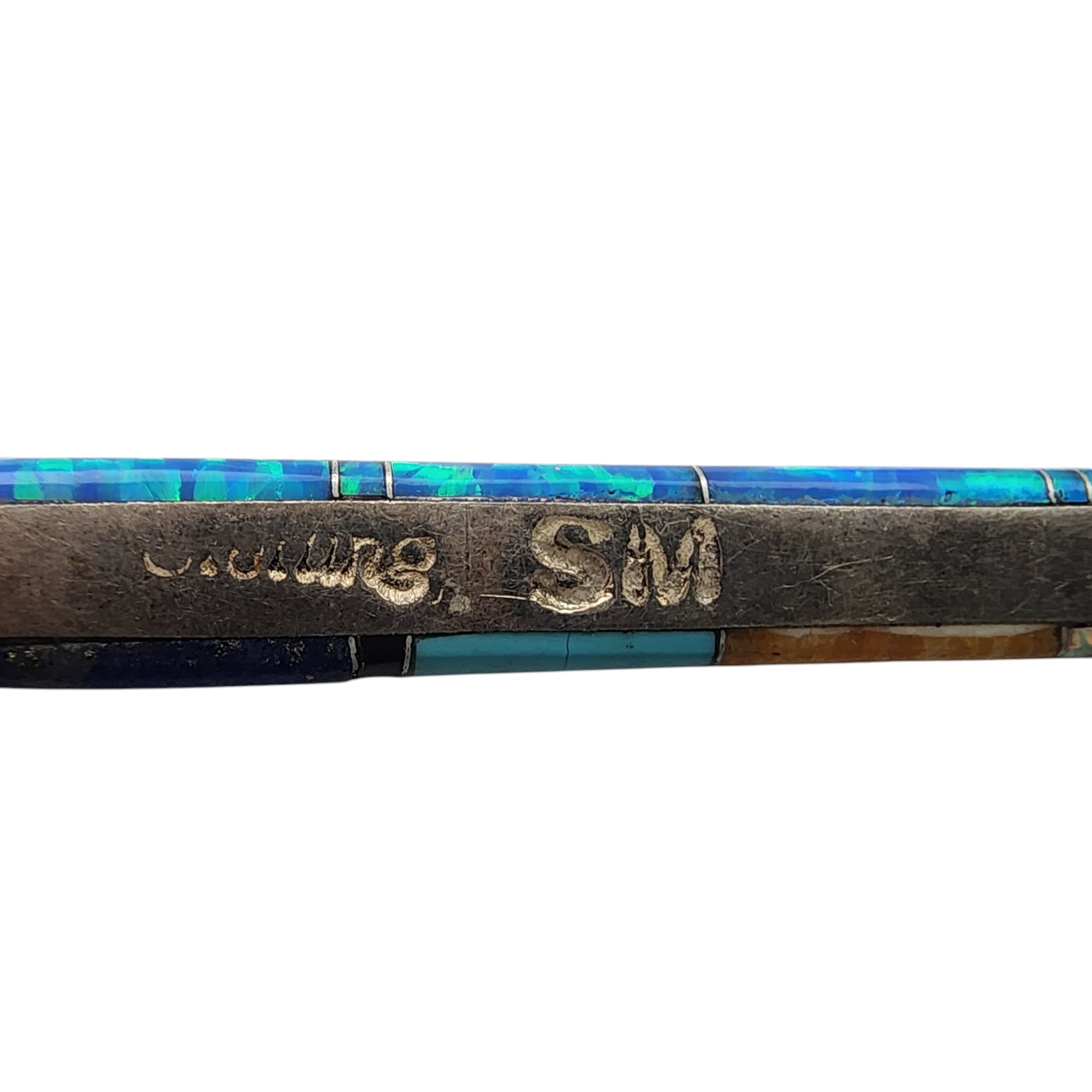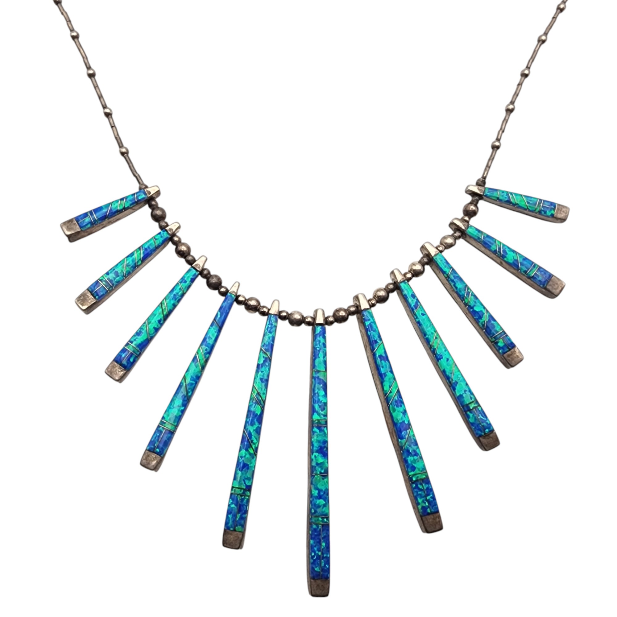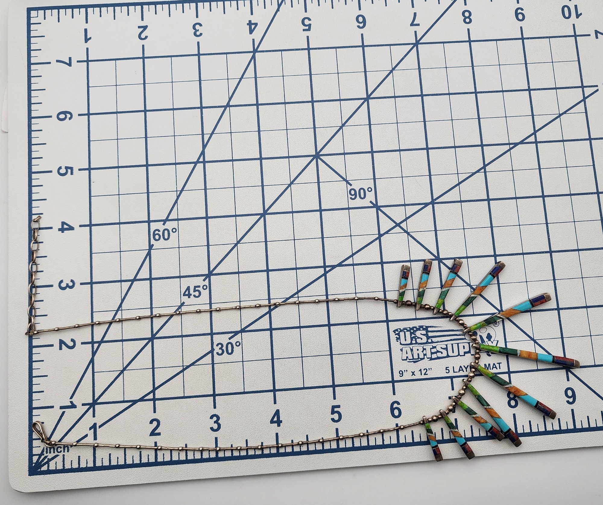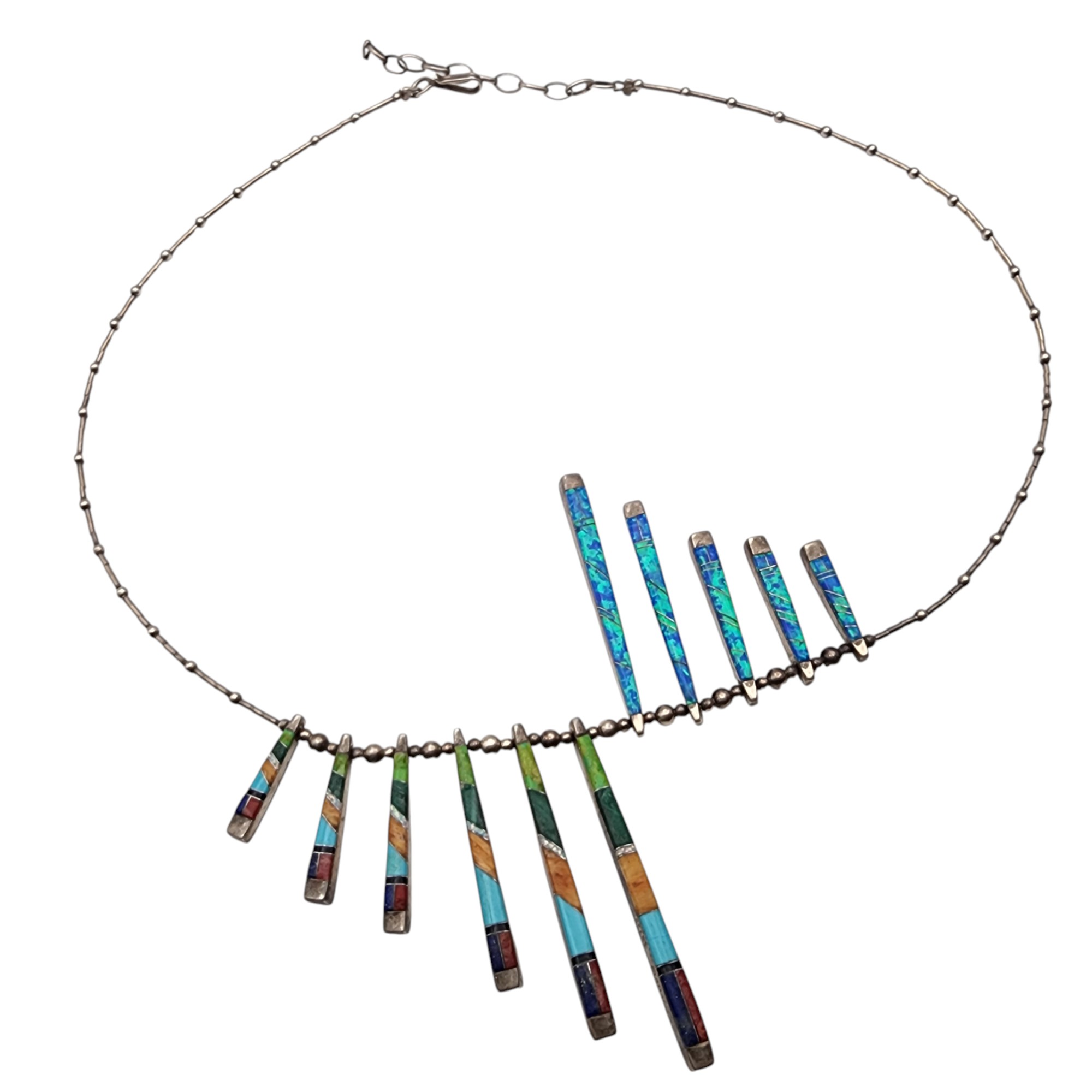 Sheryl Martinez Navajo Sterling Reversible Multistone Inlay Fringe Necklace, 18g, one partial piece of inlay missing, see photos