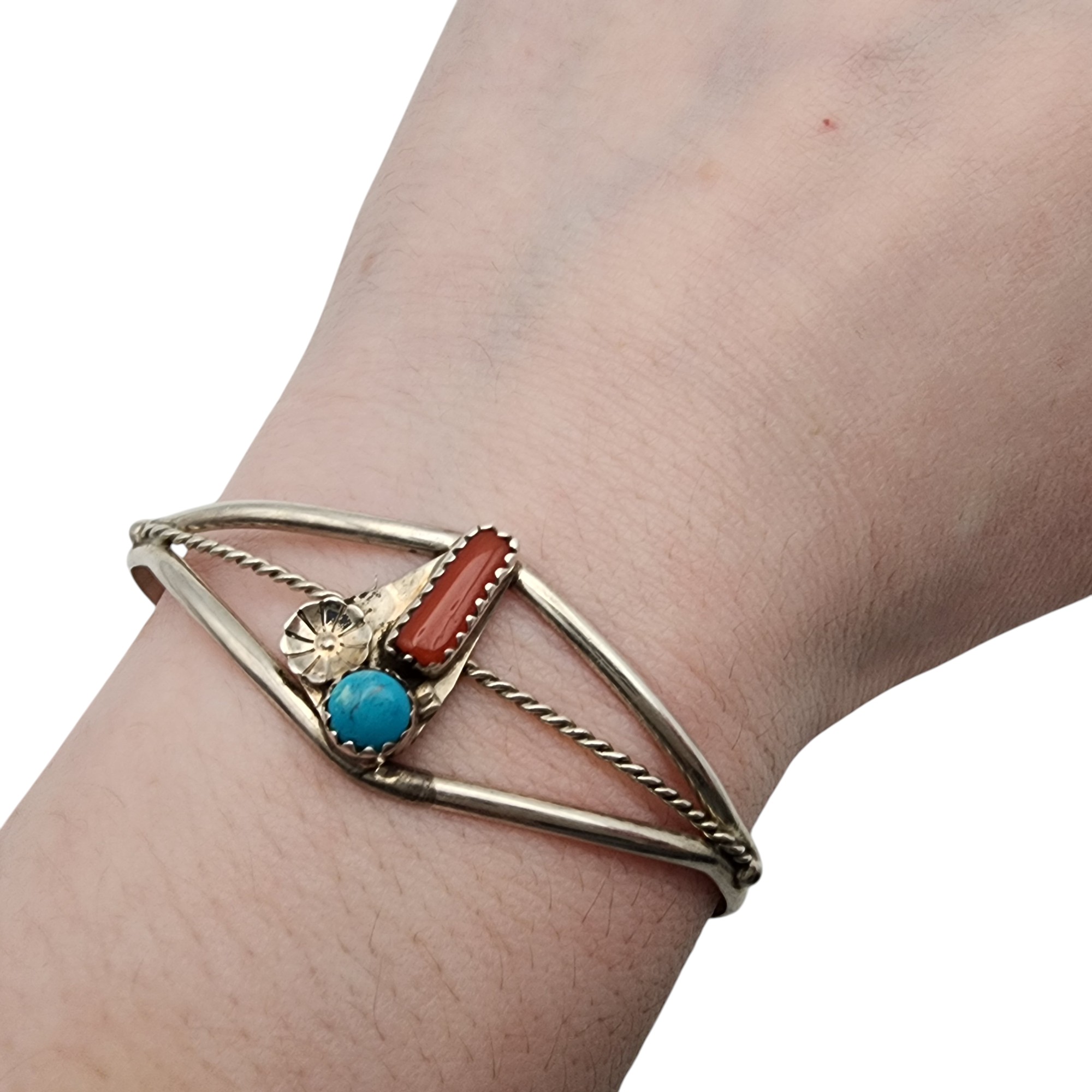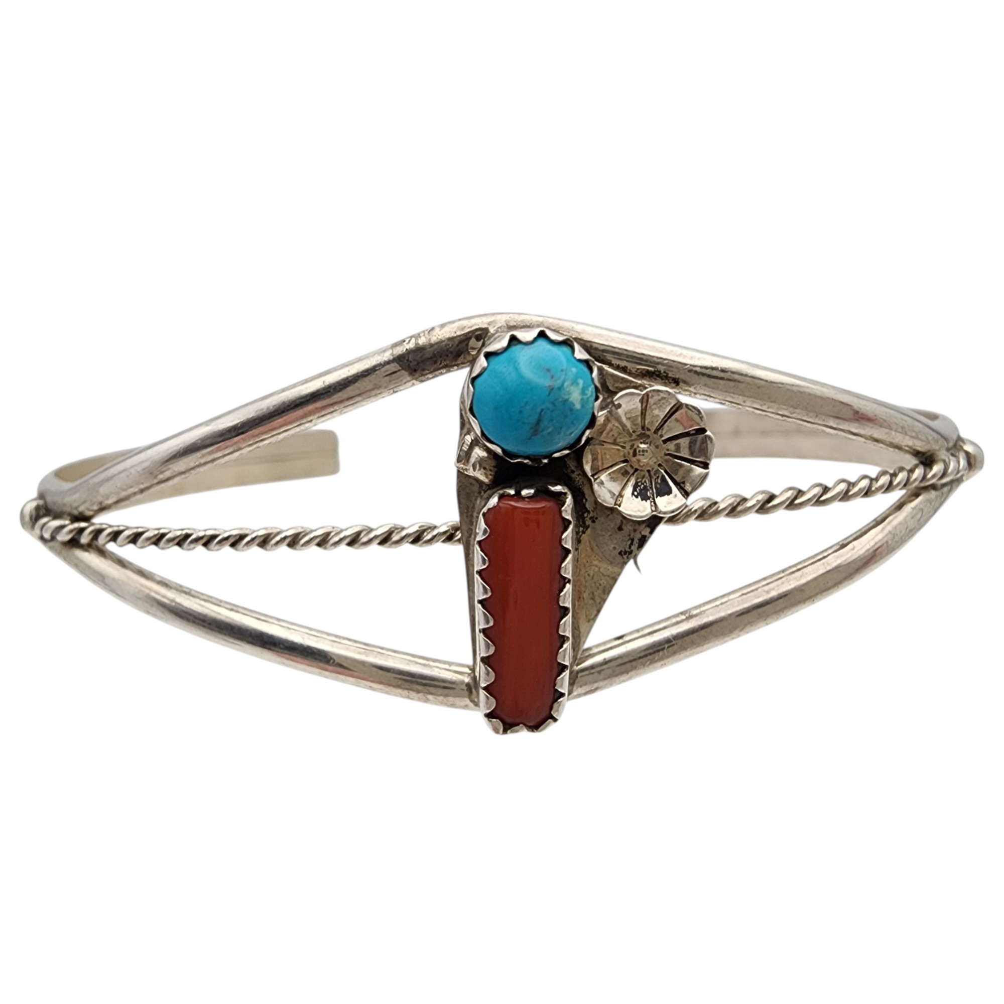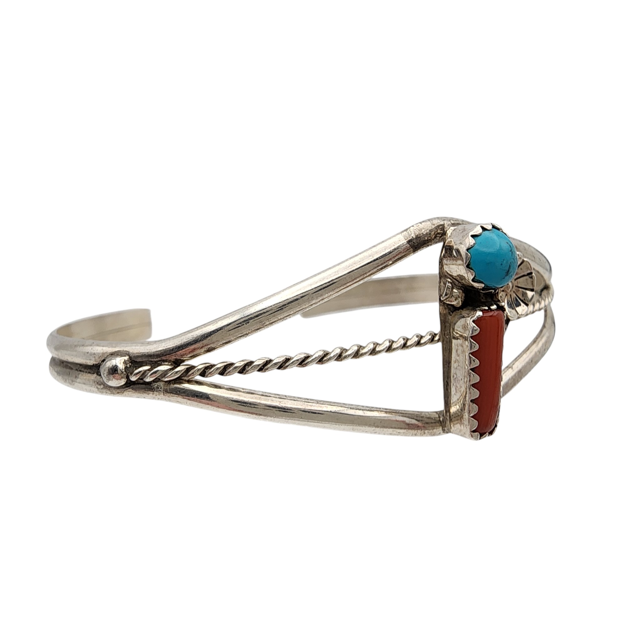 Navajo Sterling Turquoise Coral Cuff Bracelet, 7g