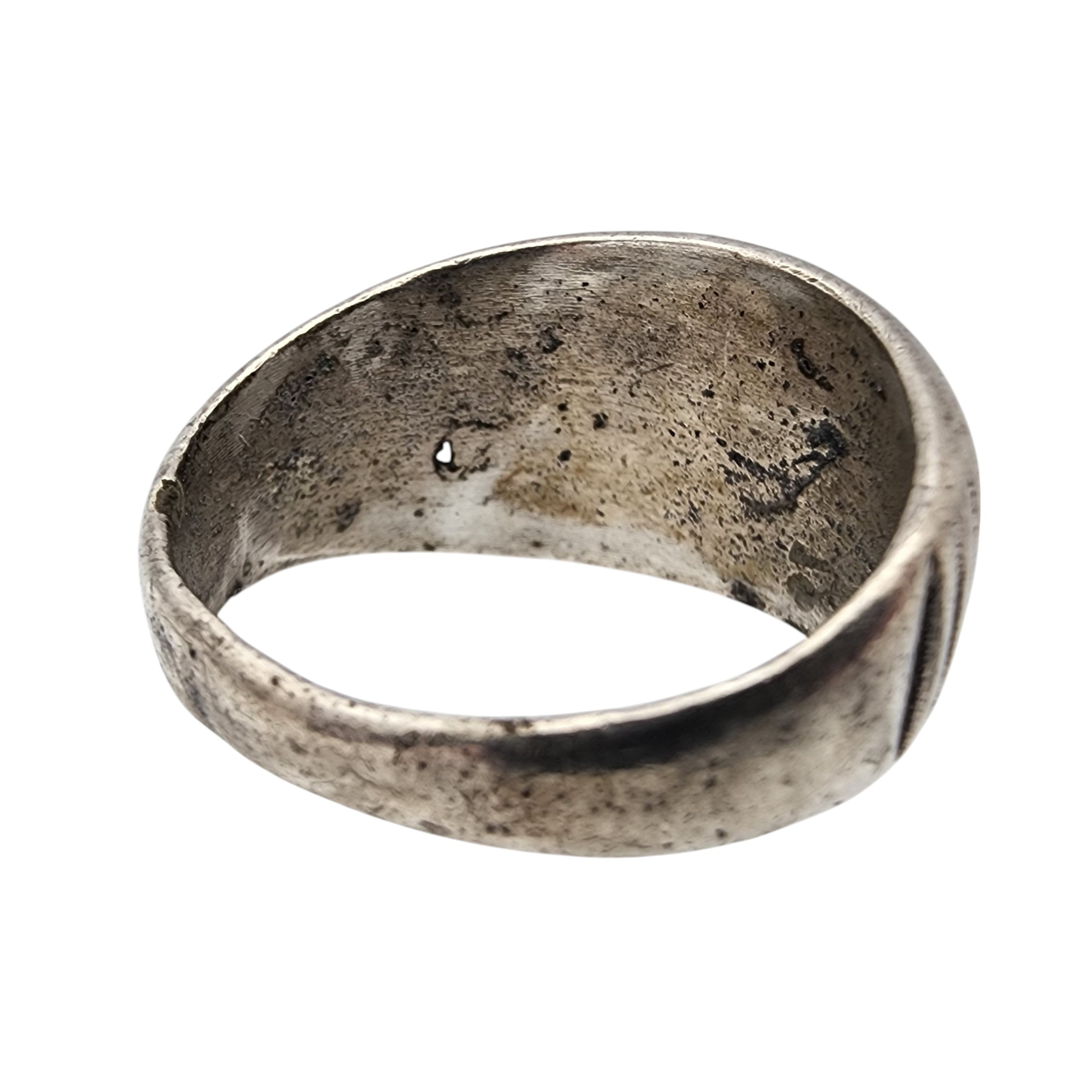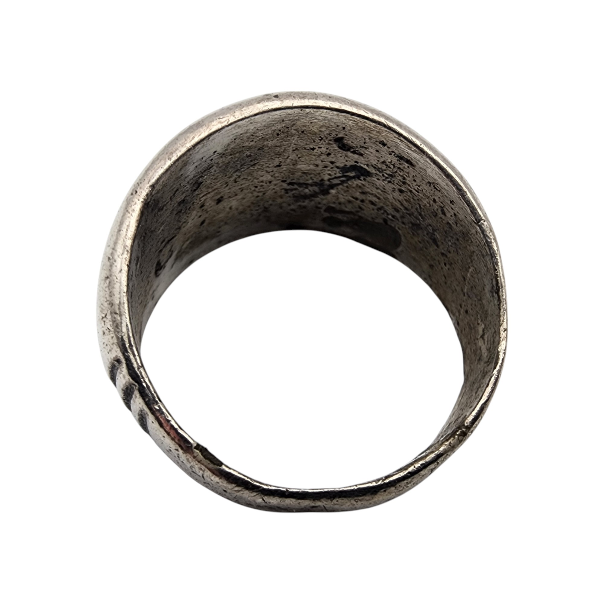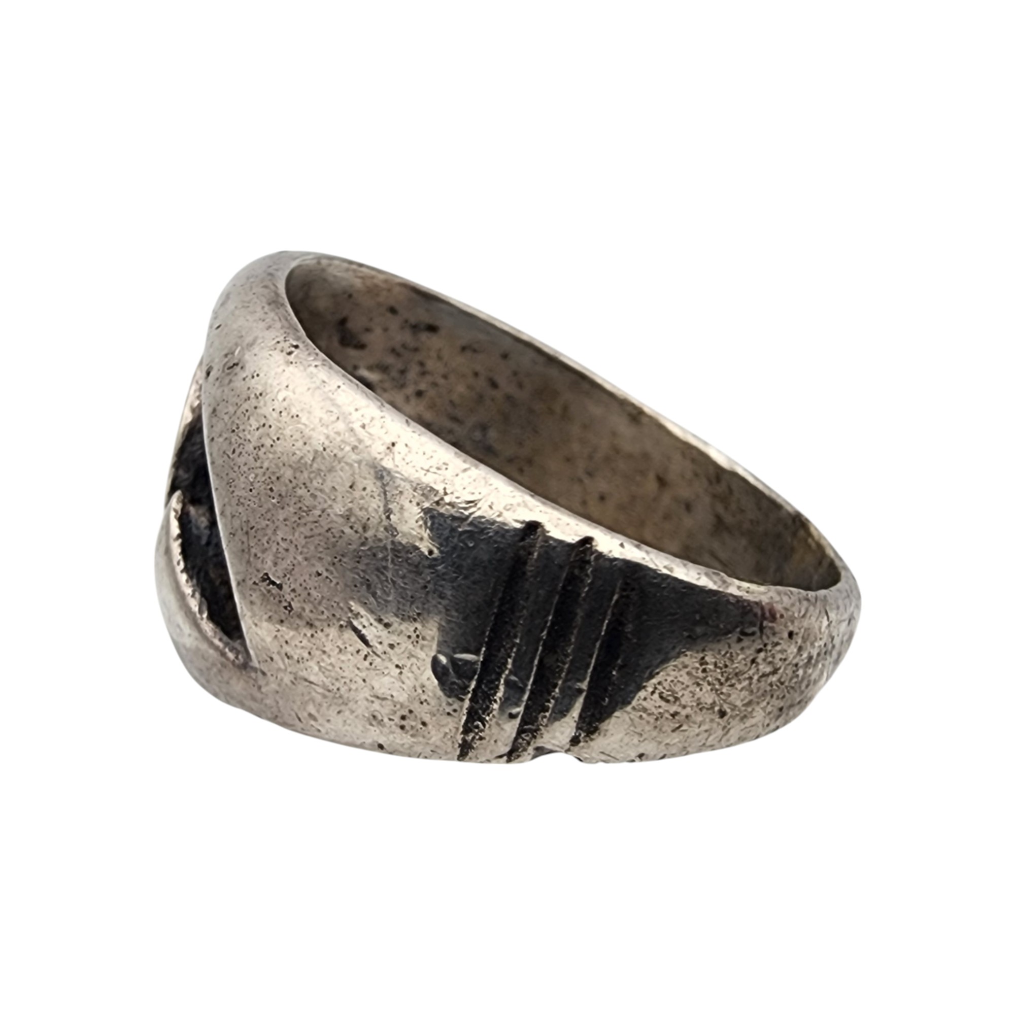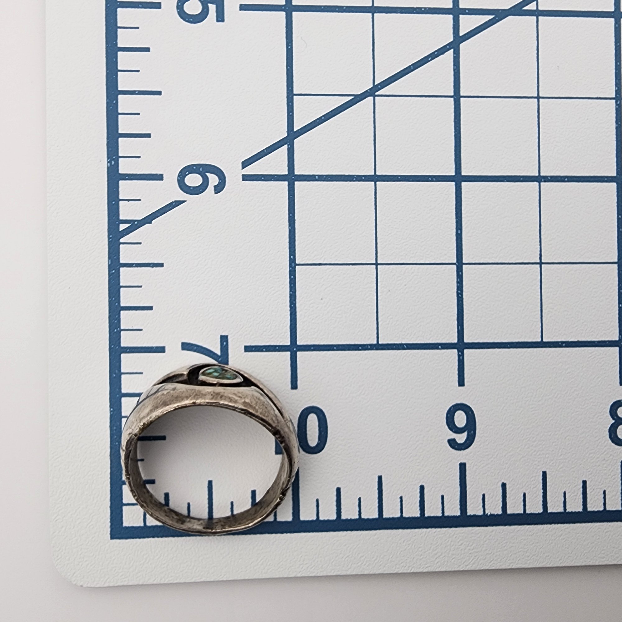 Vintage Navajo Sterling Turquoise Chip Inlay Ring Sz 10.5, 8.4g. ring band with slight warping, piece of bezel missing