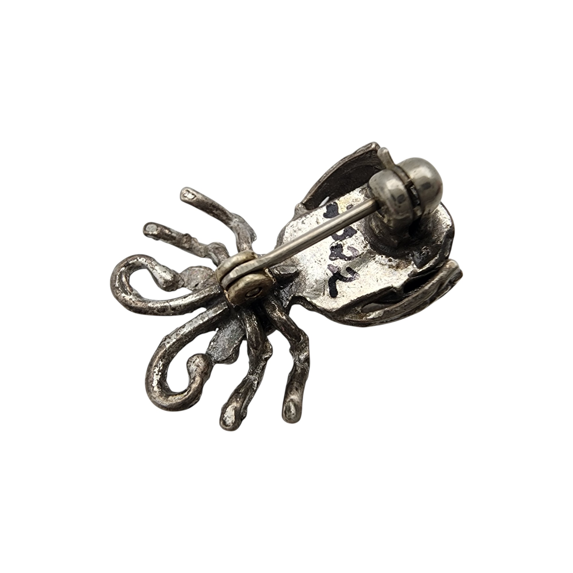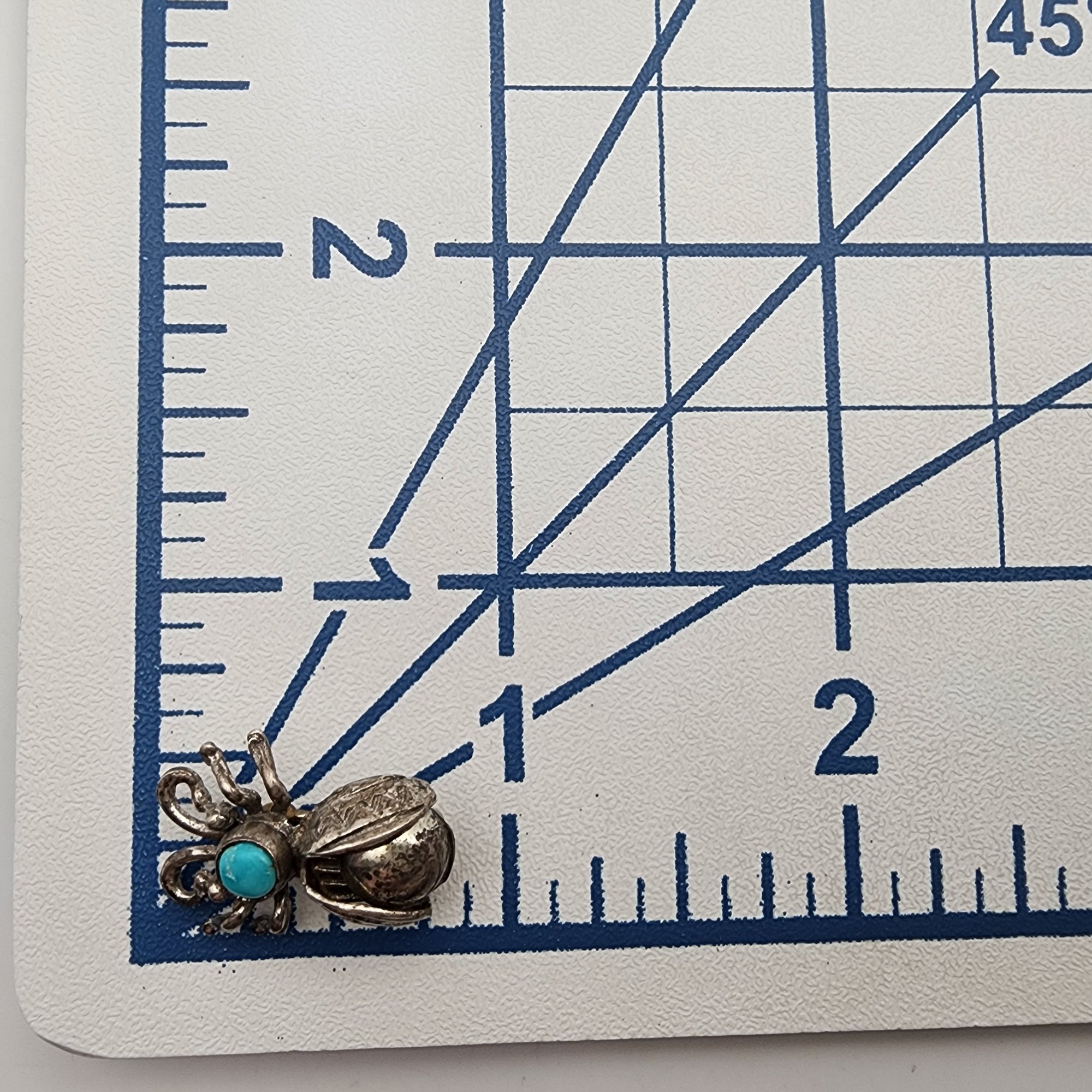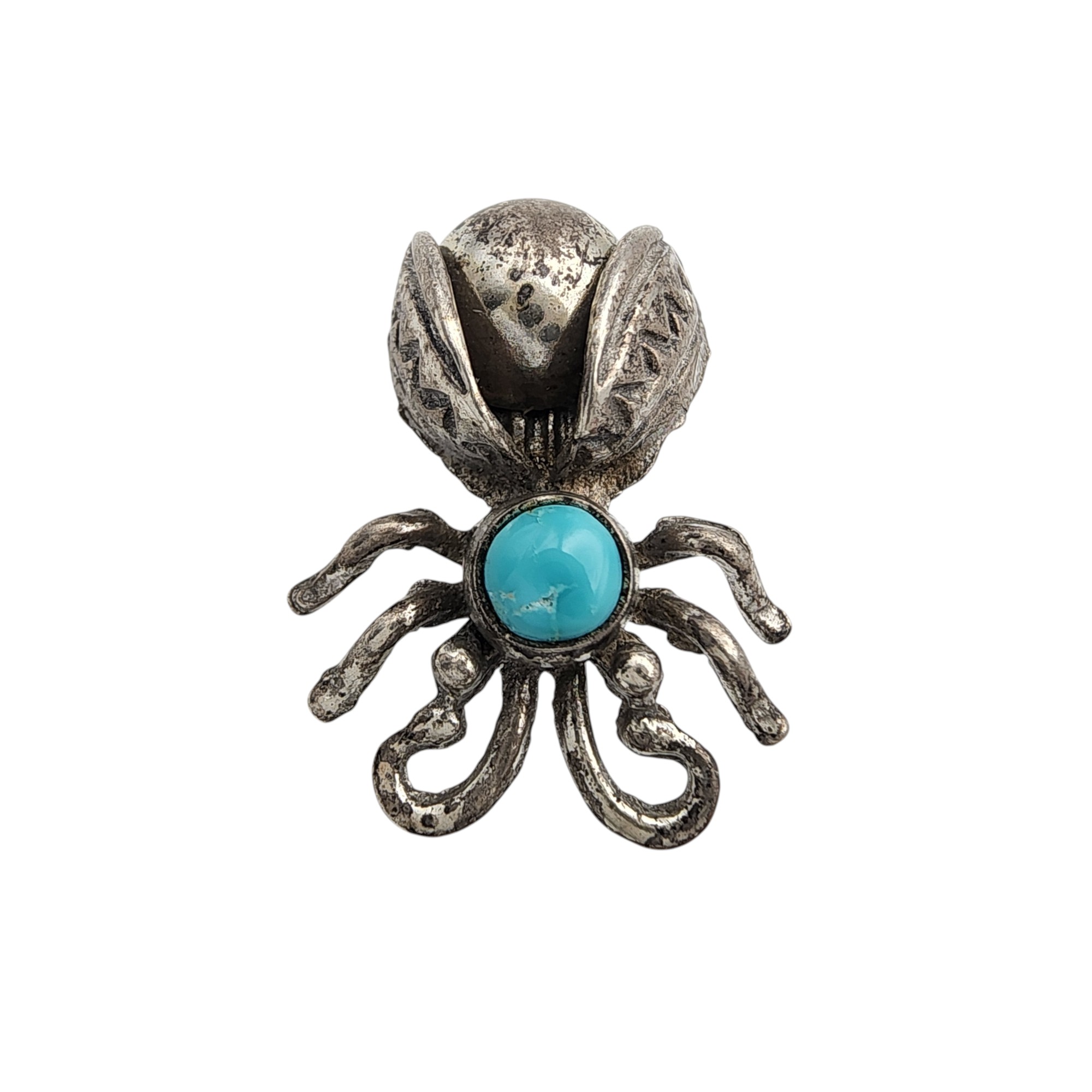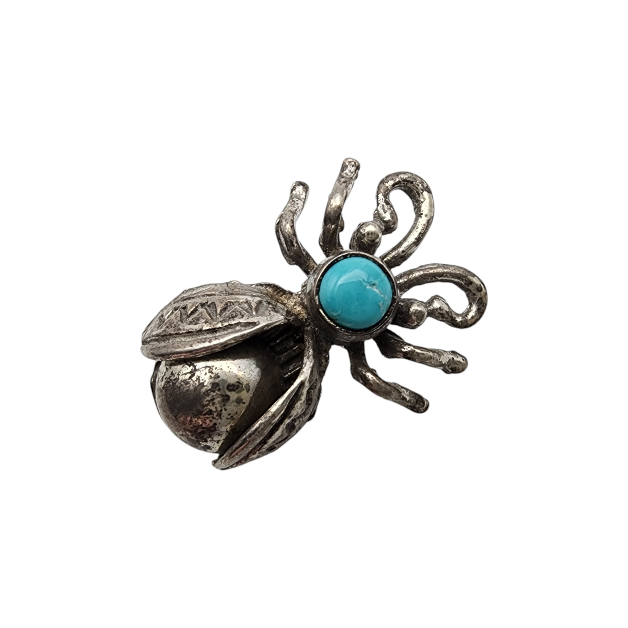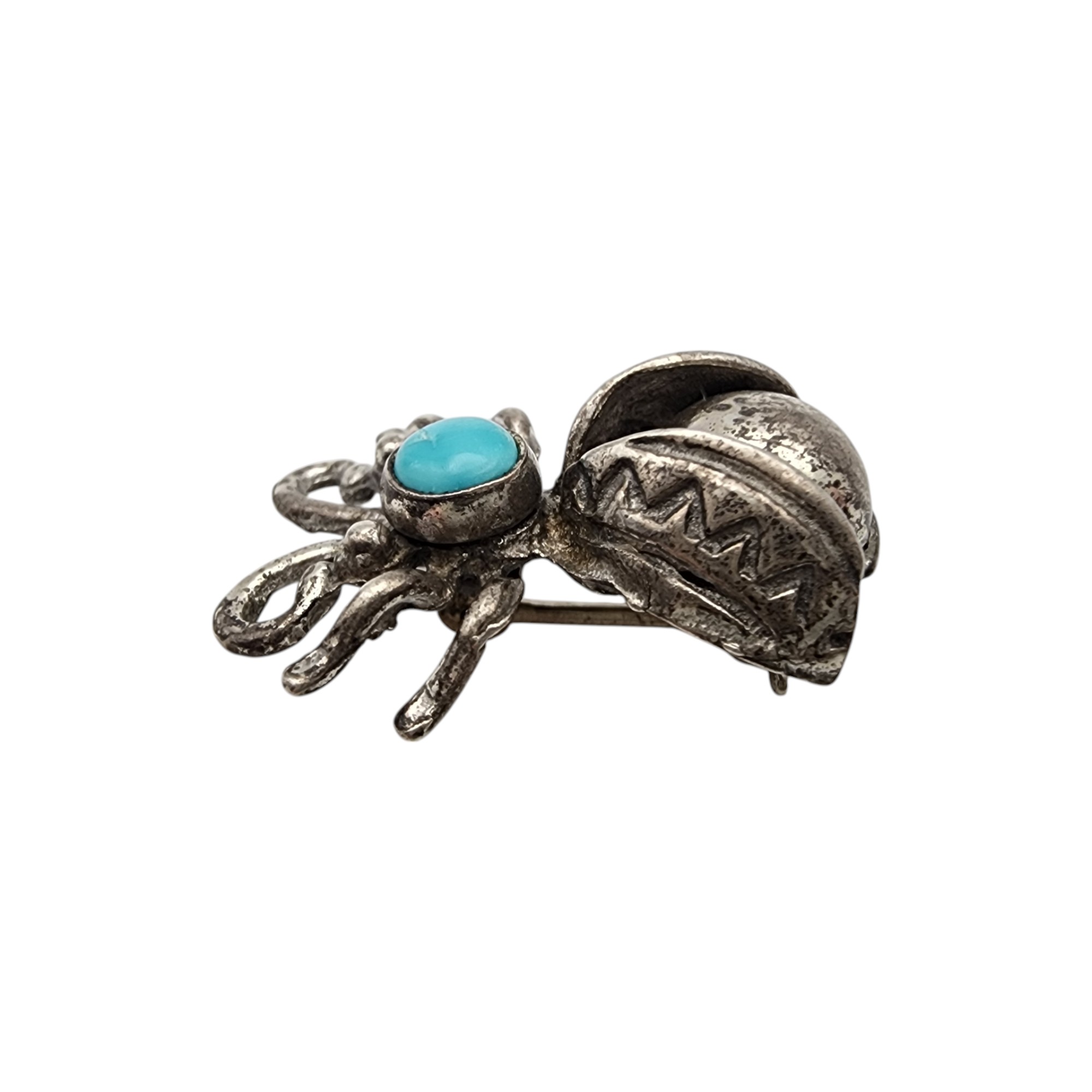 Vintage Navajo Sterling Turquoise Stamped Bug Brooch, 2.9g