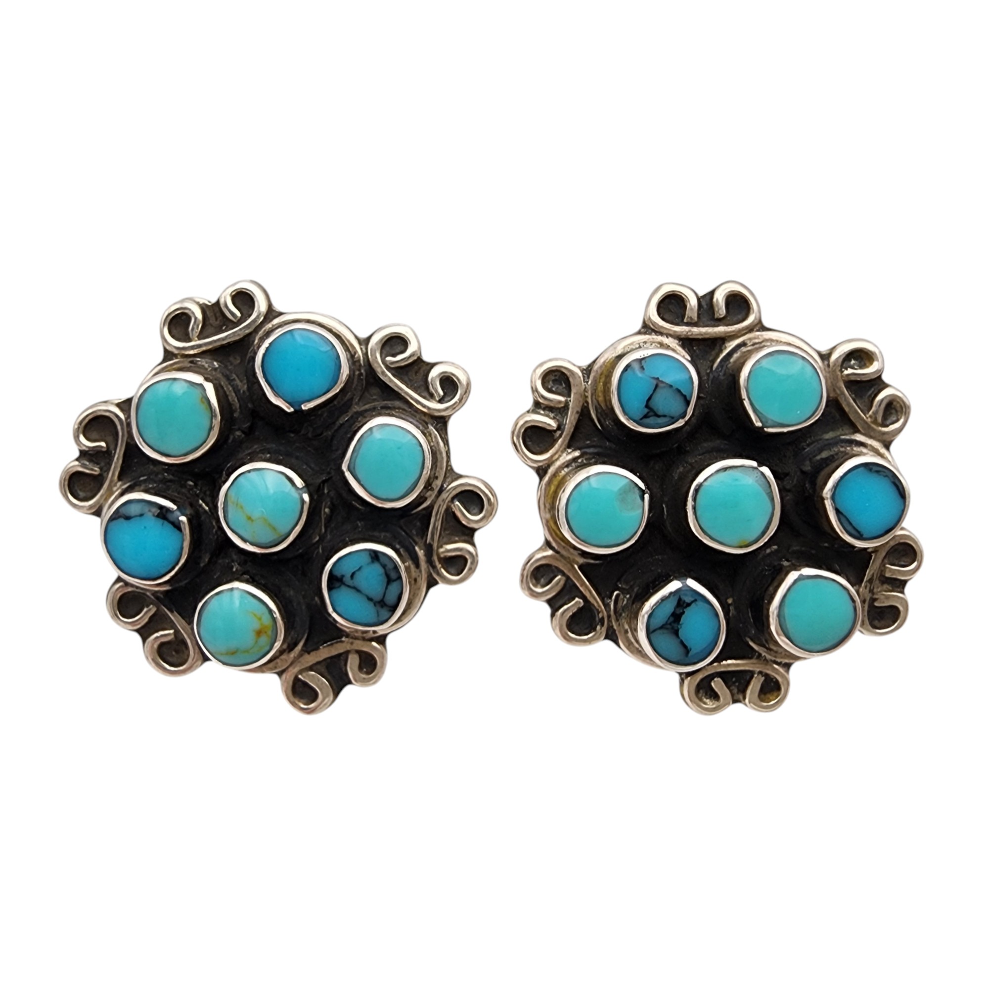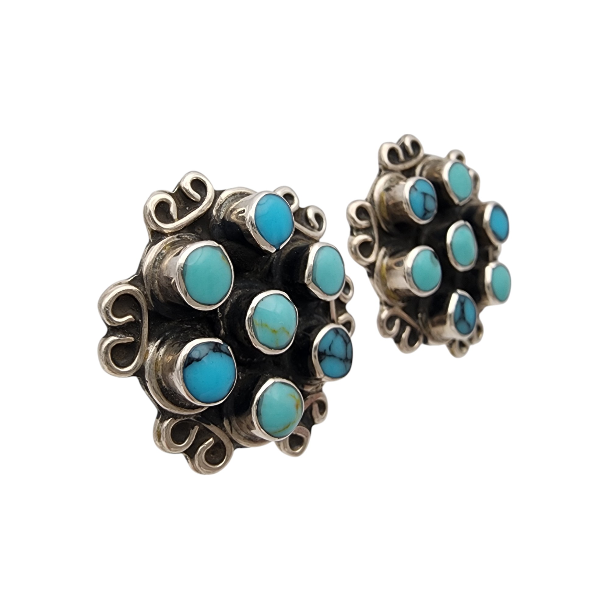 Southwestern Sterling Turquoise Cluster Earrings, 10g