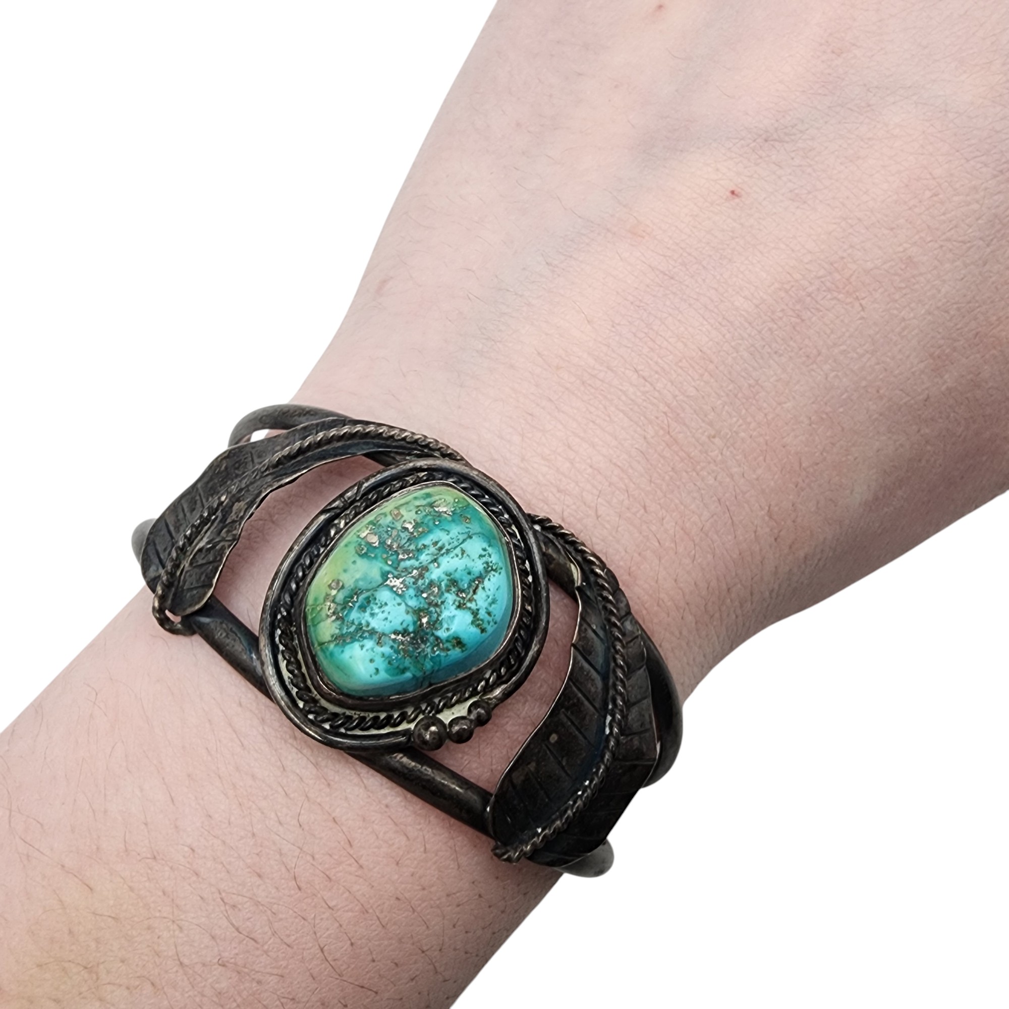 Vintage Navajo Sterling Turquoise Chunk Cuff Bracelet, 21.4g