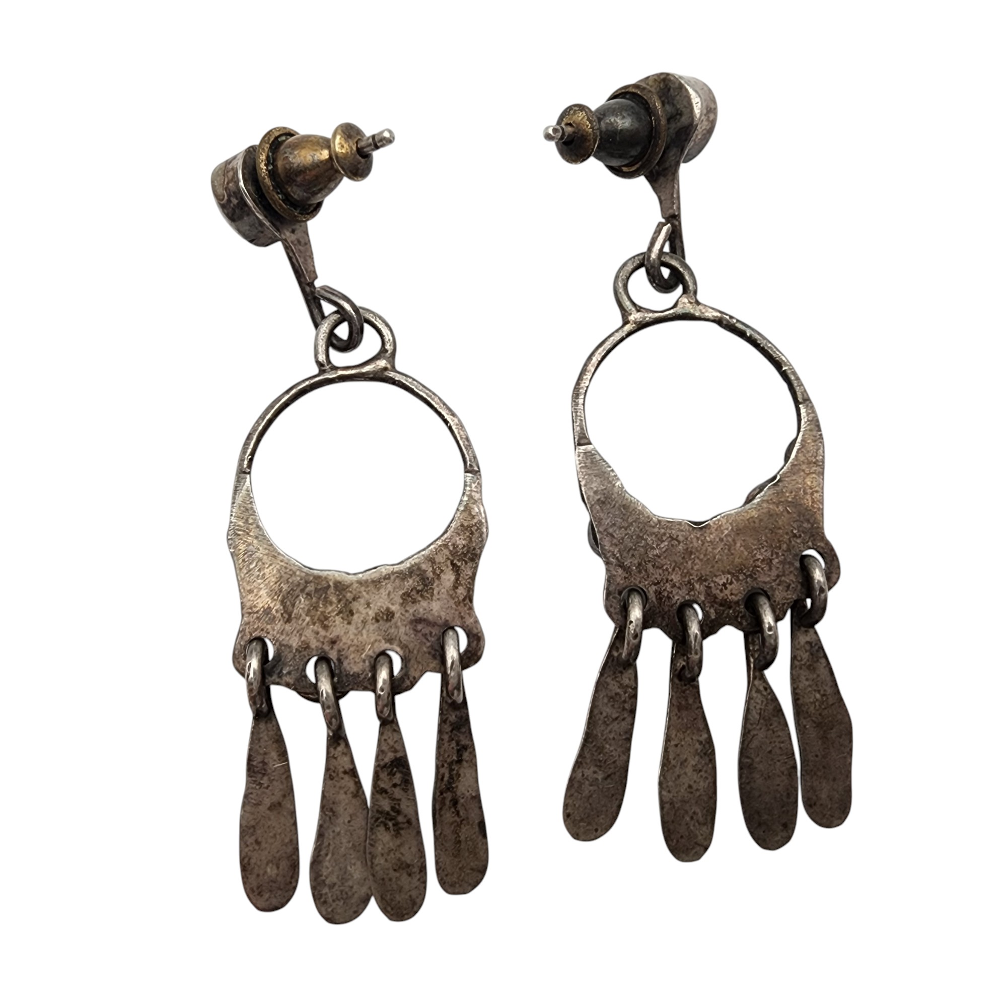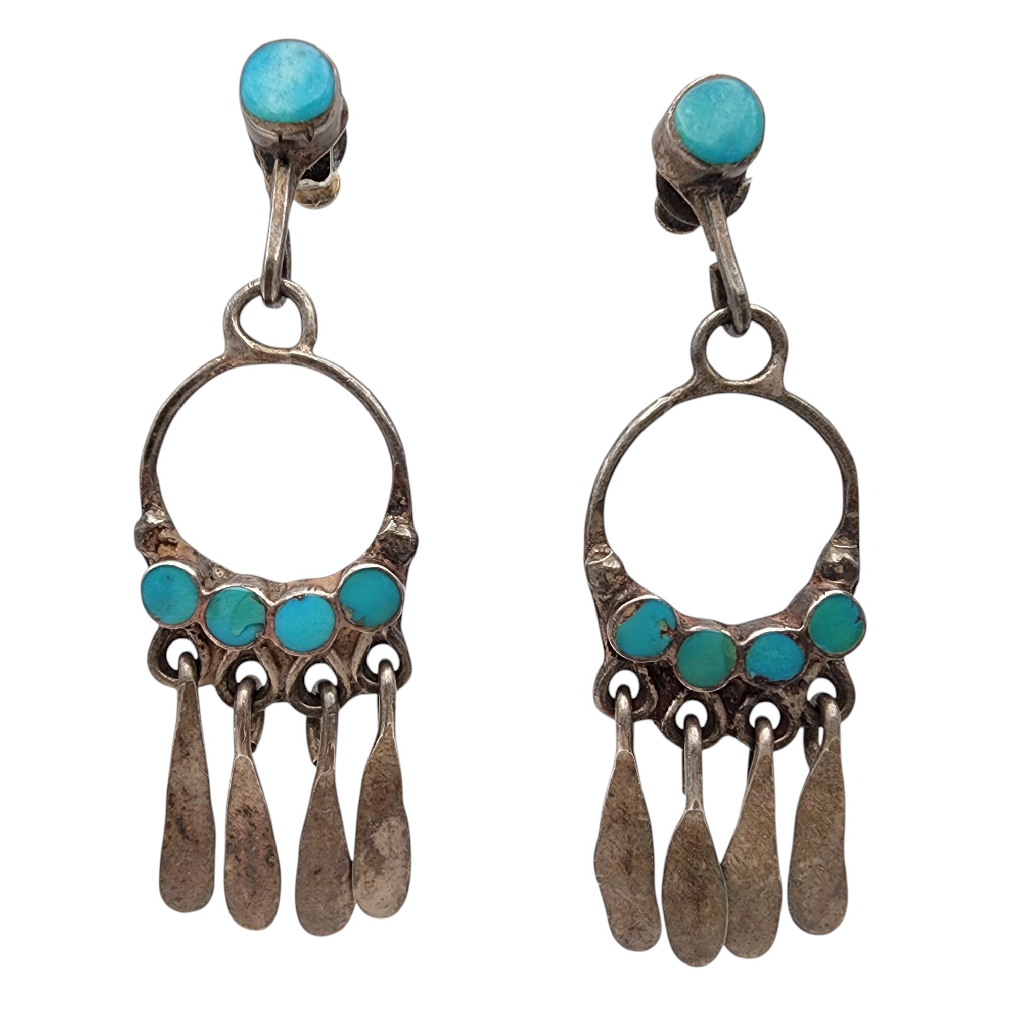 Dishta Style Sterling Turquoise Inlay Earrings, 6.1g