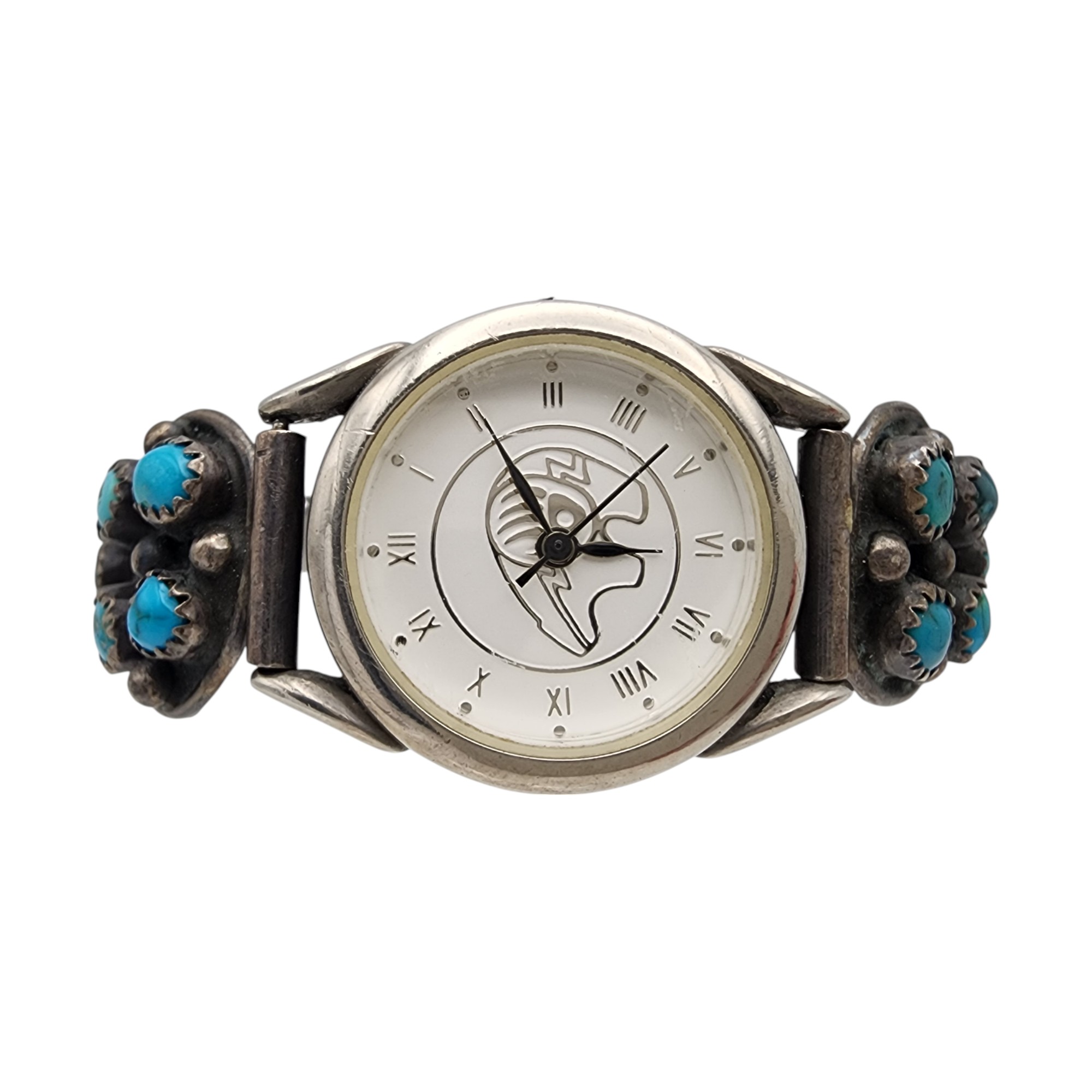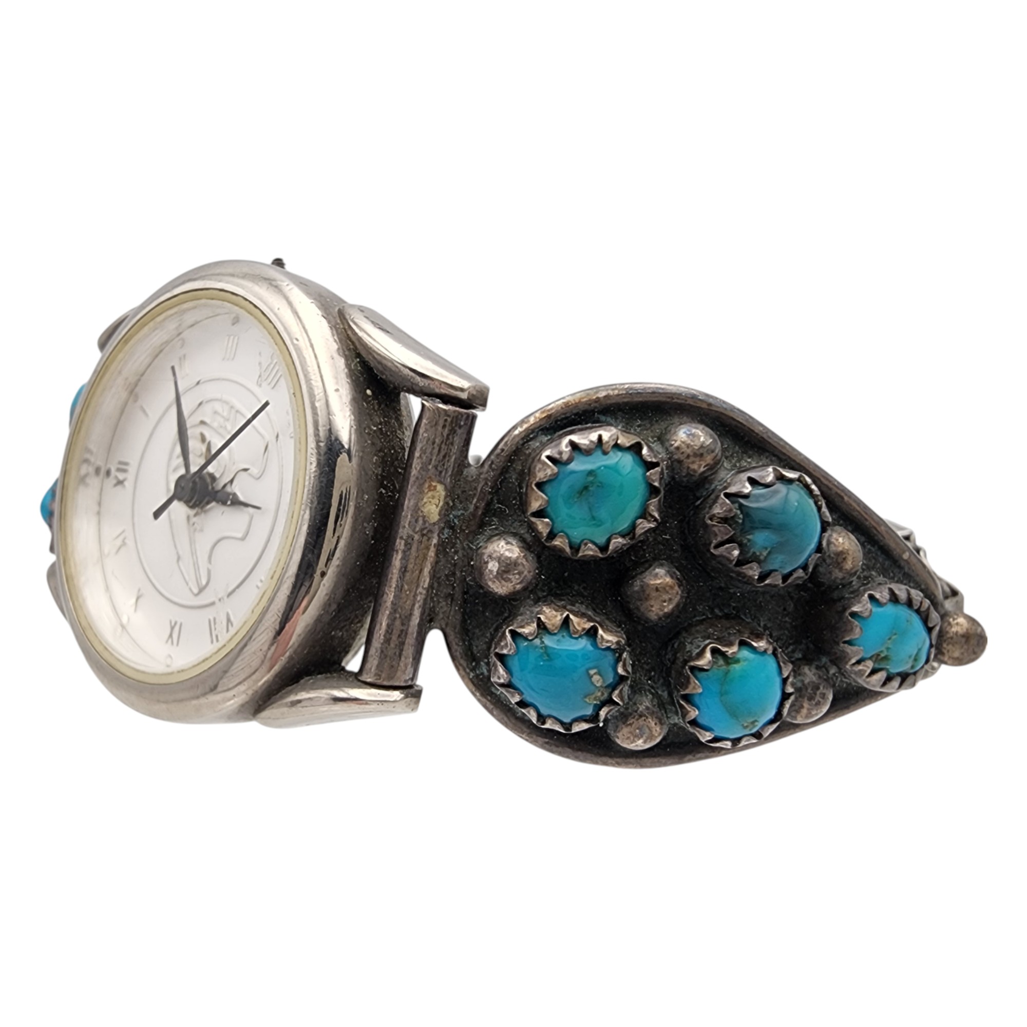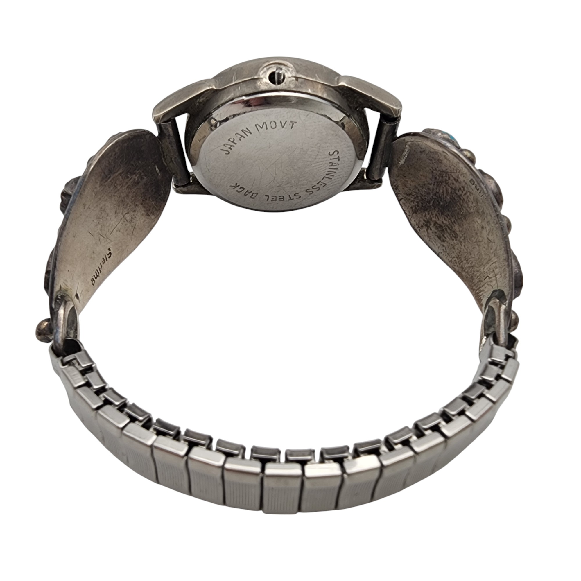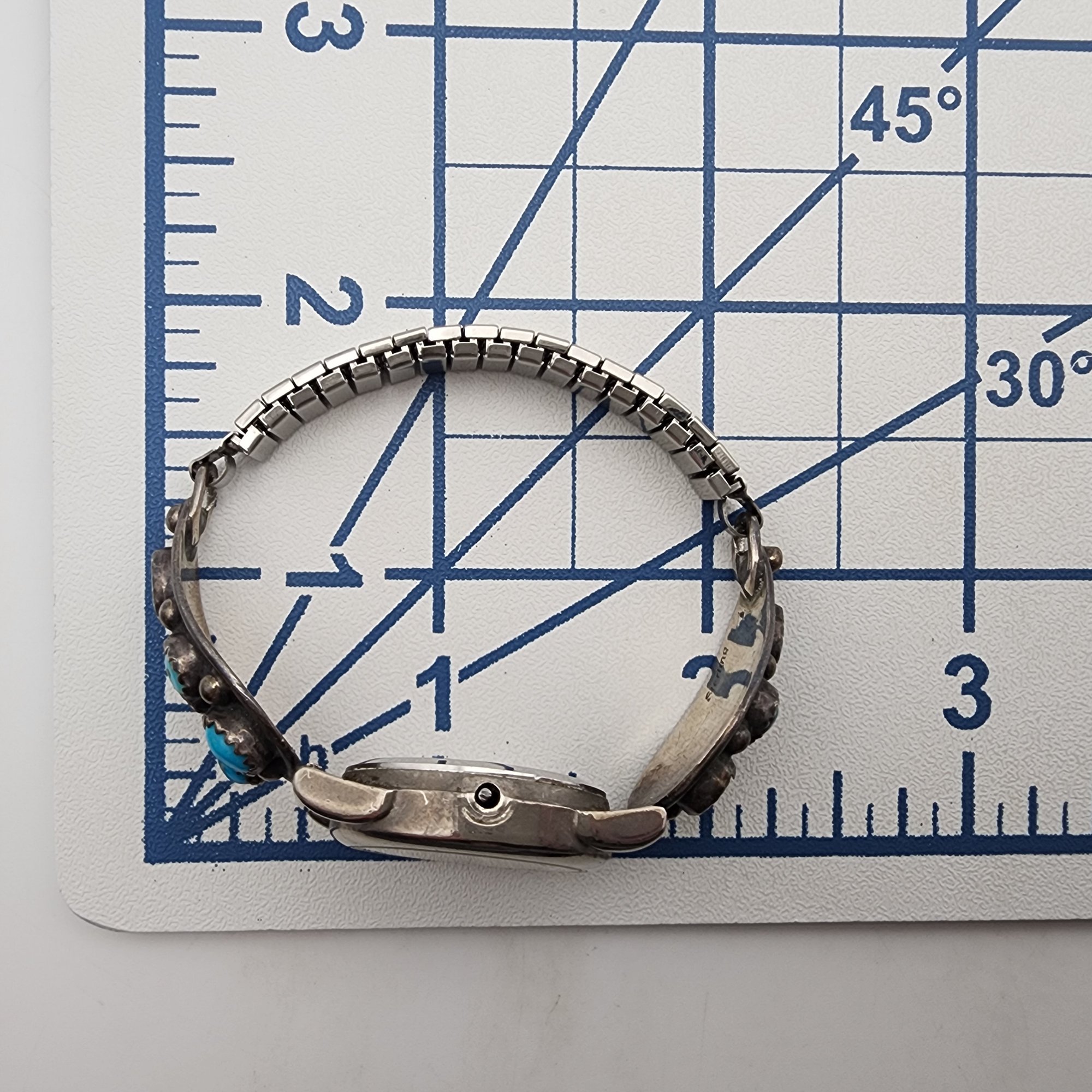 Vintage Navajo Sterling Turquoise Cluster Watch Tips, stainless steel band, watch needs battery 21.6g