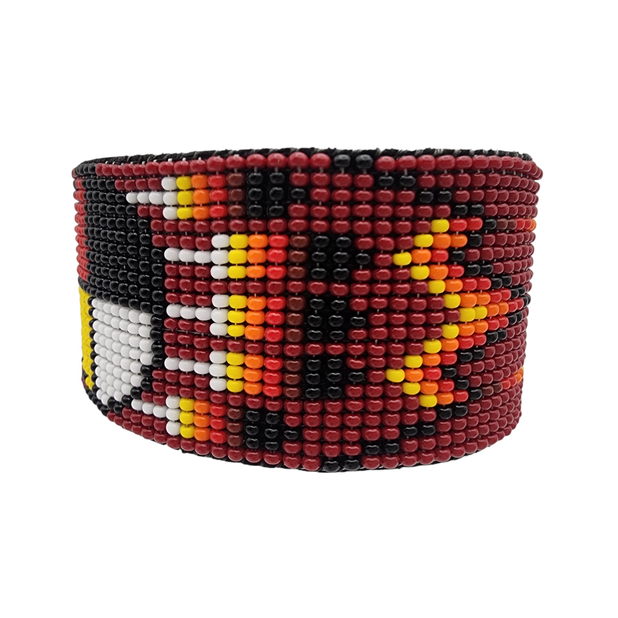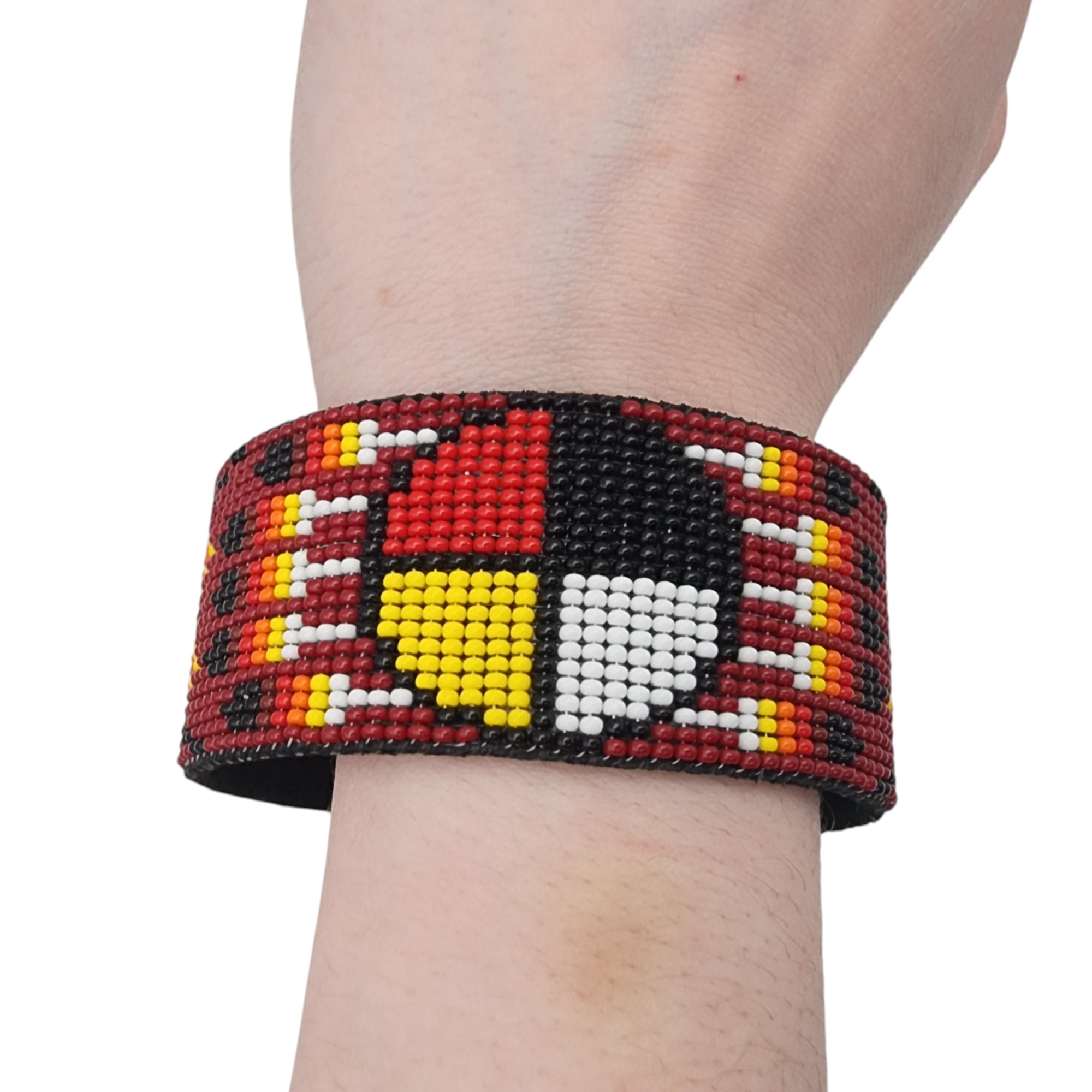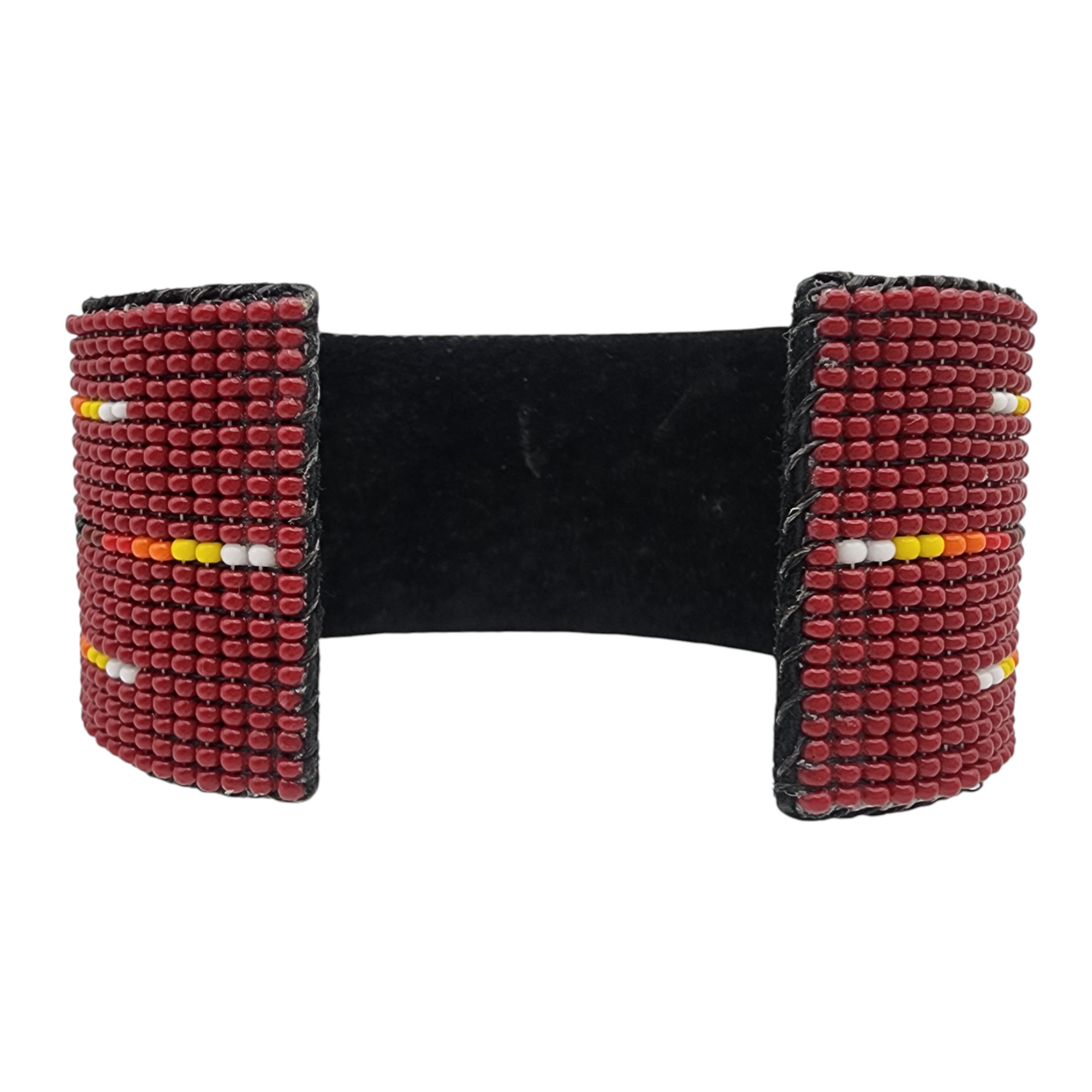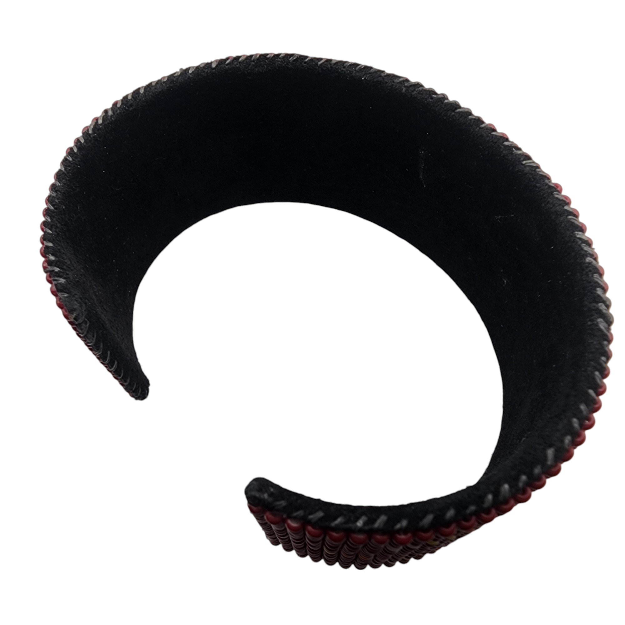 Native American Microbead Cuff Bracelet, 58.1g, backing of cuff is a black suede.