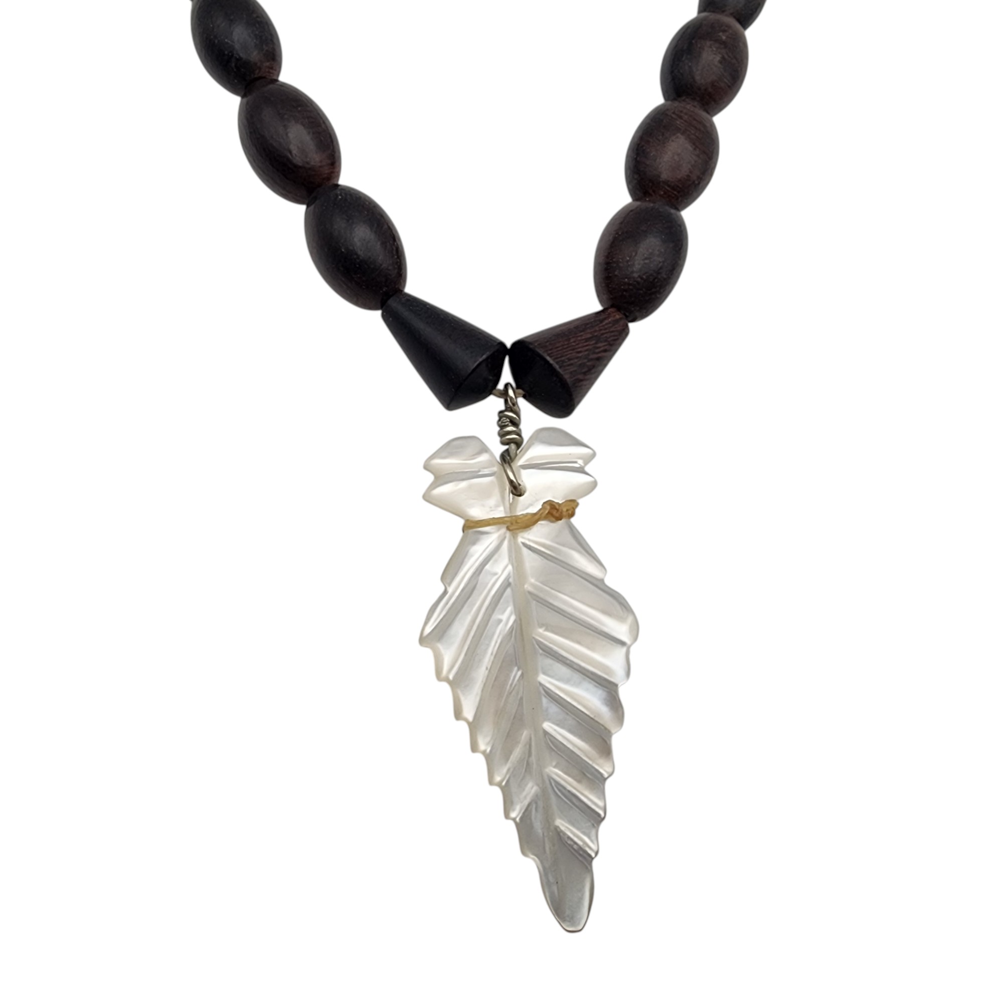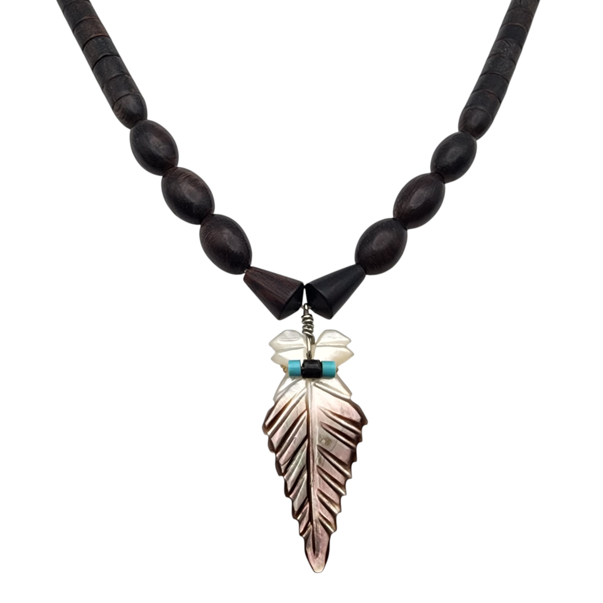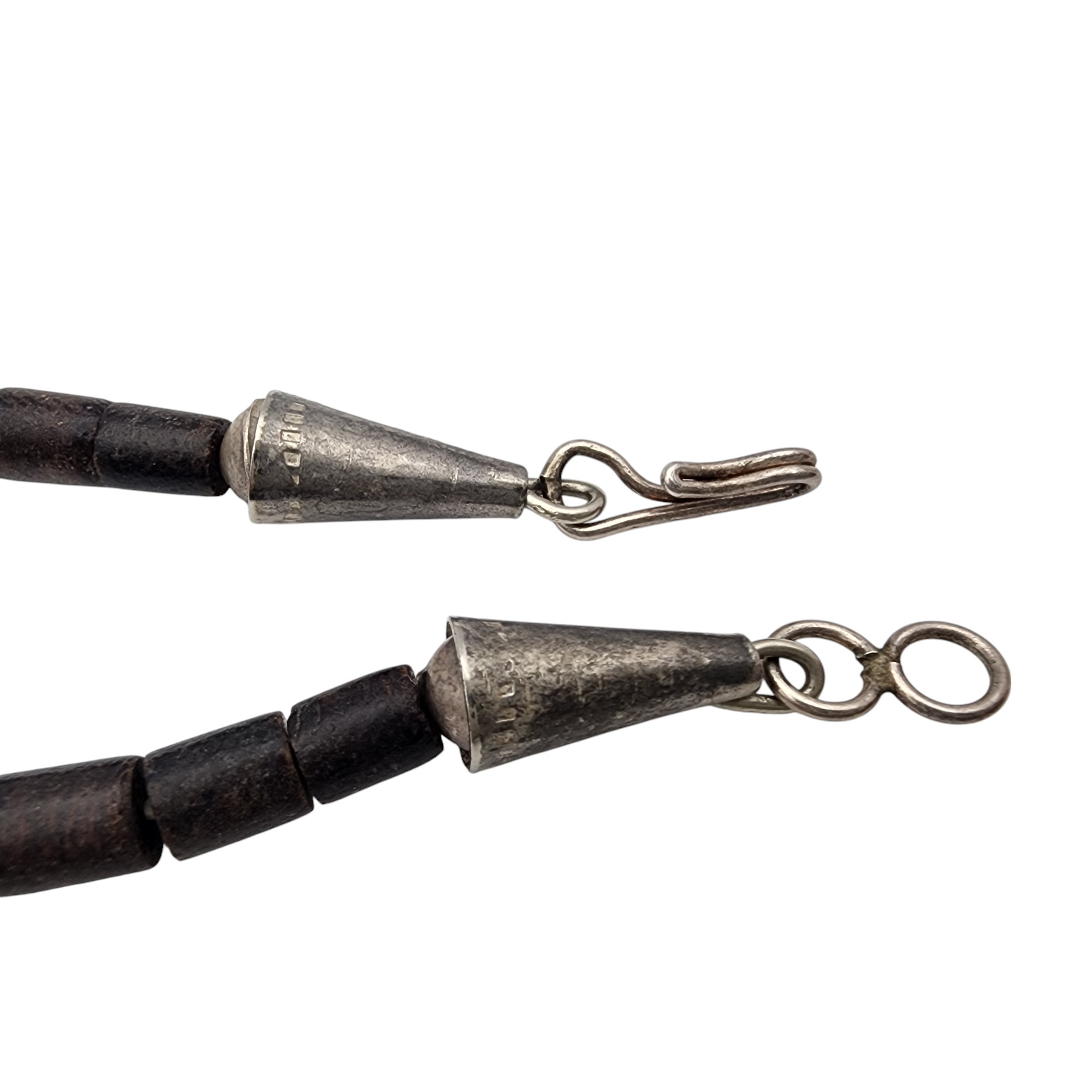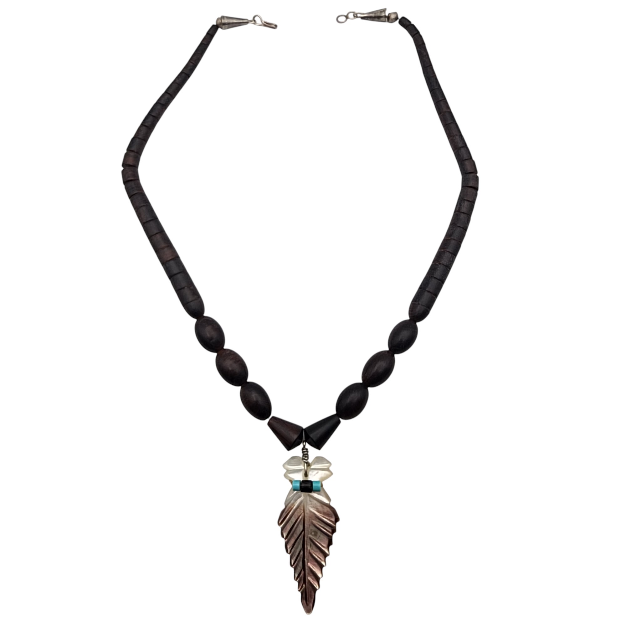 Vintage Heishi Necklace, 23g. Cones are sterling. Necklace is strung on string. Heishi appears to be a wood material.