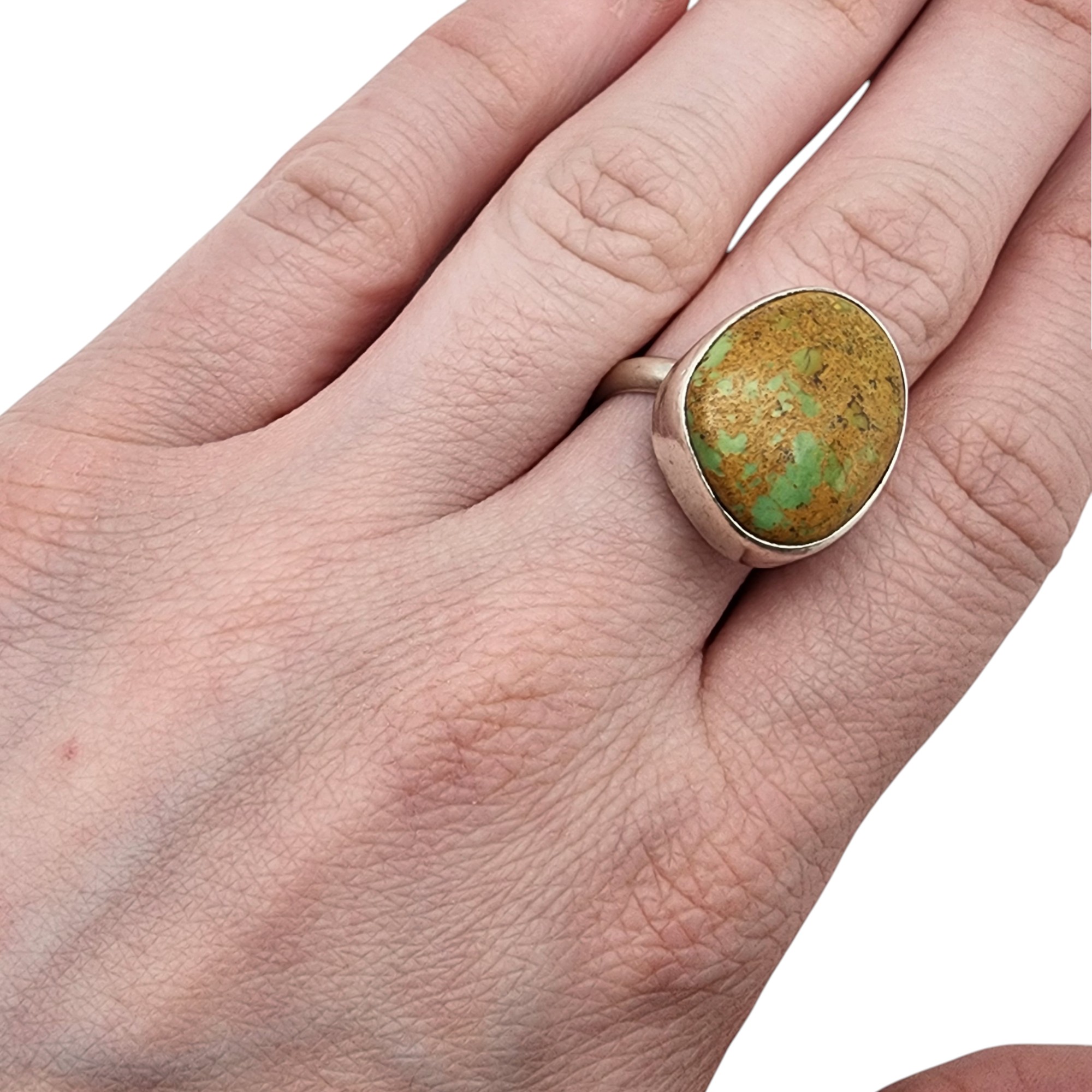 Signed Navajo Sterling Turquoise Ring Sz 8.25, 6.9g