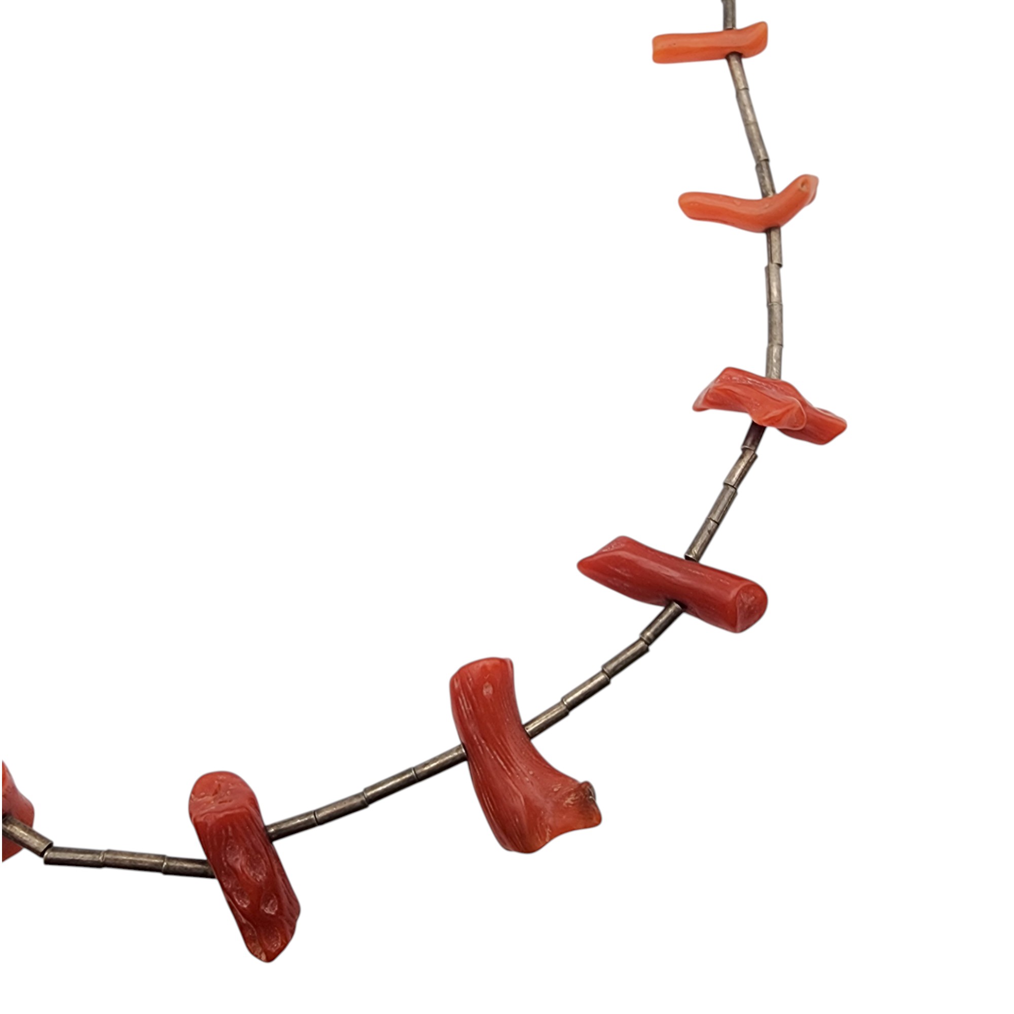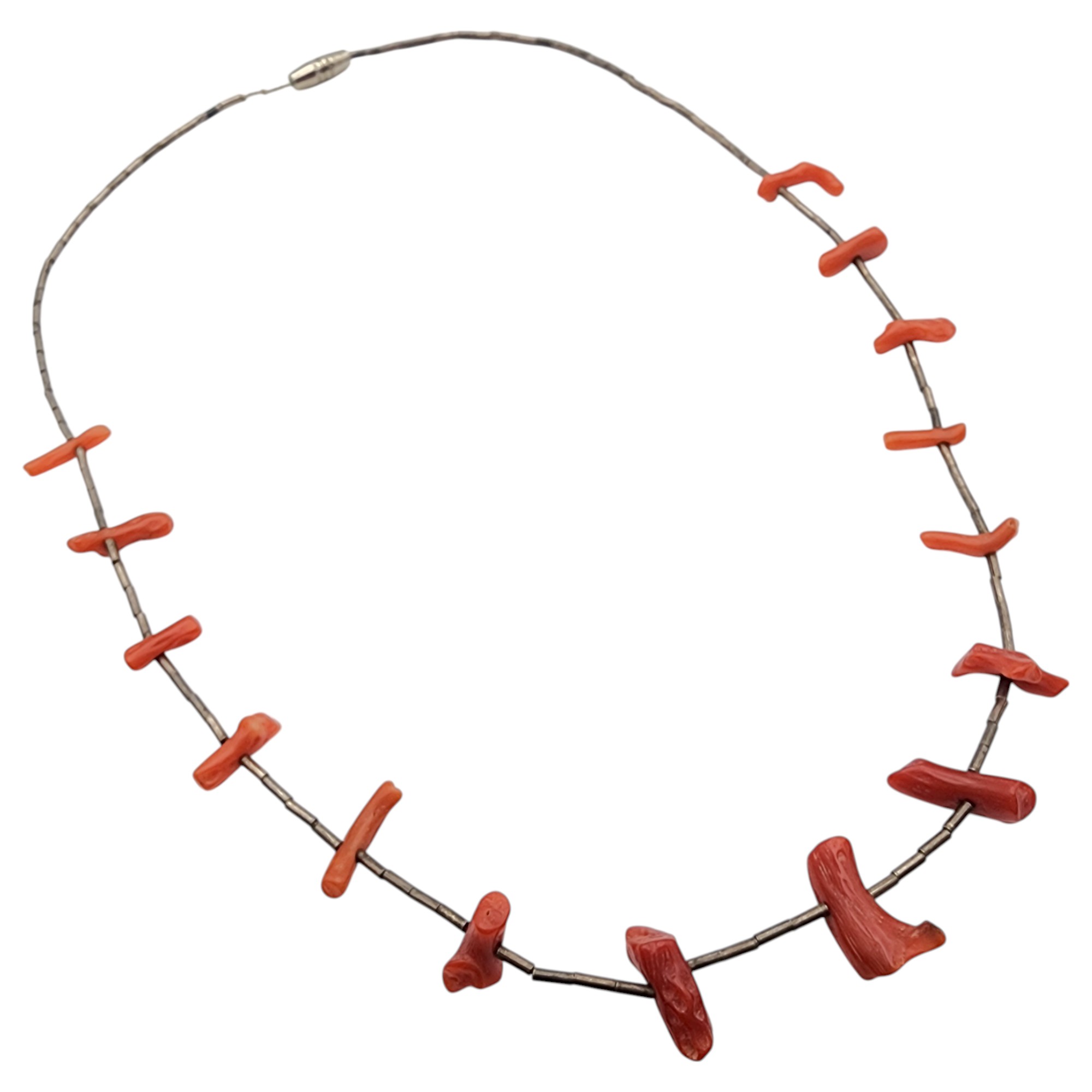 Southwestern Sterling Liquid Silver Coral Necklace, 6.4g
