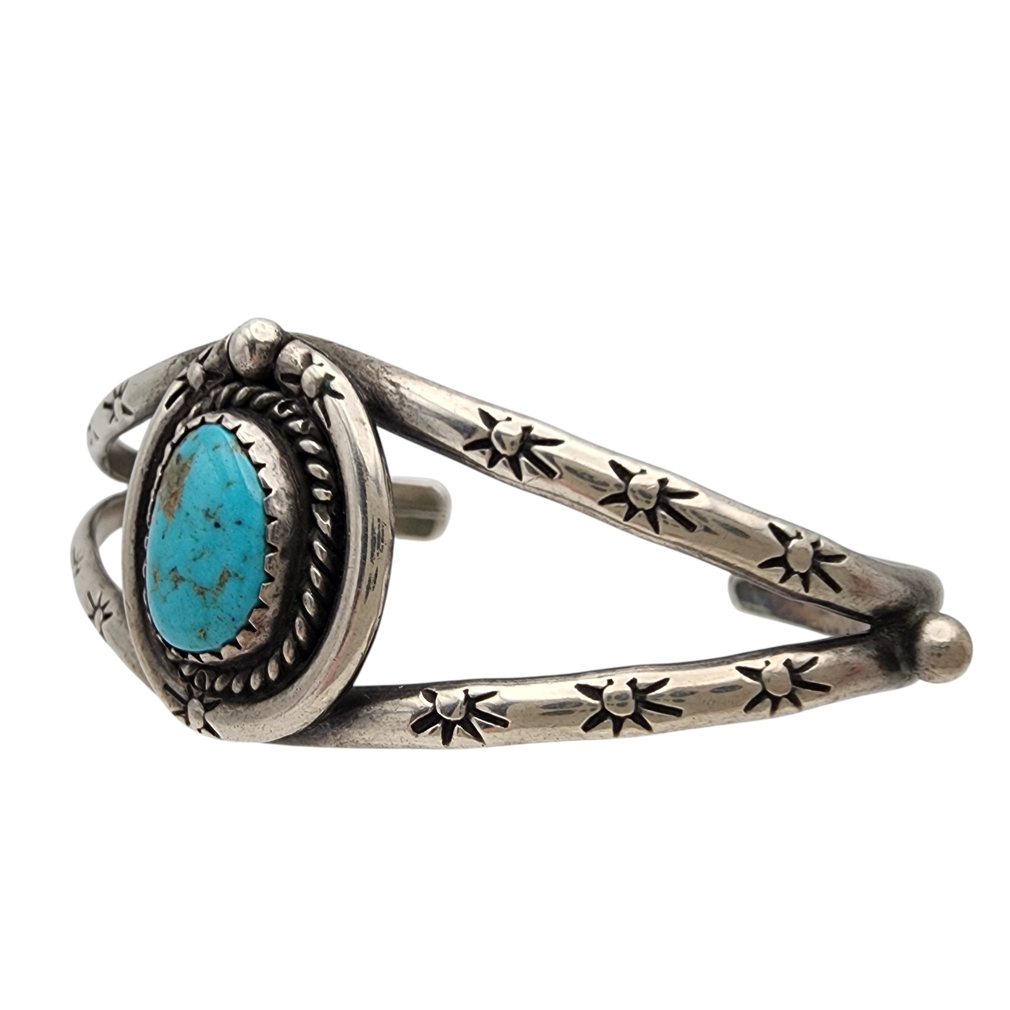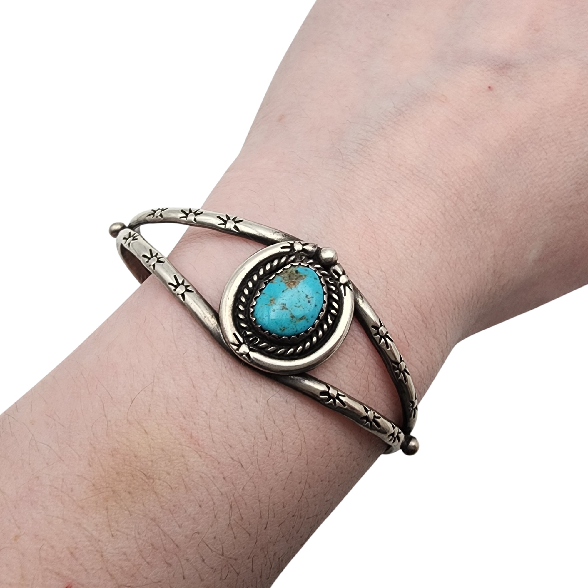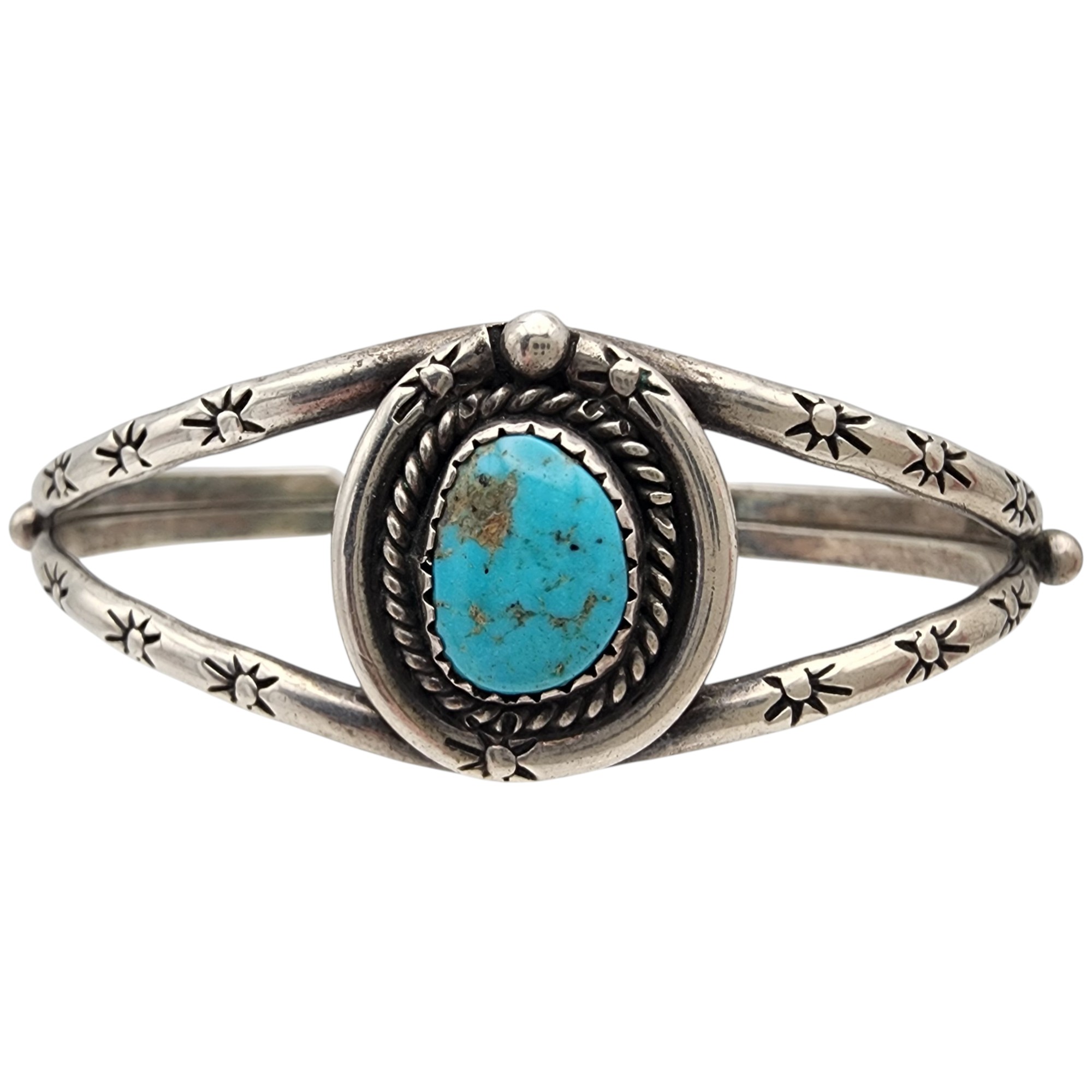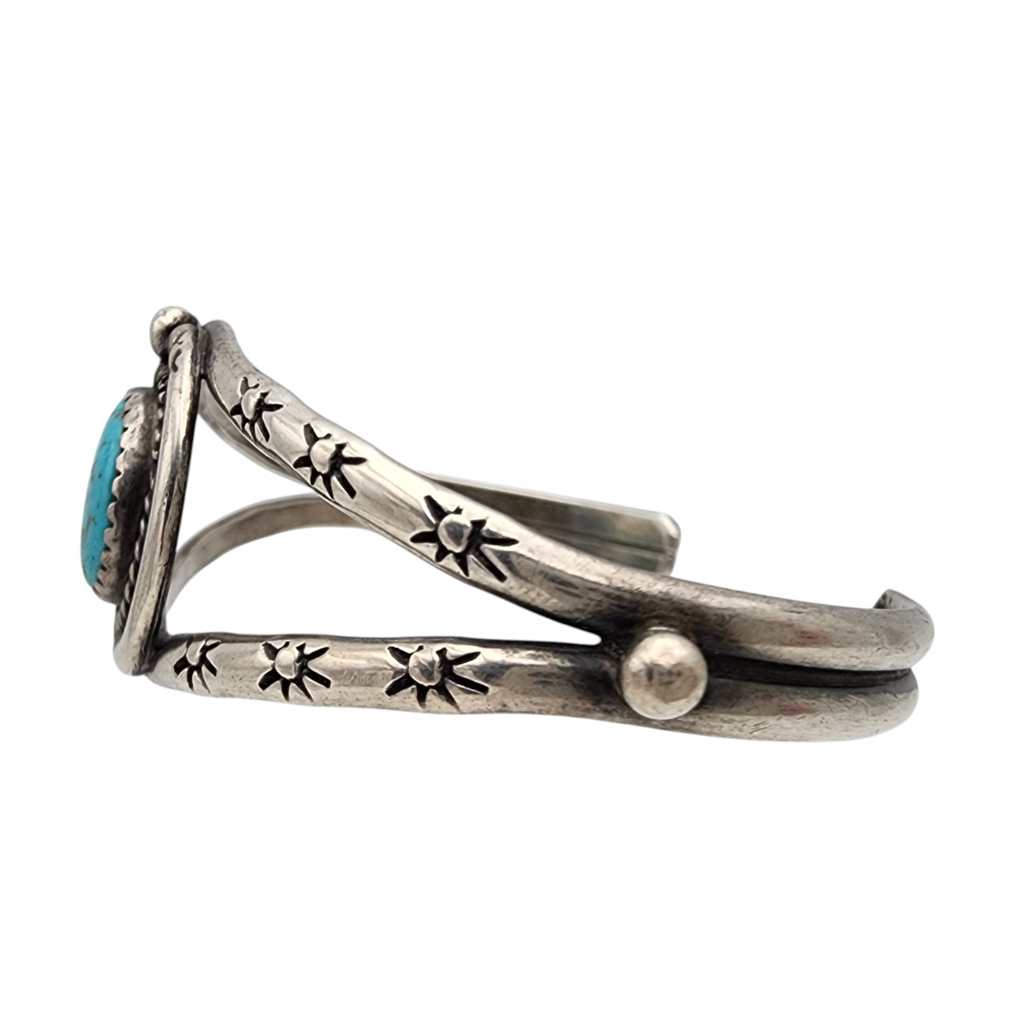 Navajo Sterling Stamped Turquoise Cuff Bracelet, 15.9g