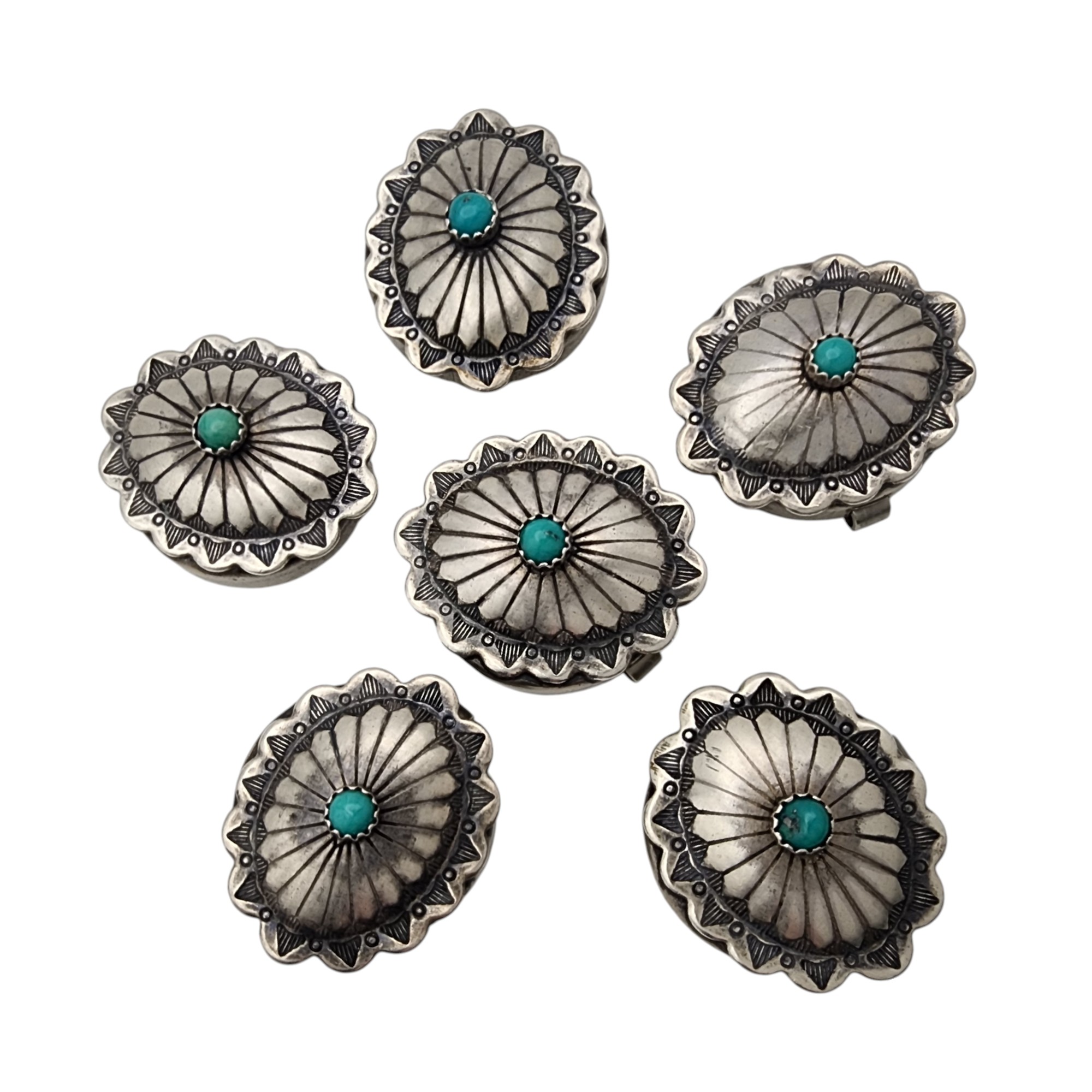 Navajo Sterling Stamped Turquoise Button Covers, 21.7g, QTY: 6