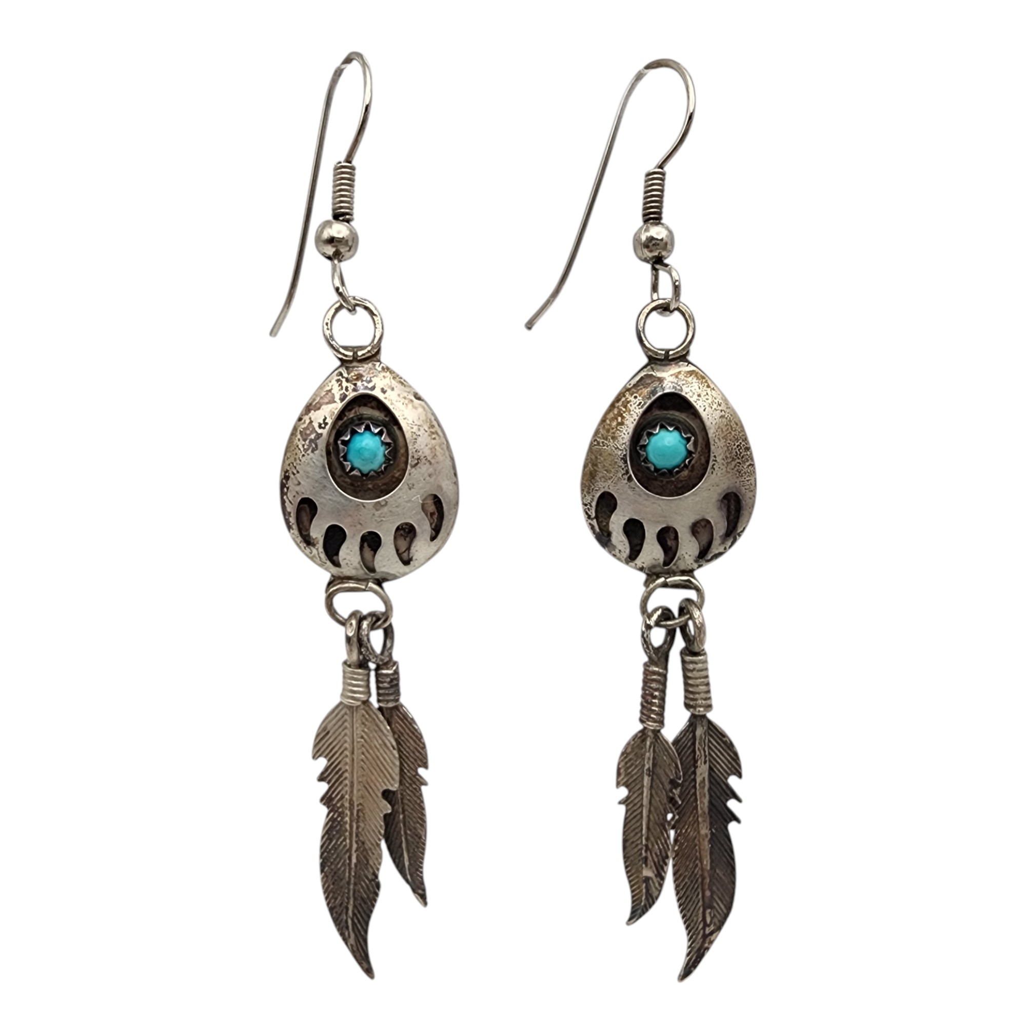 Navajo Sterling Turquoise Bear Paw Earrings, 5.3g