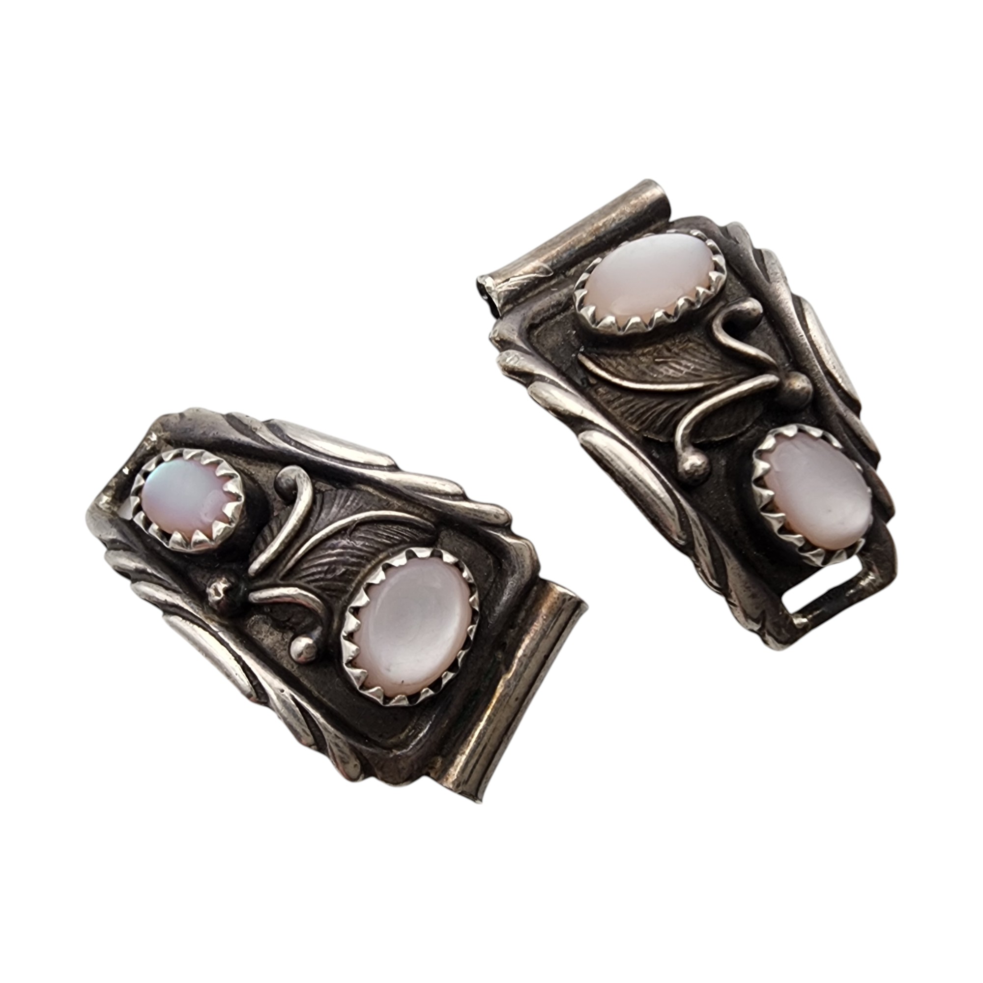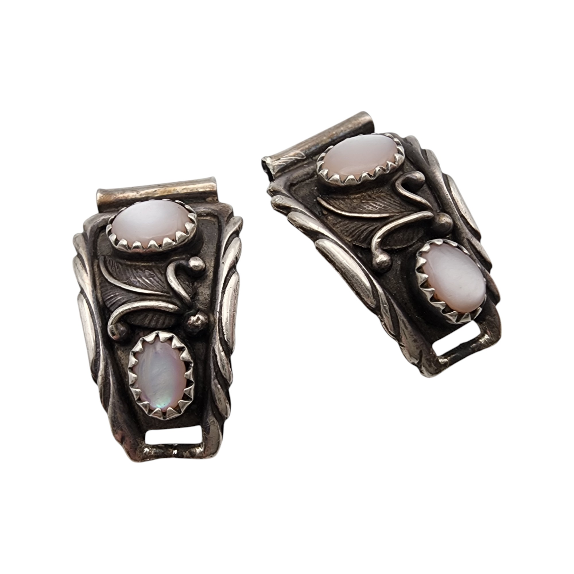 Richard Begay Navajo Sterling Mother of Pearl Watch Tips, 5.9g