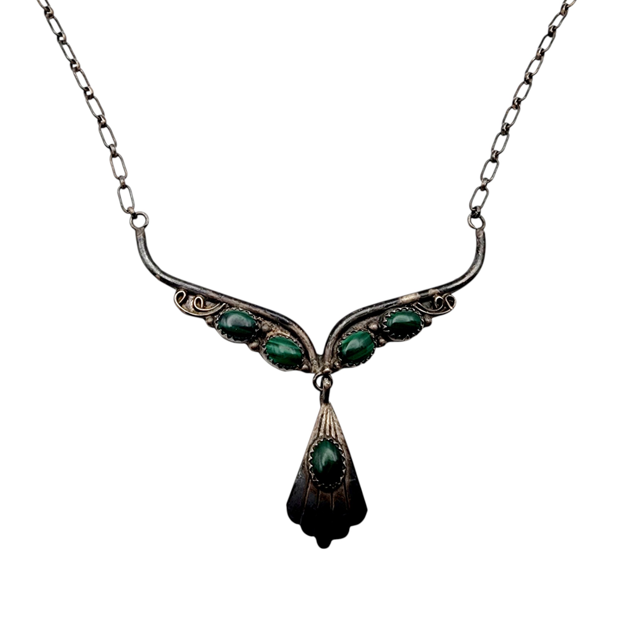 Vintage Navajo Sterling Malachite Dangle Necklace, 9.8g