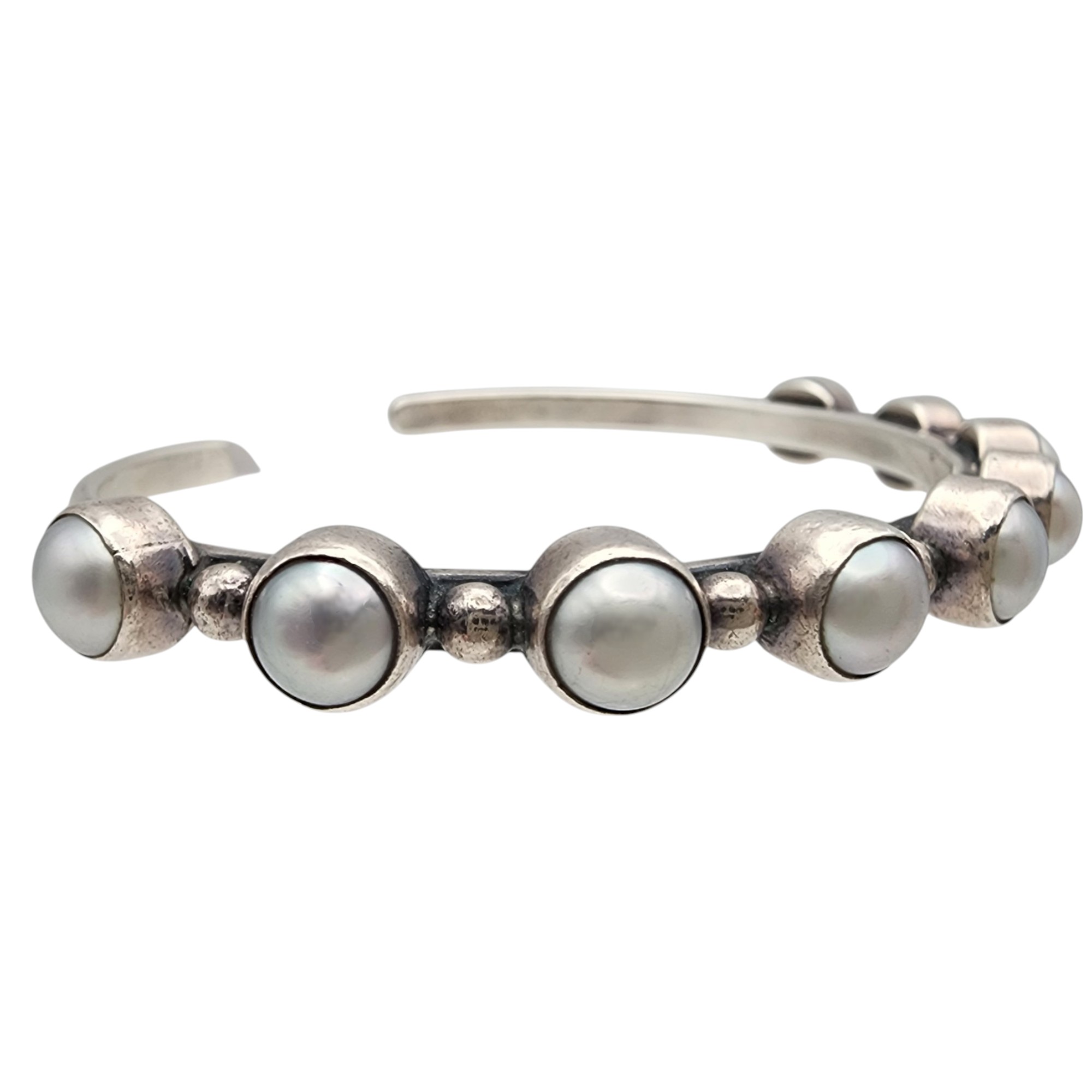 Grace & Gilo Nakai Navajo Sterling Pearl Row Cuff Bracelet, 15.2g