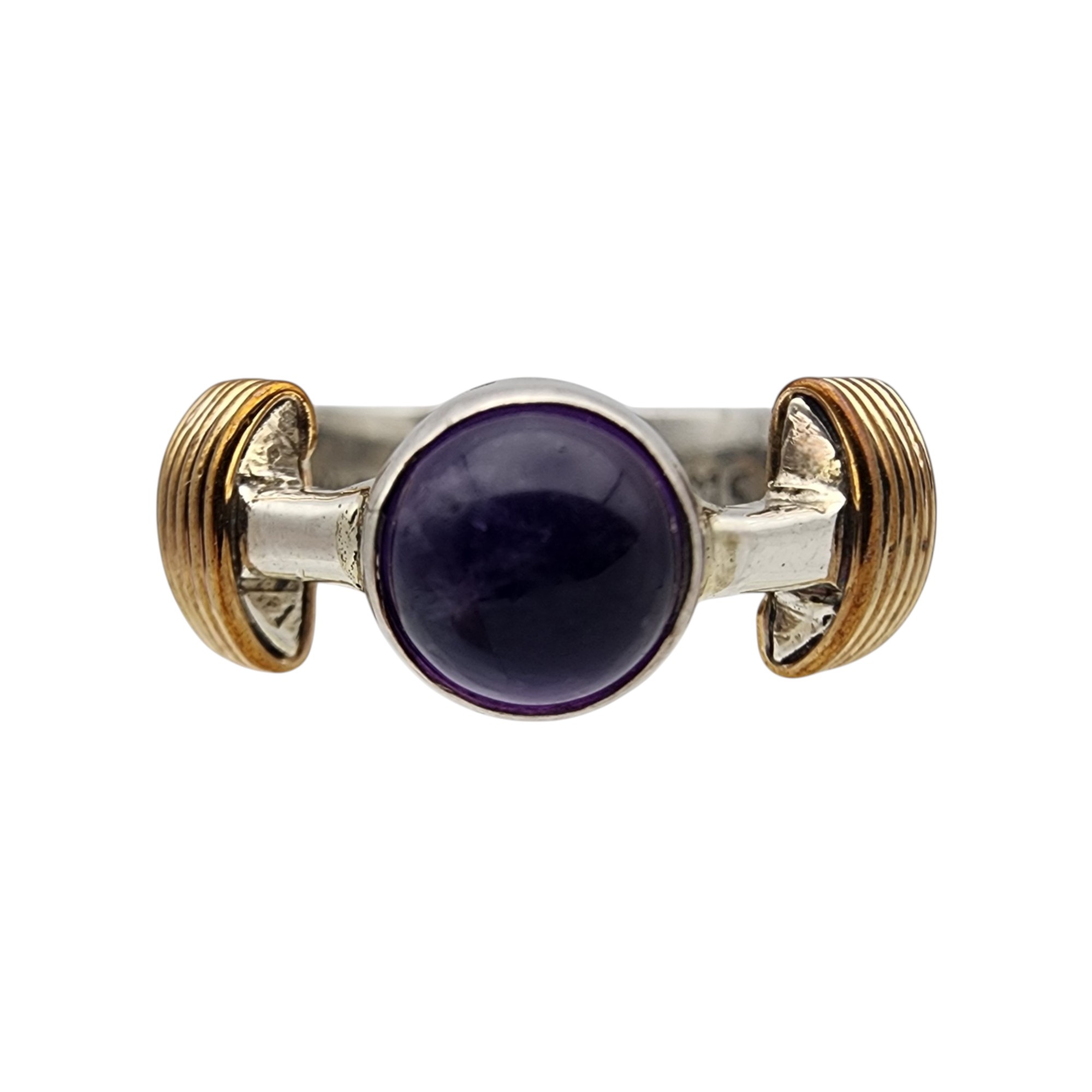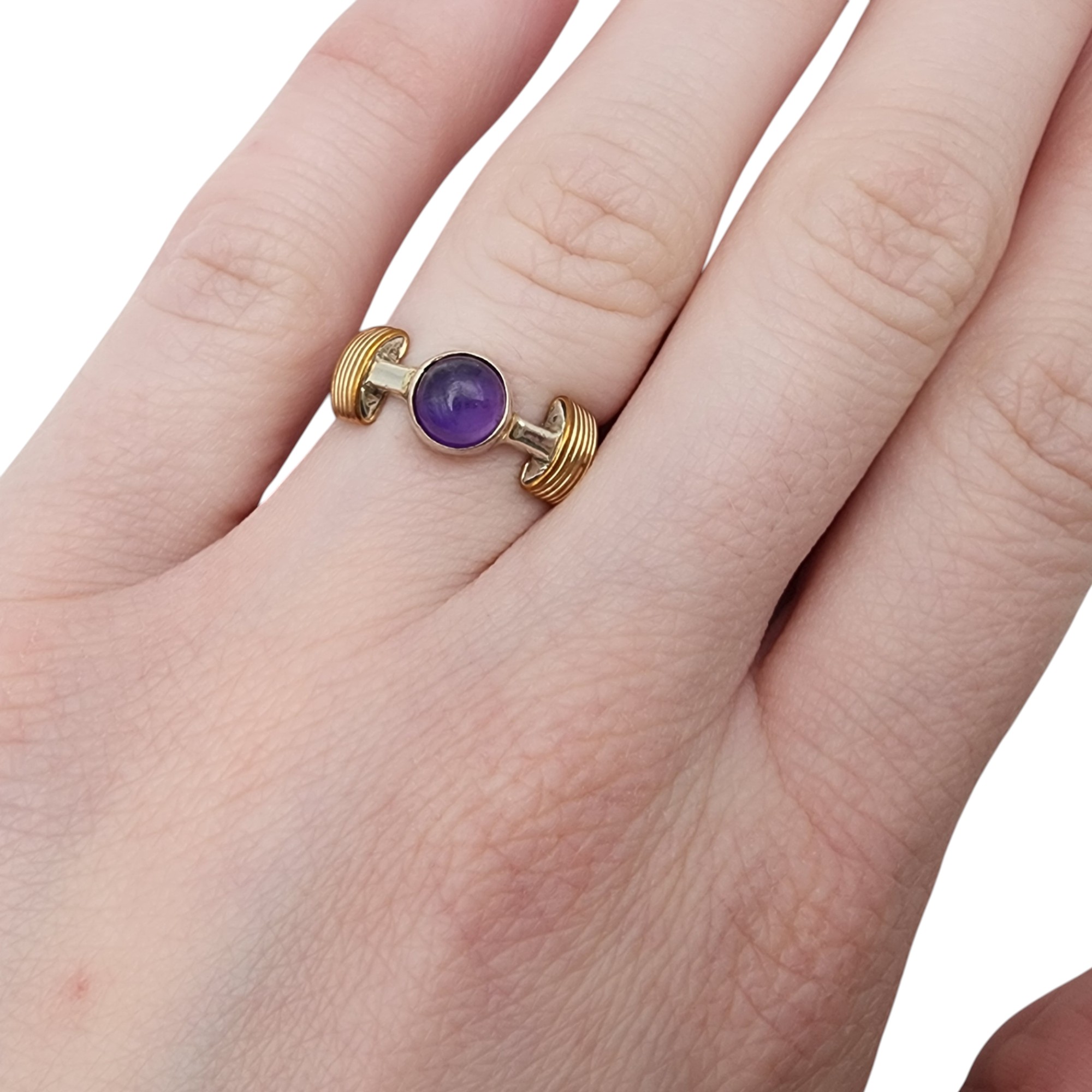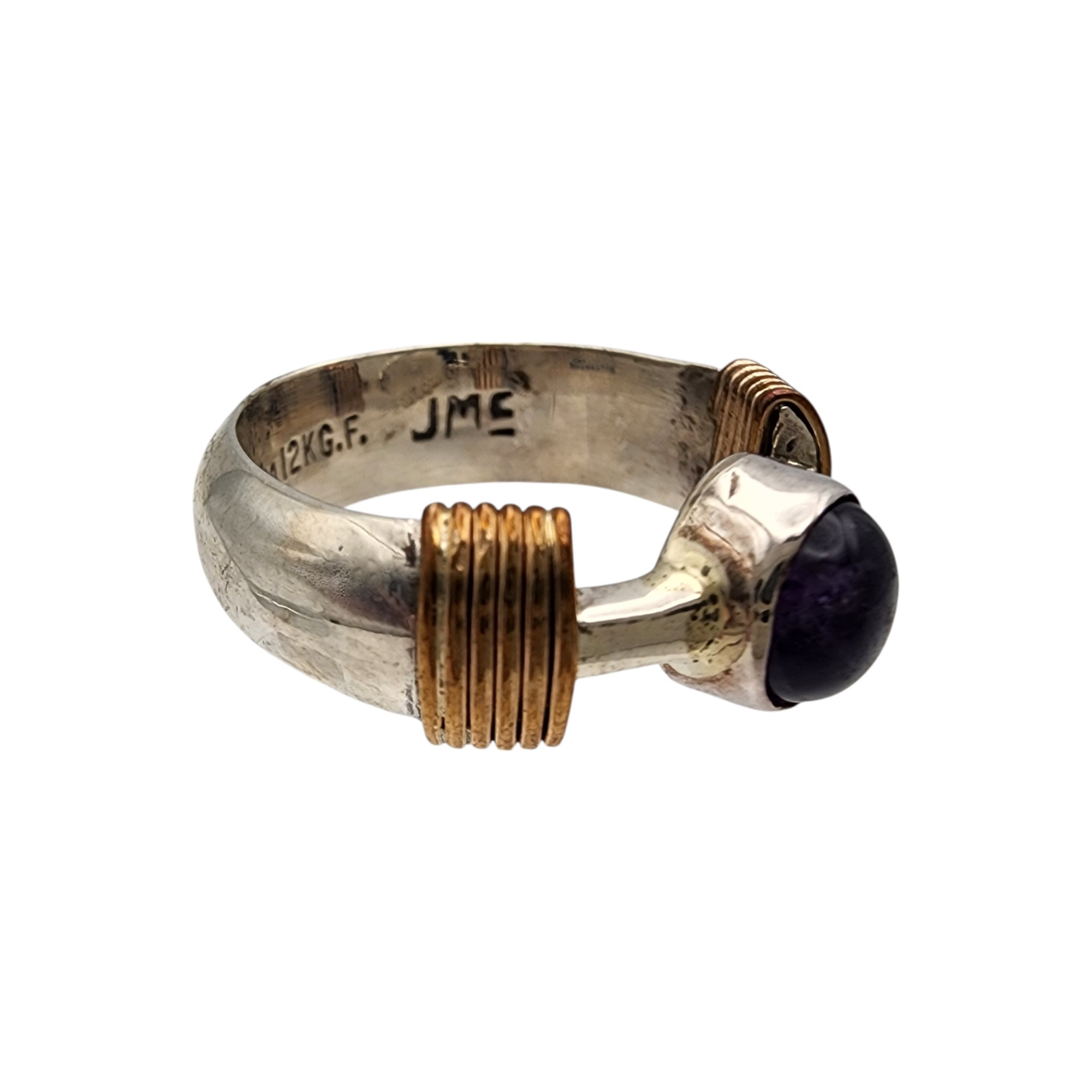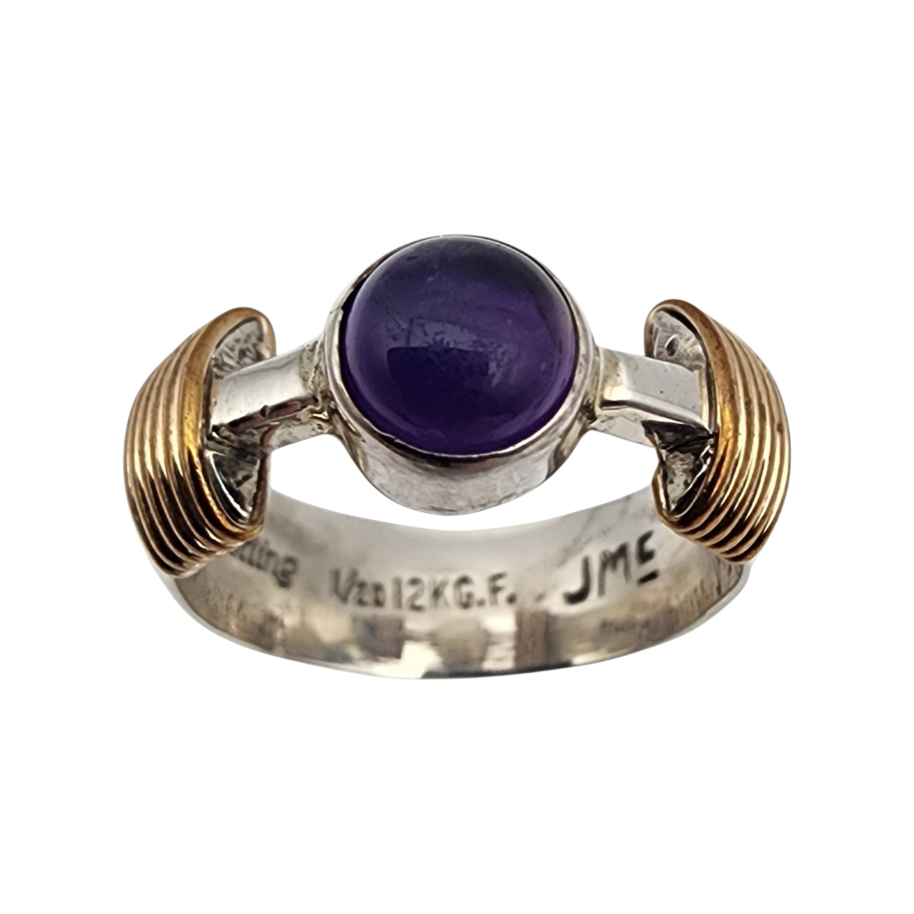 Jane McCrory Anglo Sterling & Goldfill Amethyst Ring Sz 5.5, 4.7g