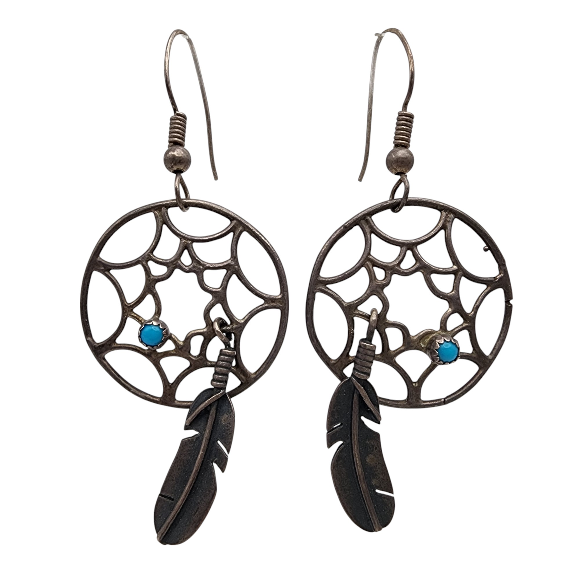 Southwestern Sterling Turquoise Dreamcatcher Earrings