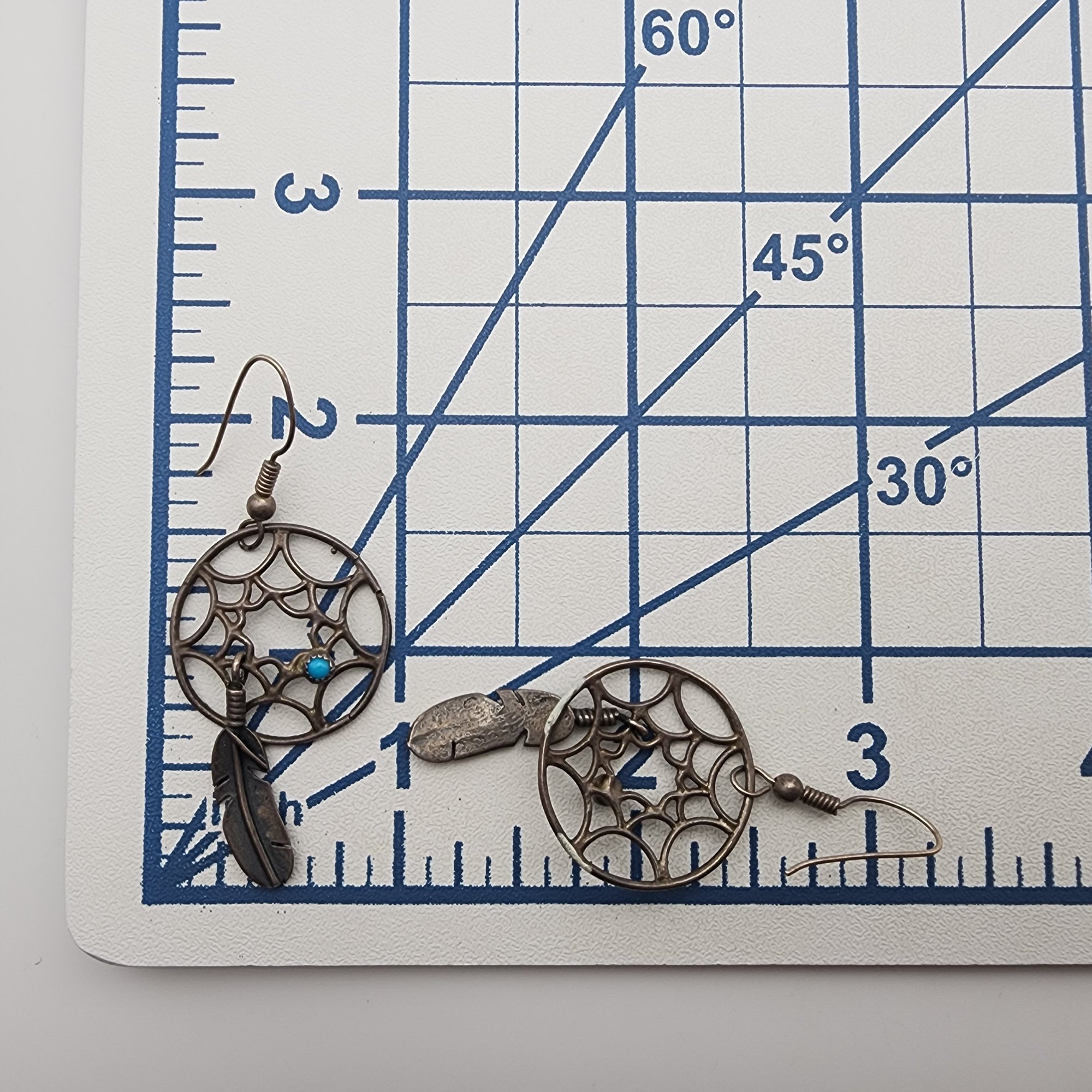 Southwestern Sterling Turquoise Dreamcatcher Earrings, 5.1g