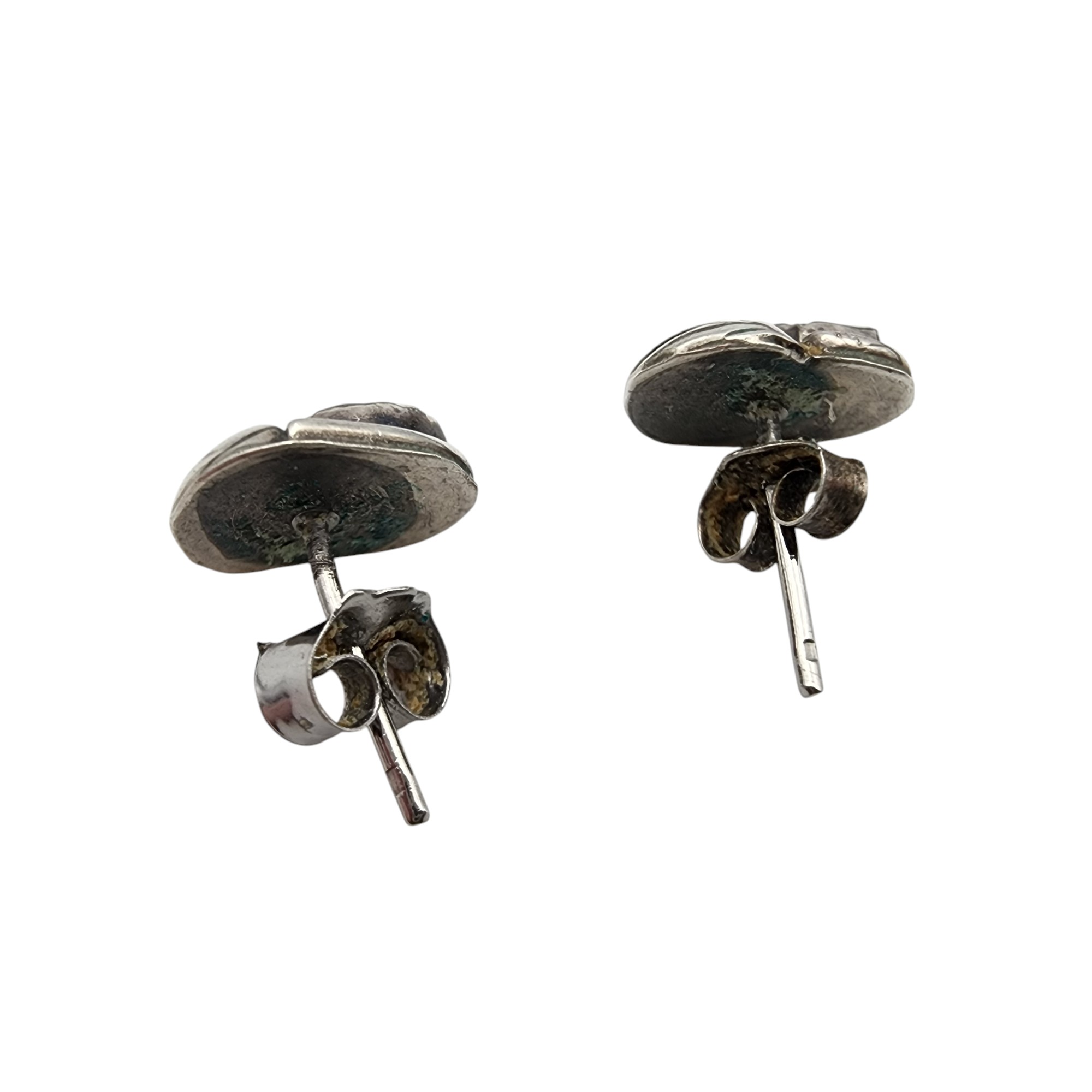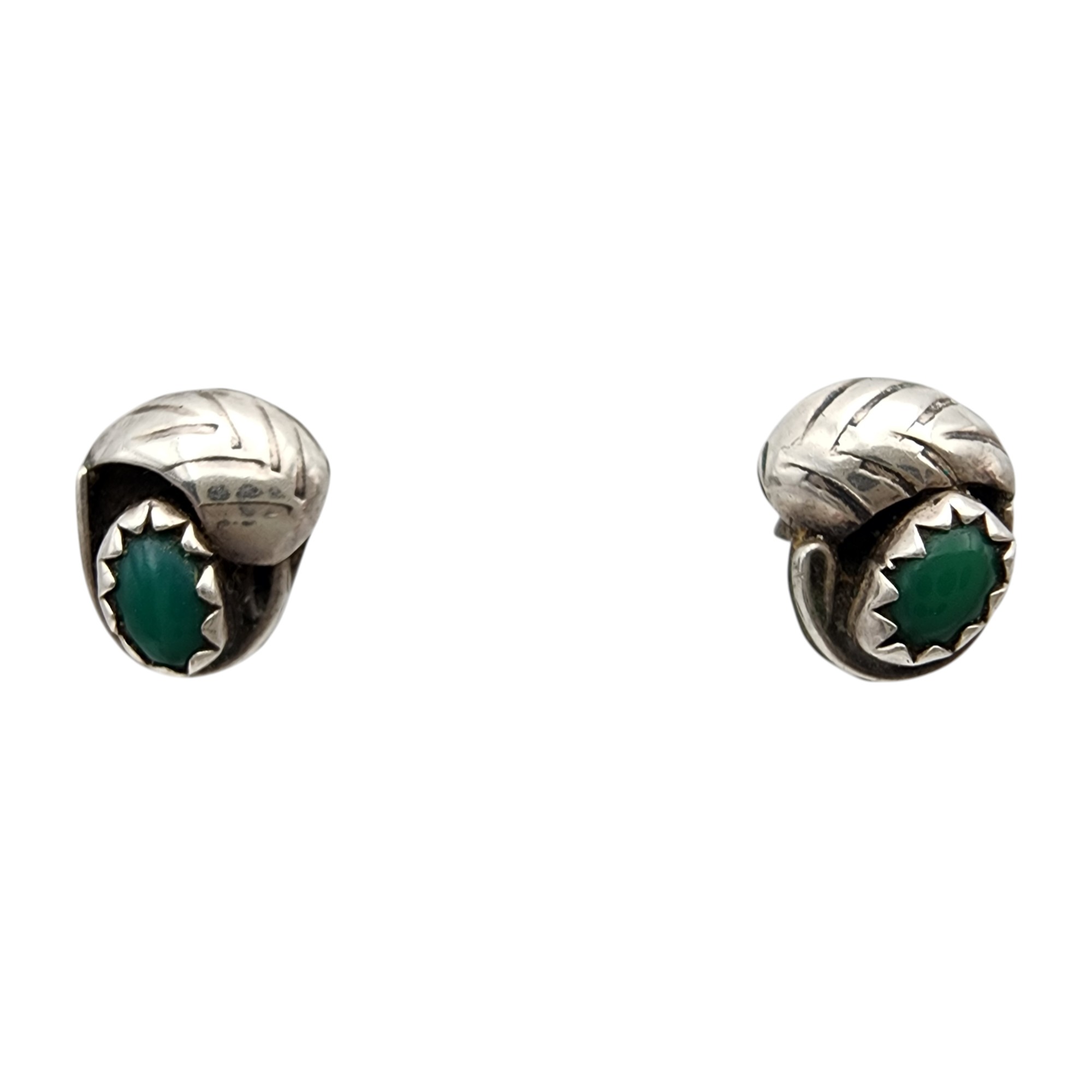 Vintage Navajo Sterling Turquoise Earrings, 1.2g, may also be malachite – stone is a bluish-green, one is more green than the other; however, no bands on stone noted to indicate malachite.