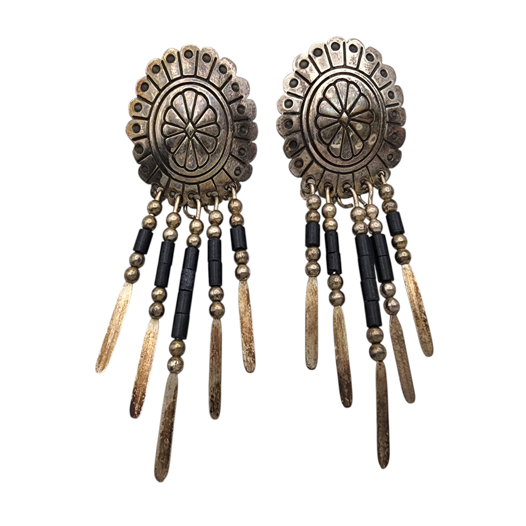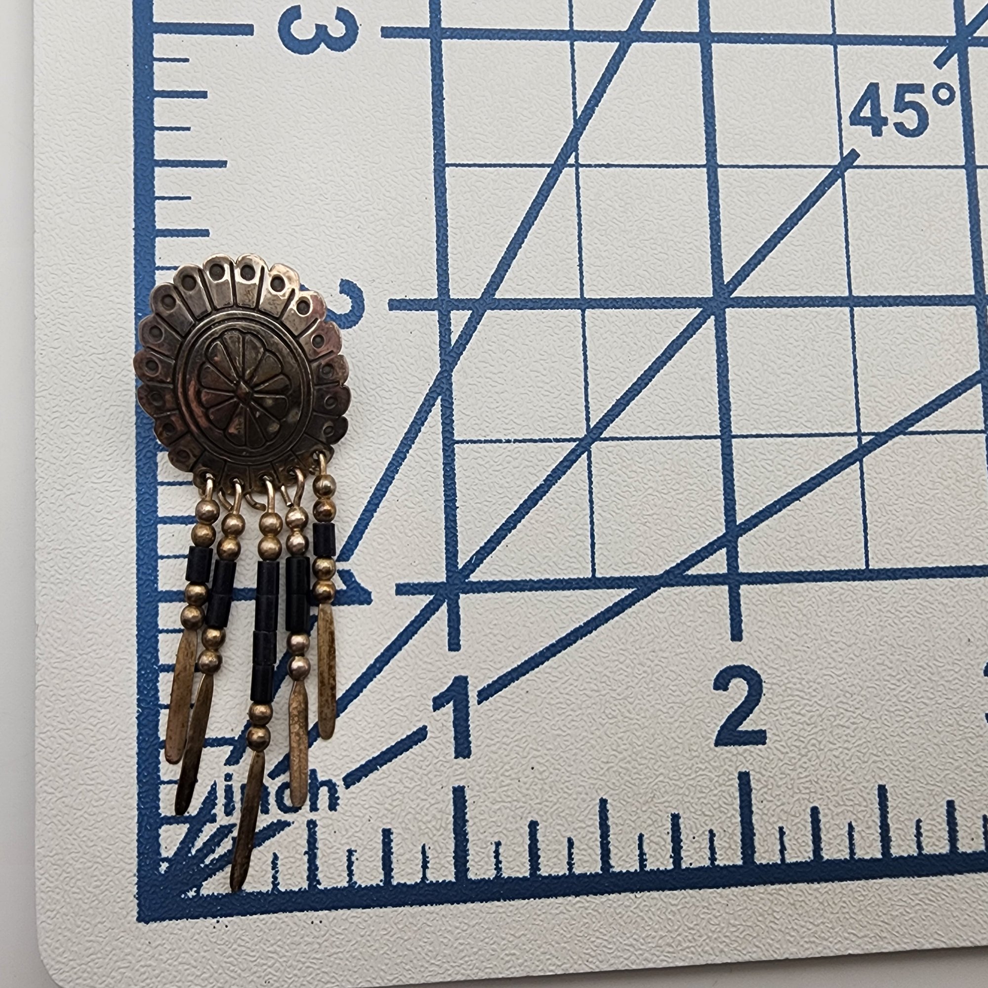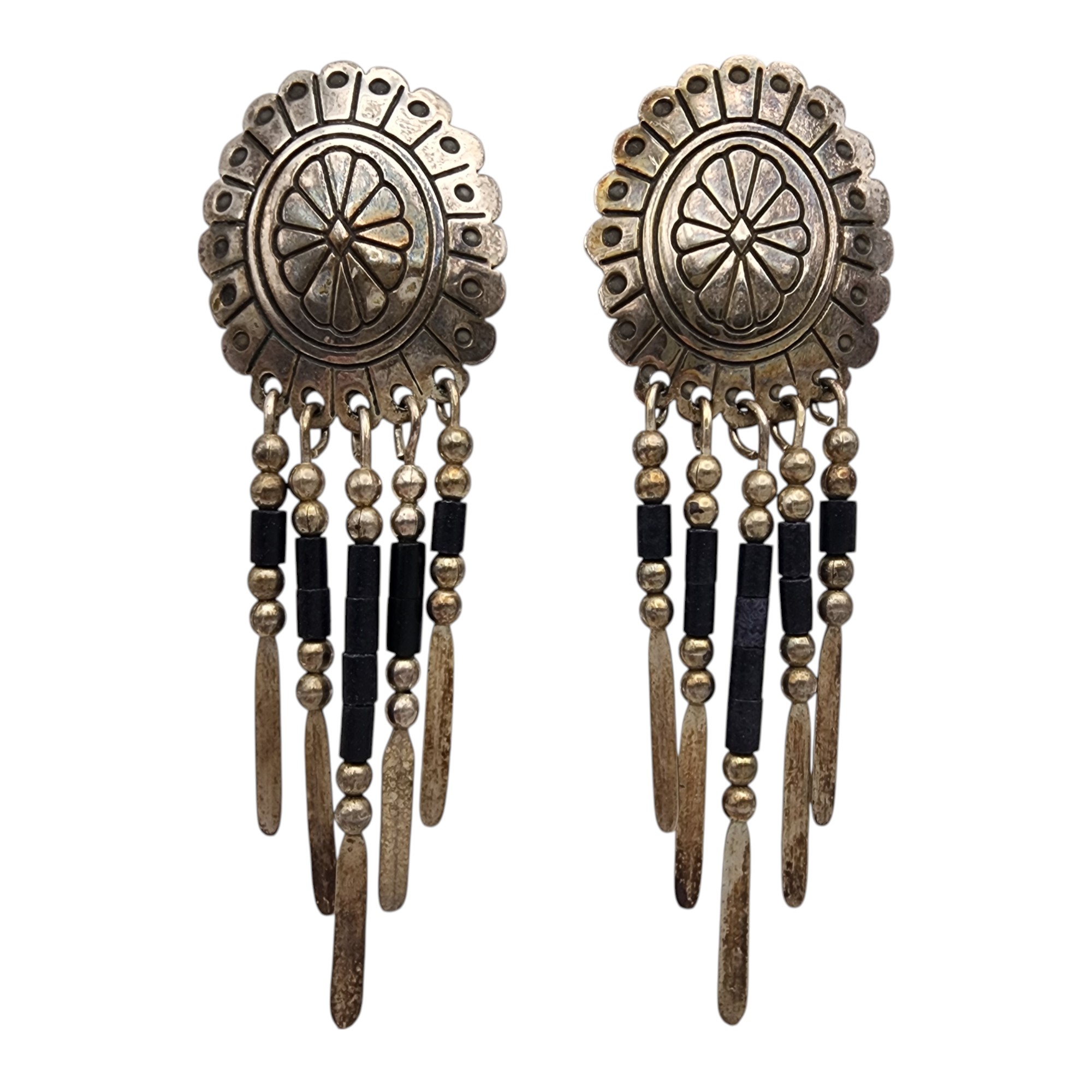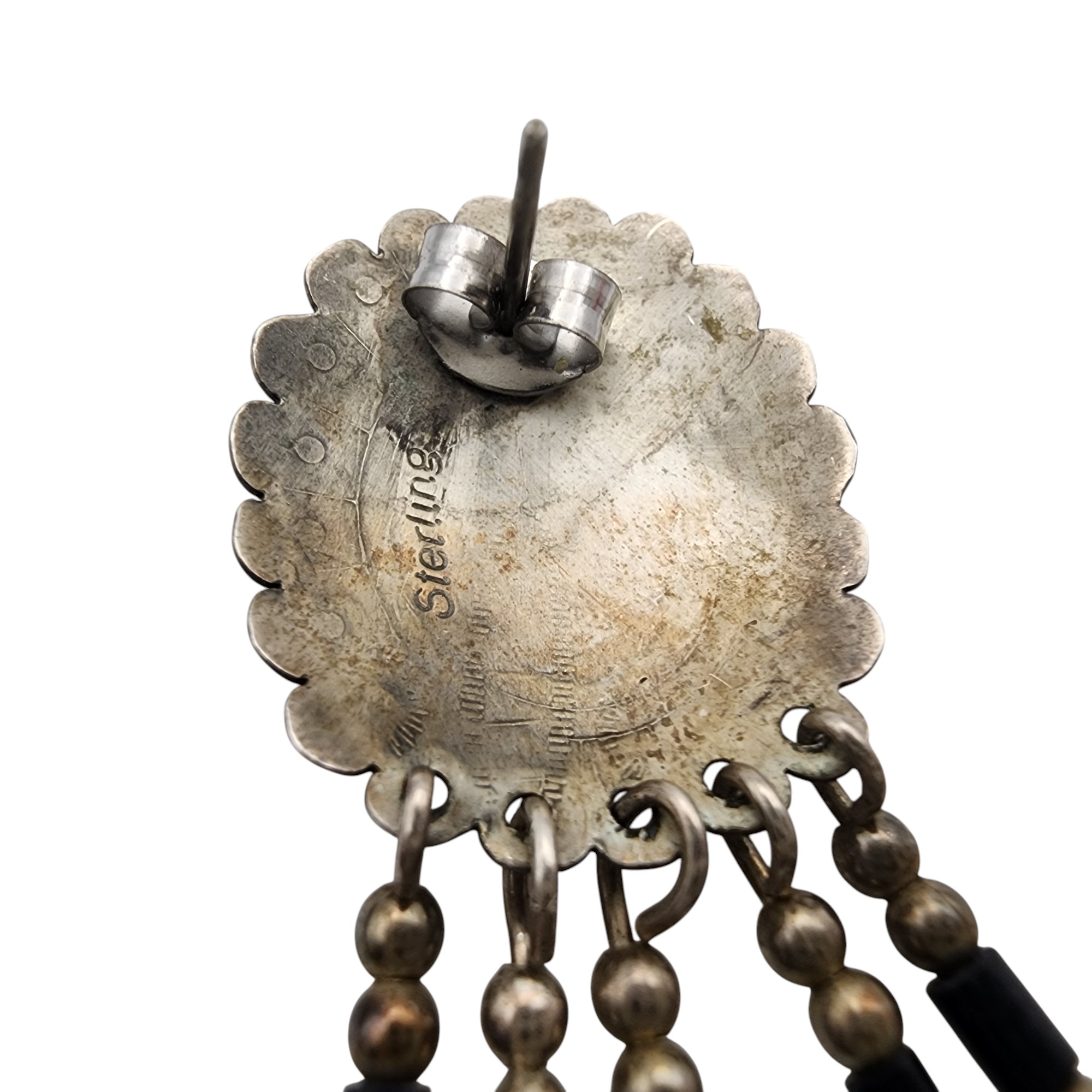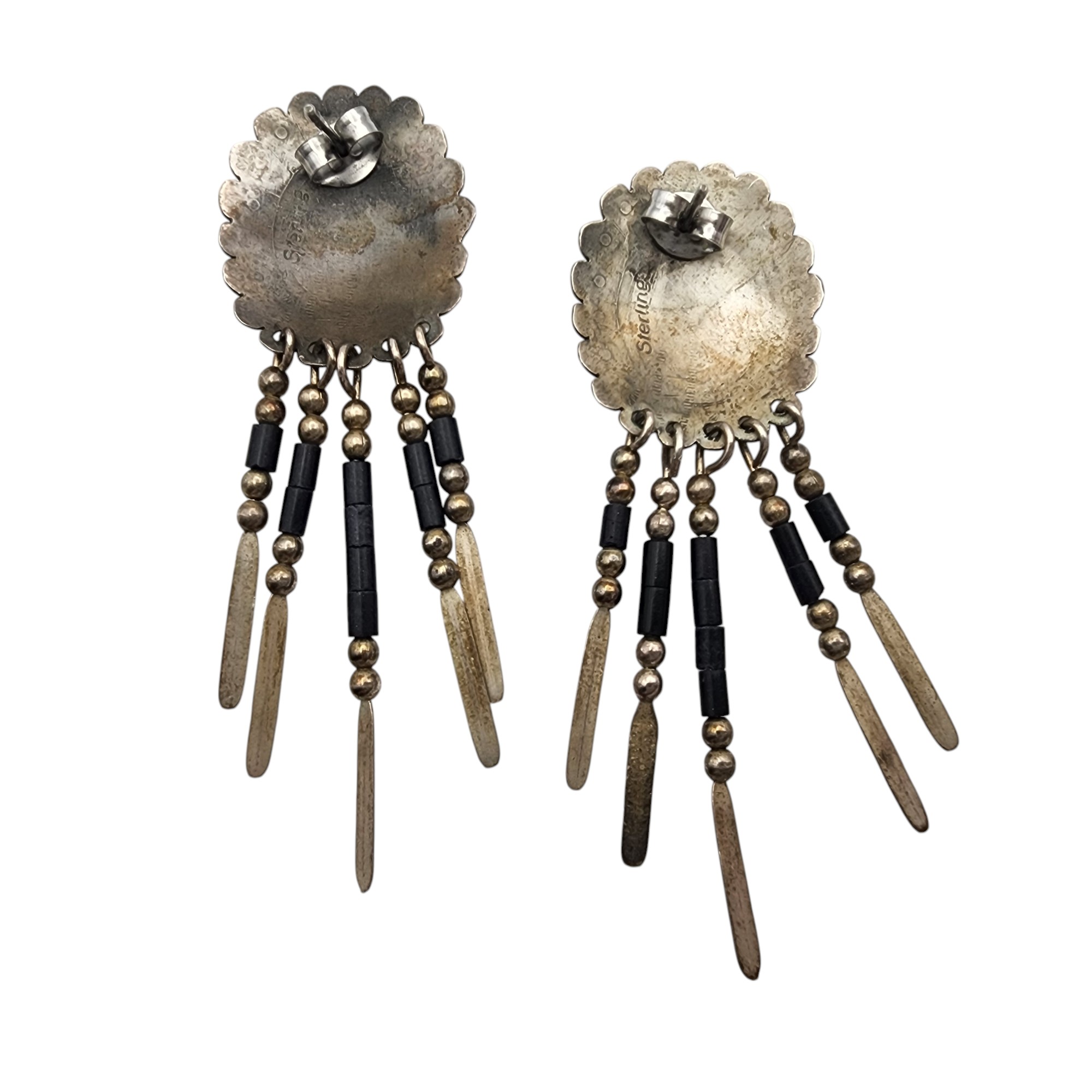 Southwestern Sterling Concho Bead Dangle Earrings, 4.4g