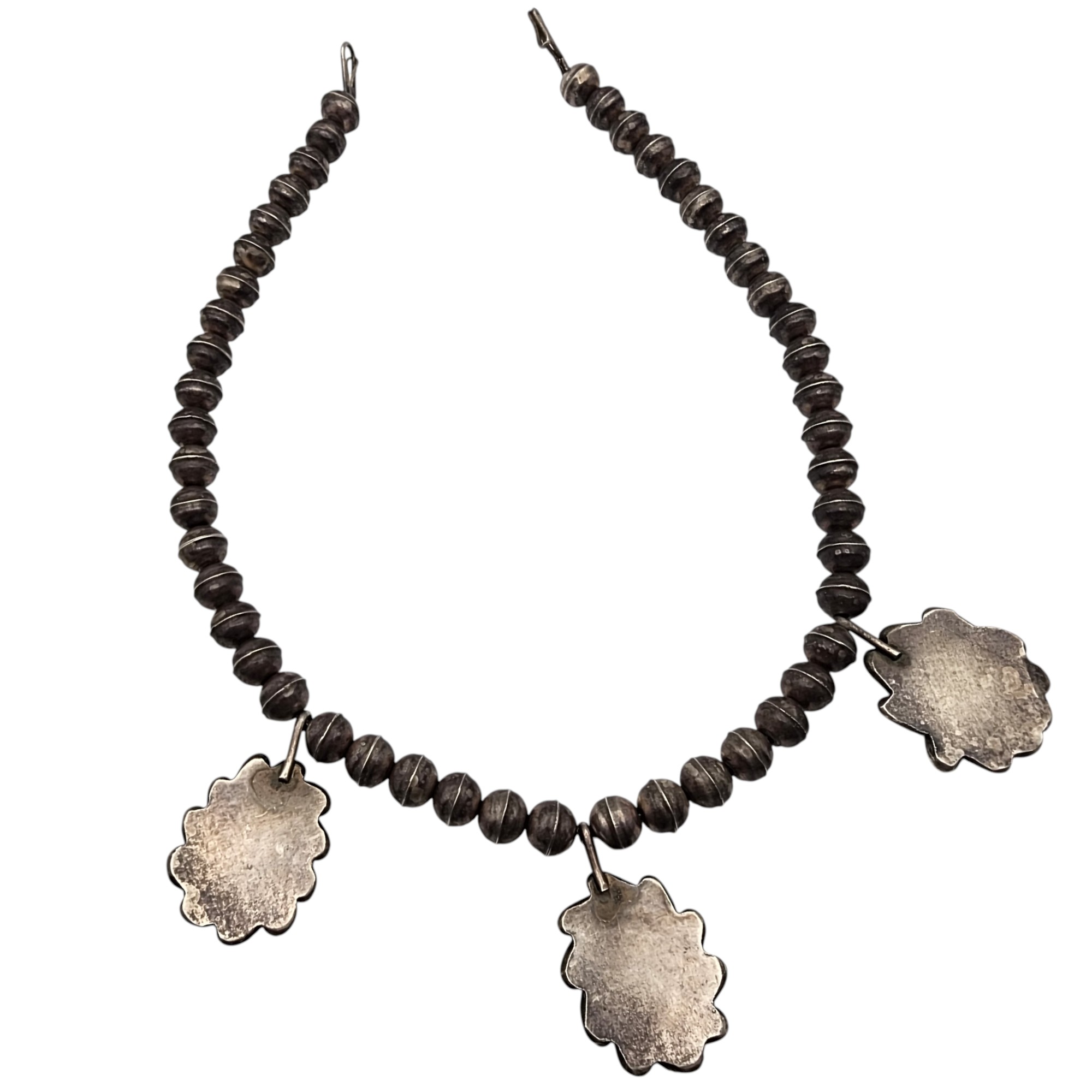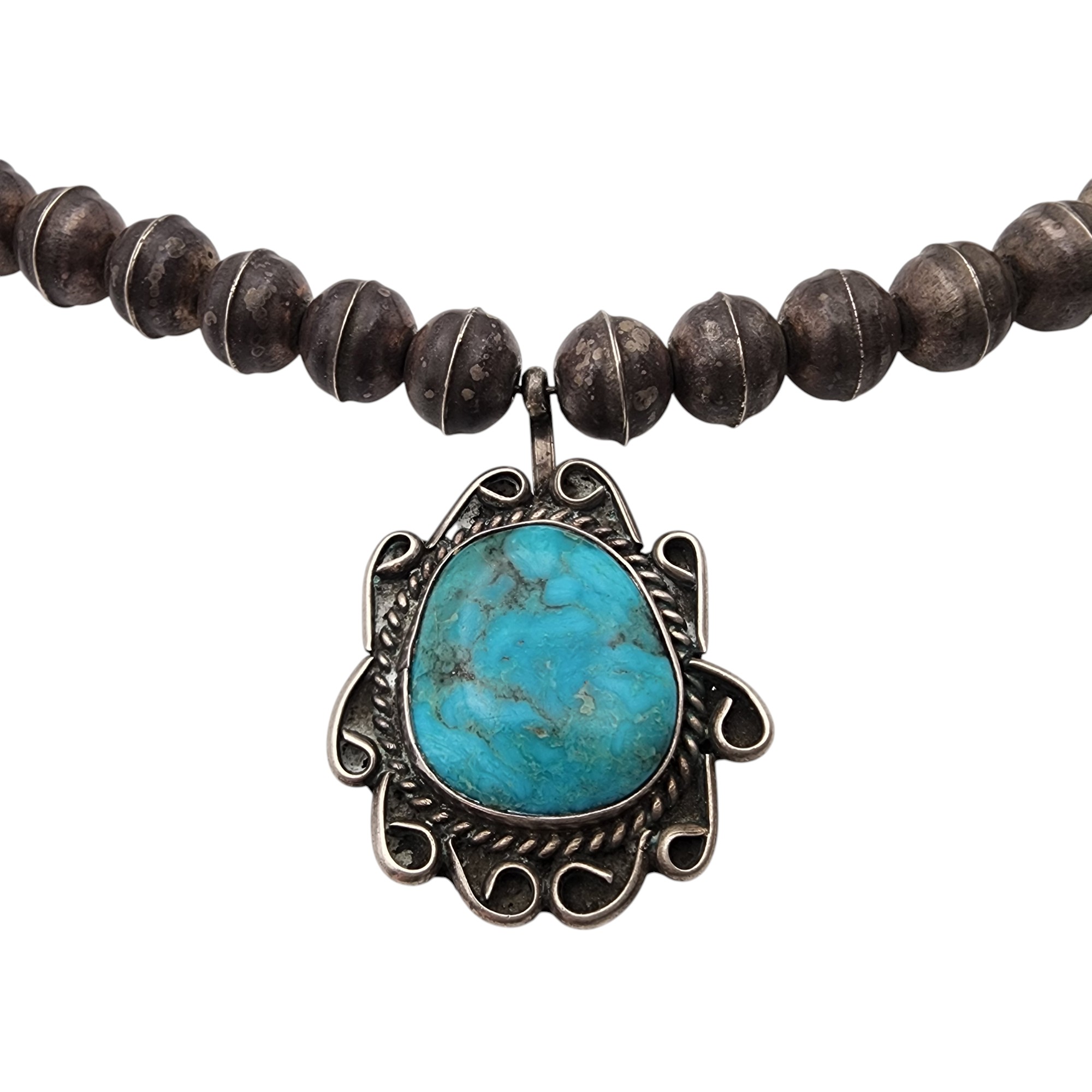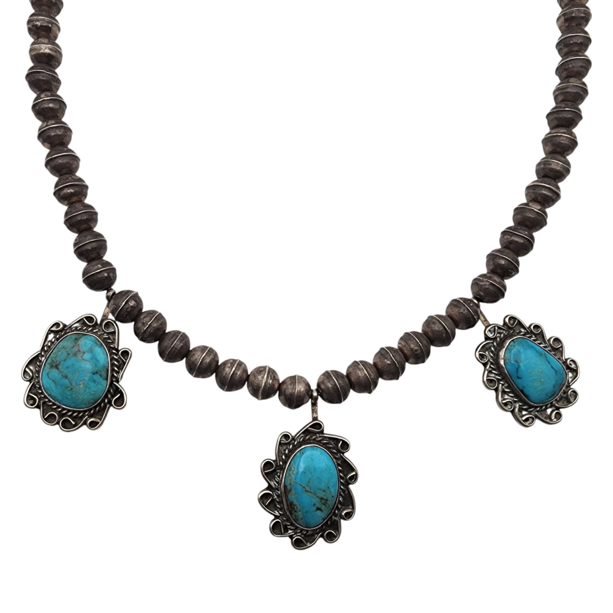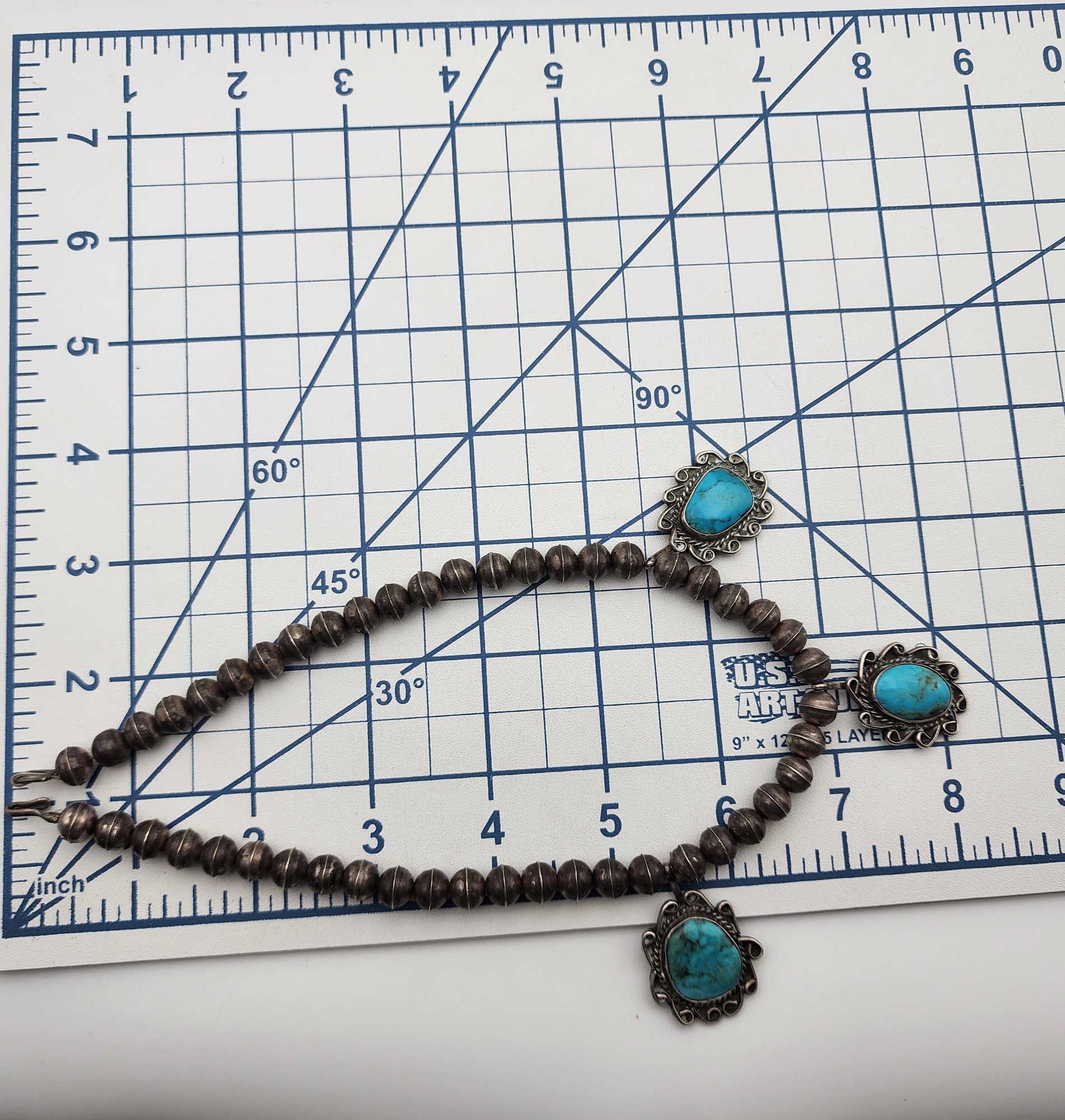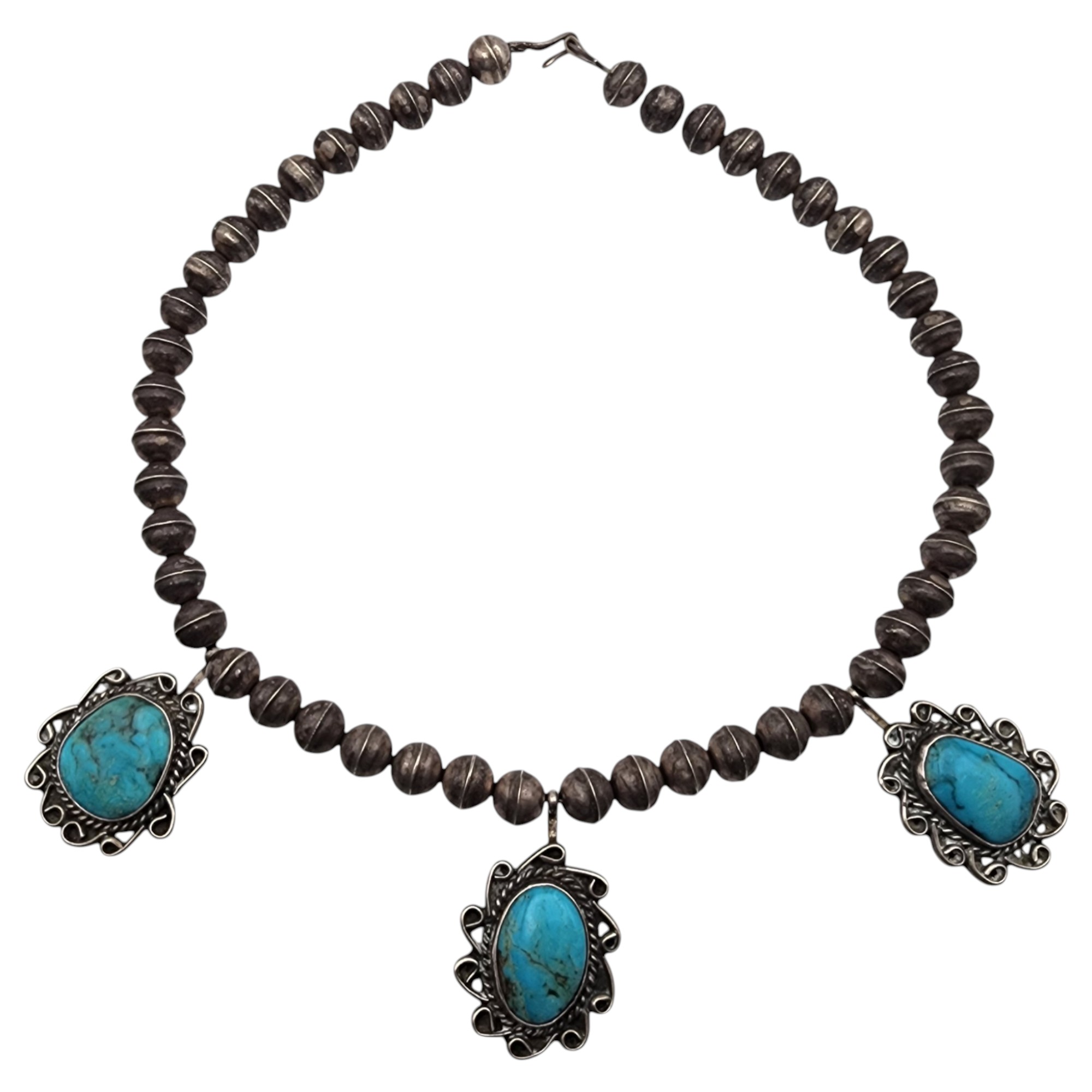 Vintage Navajo Sterling Turquoise Station Necklace, 37.3g