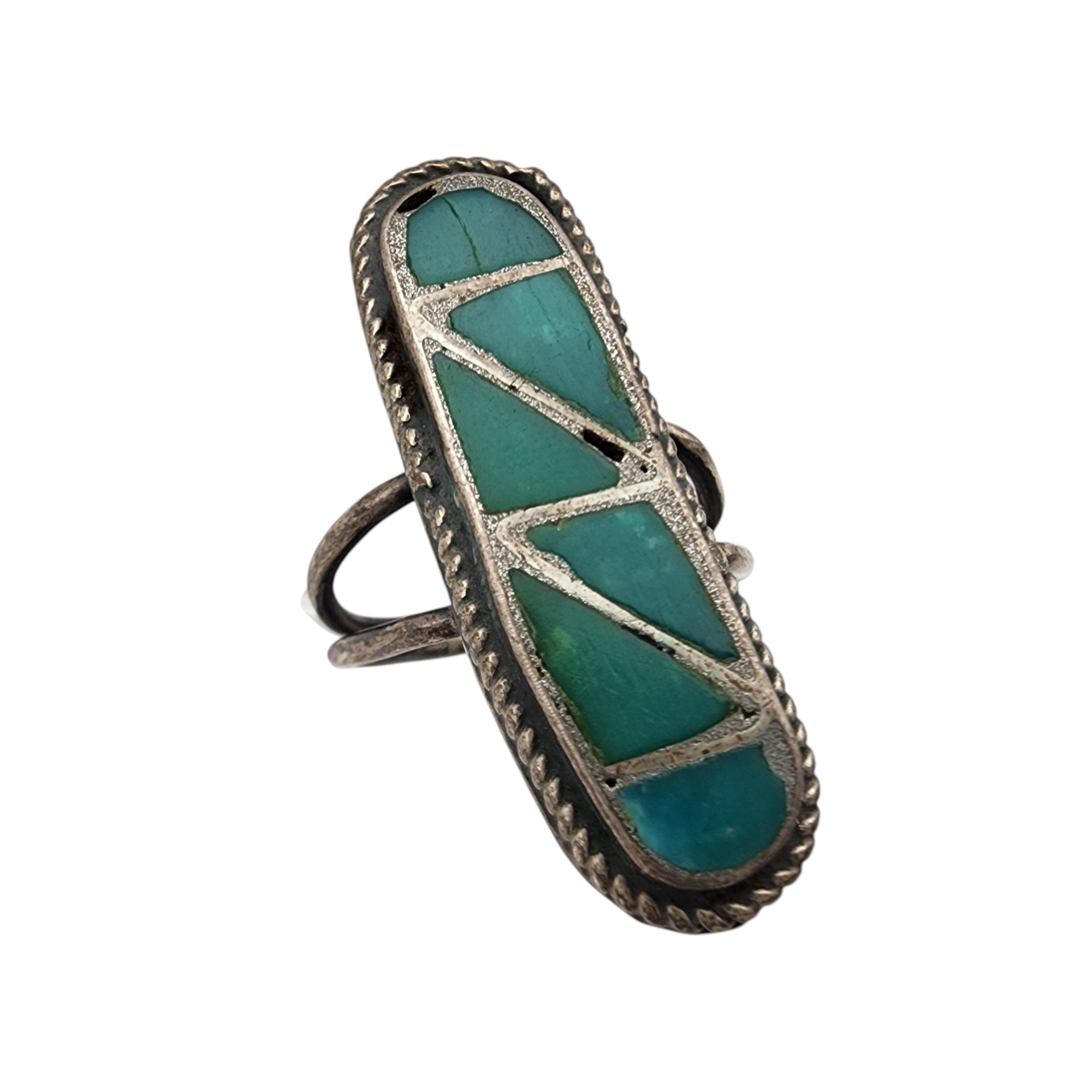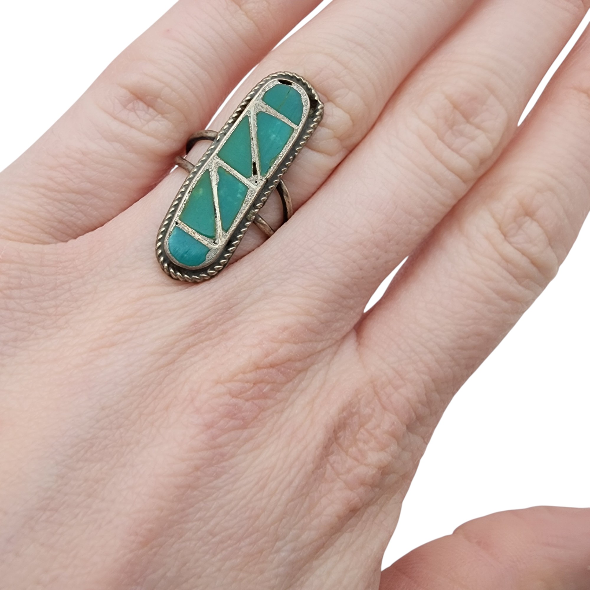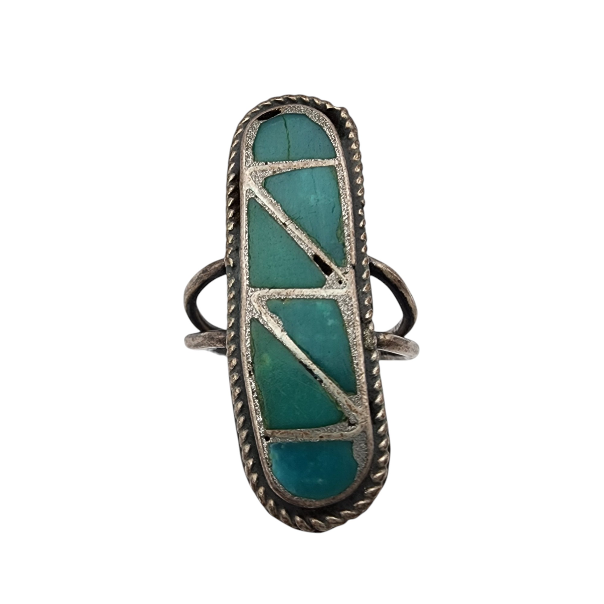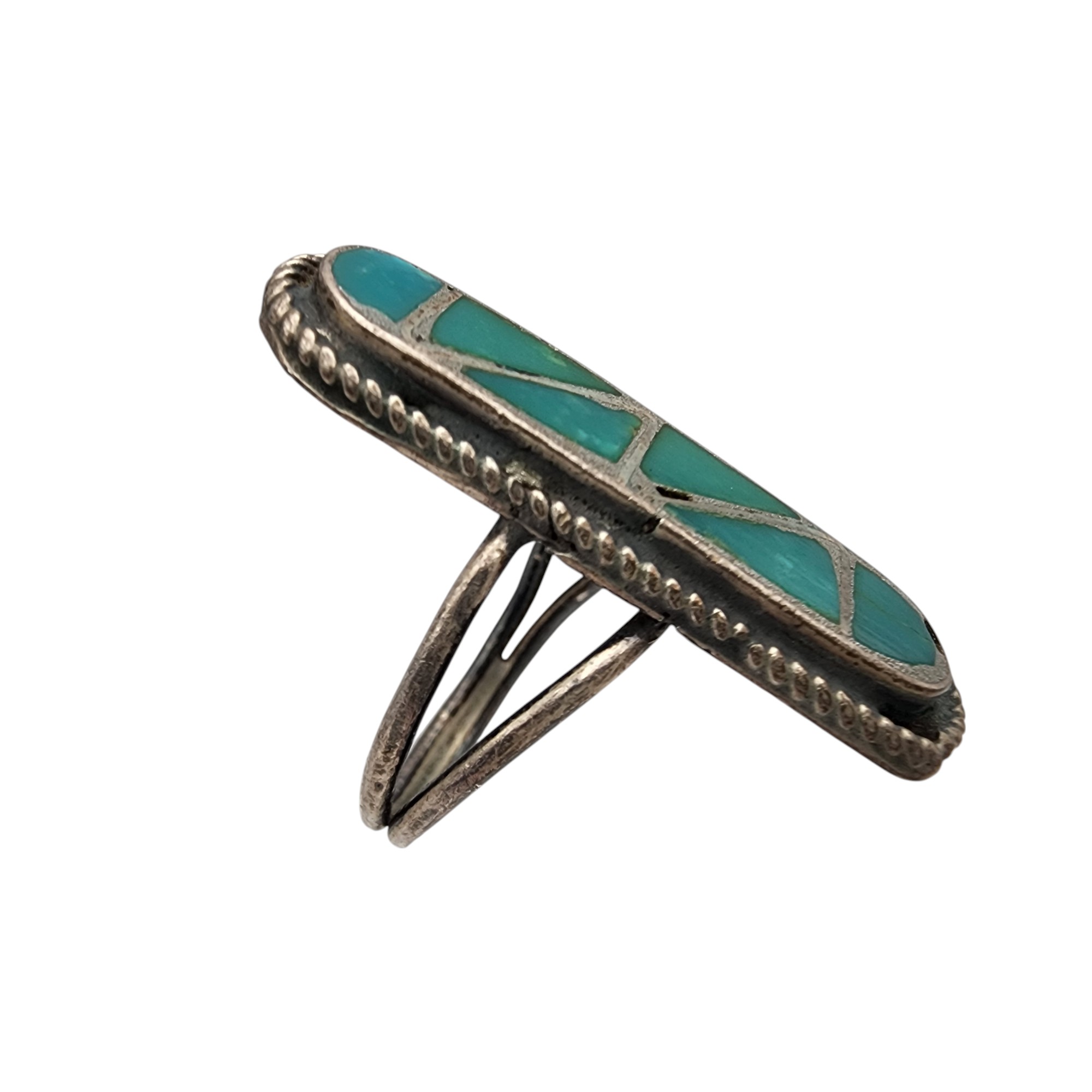 Vintage Navajo Sterling Turquoise Inlay Ring Sz 5.5, 5g