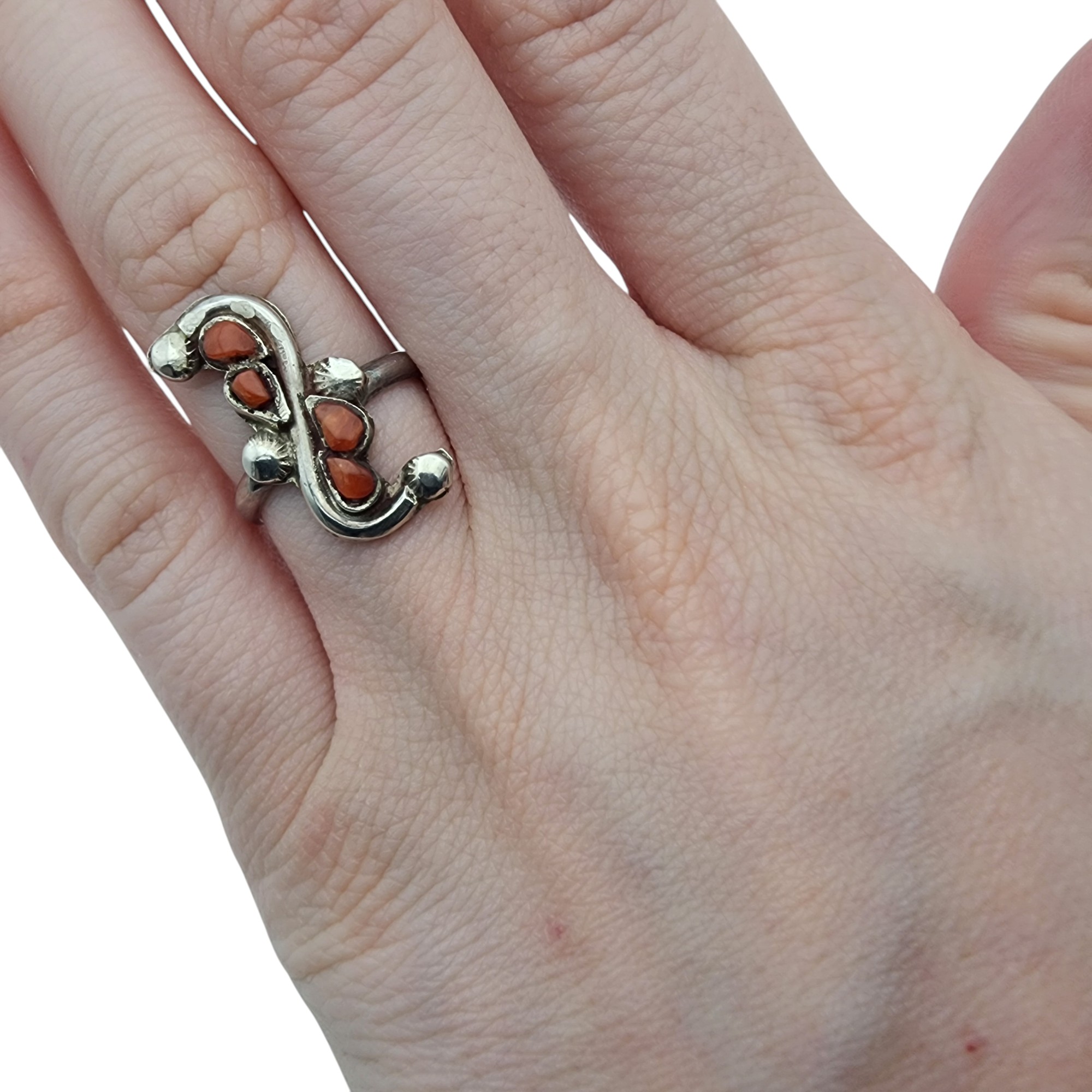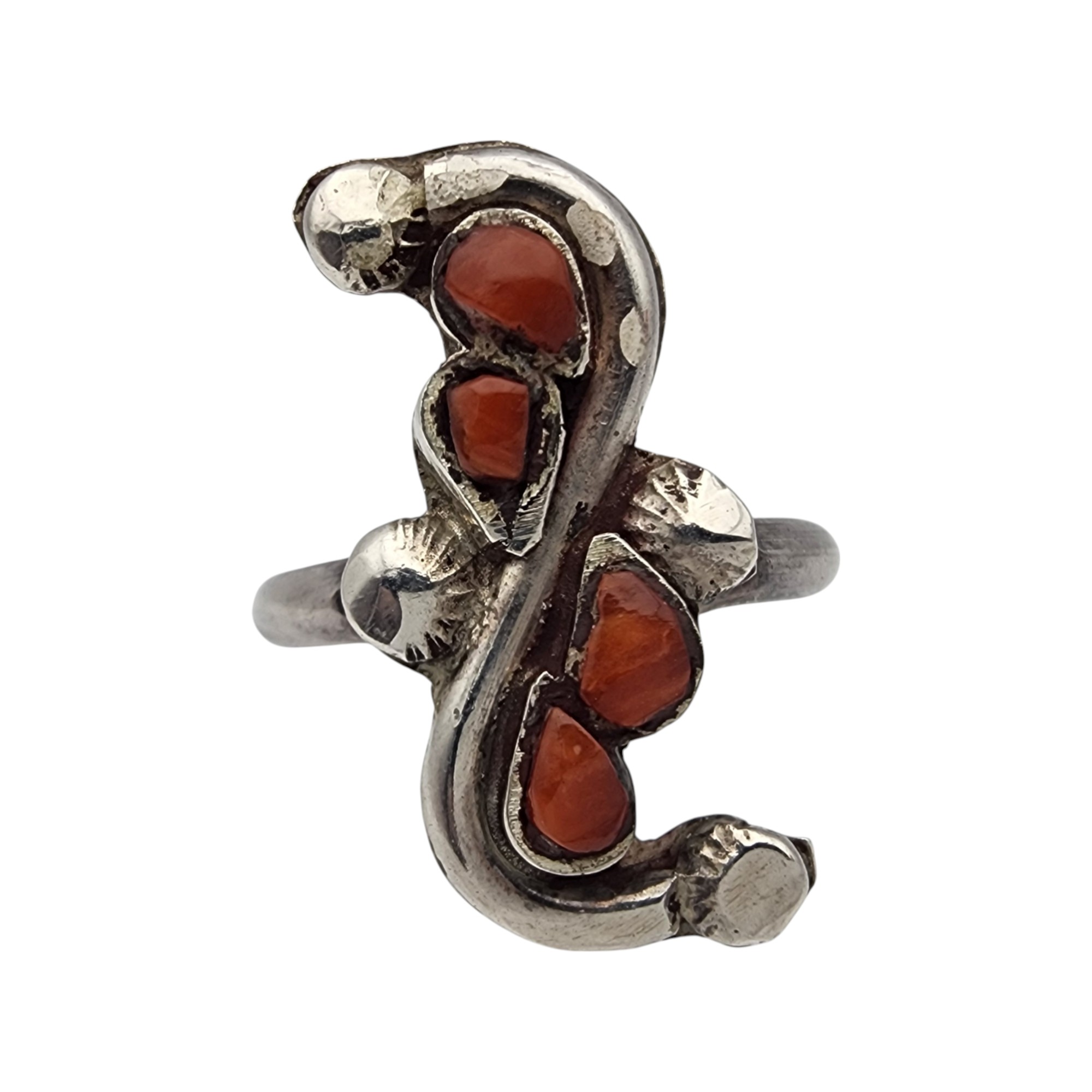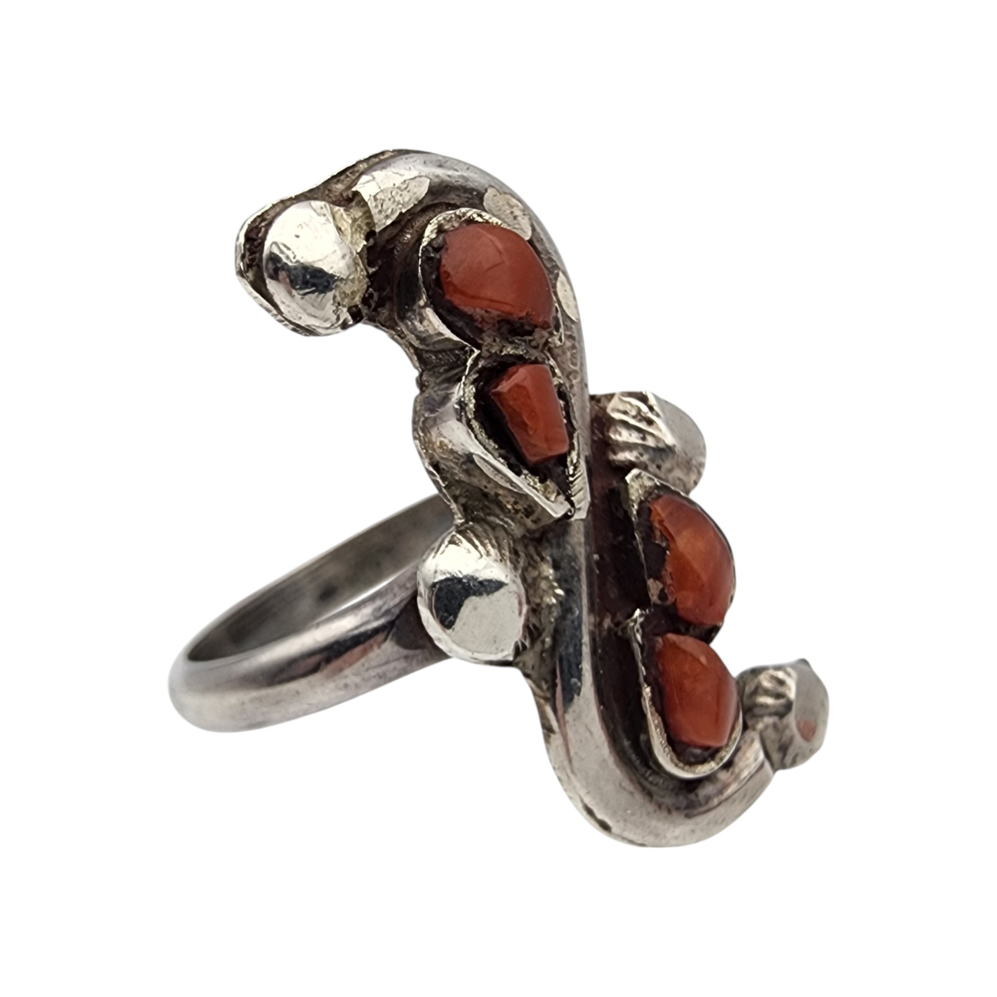 Vintage Navajo Sterling Coral Ring Sz 6.5, as is, 3.4g
