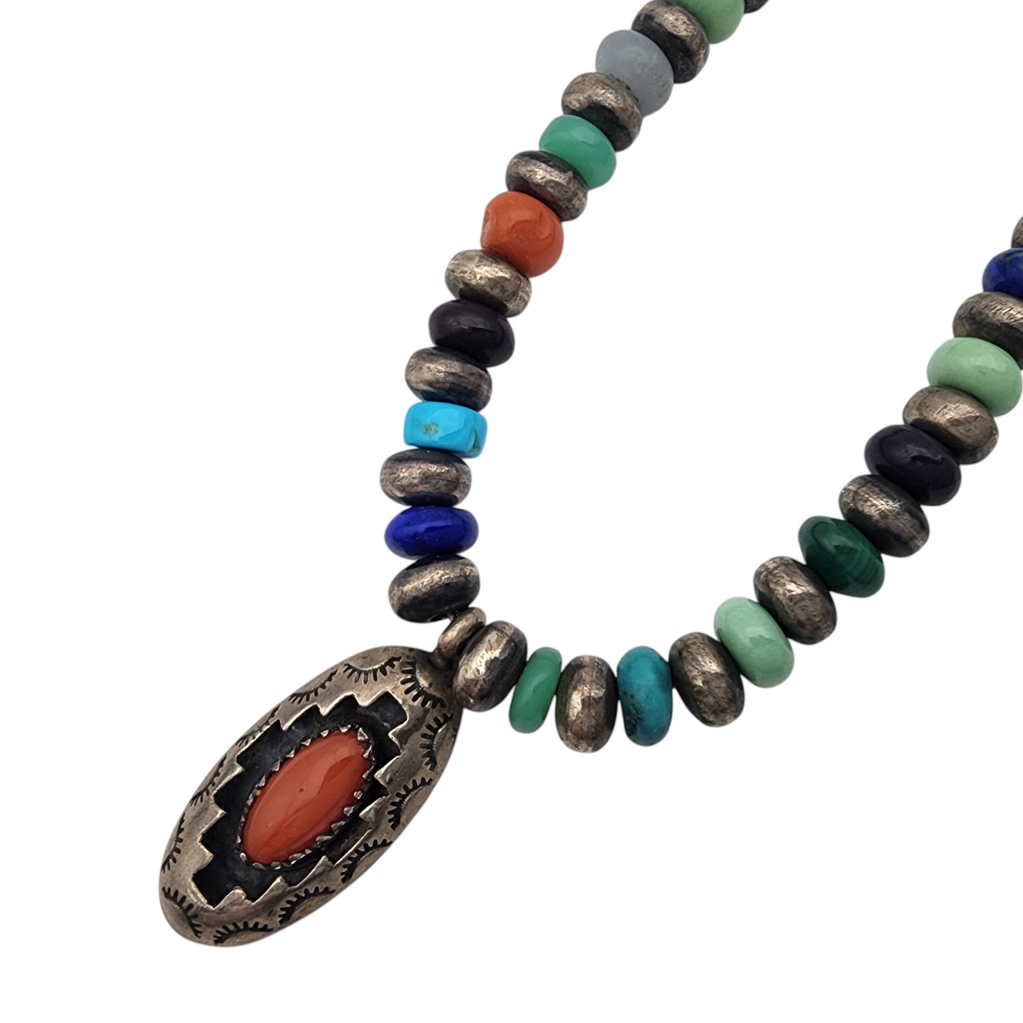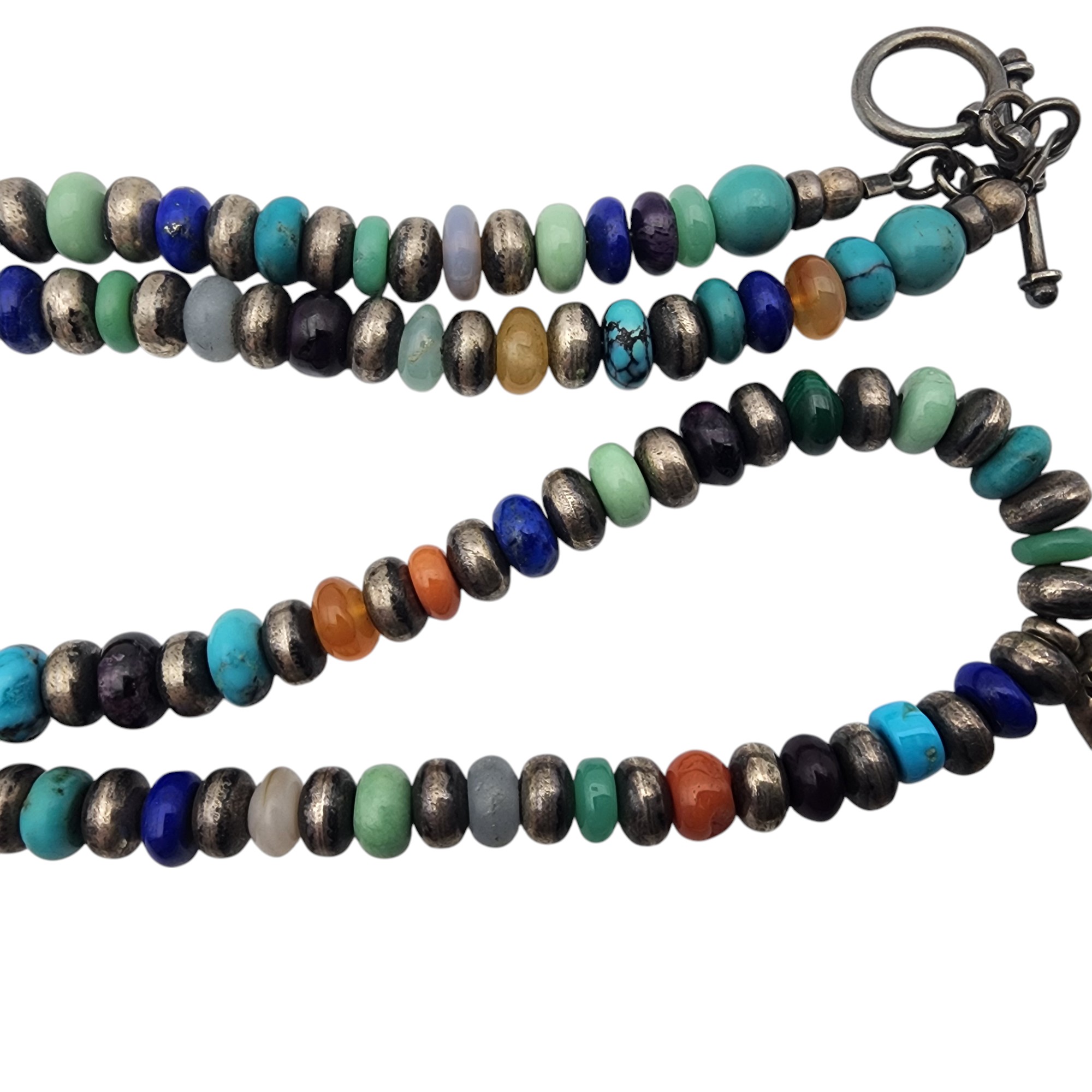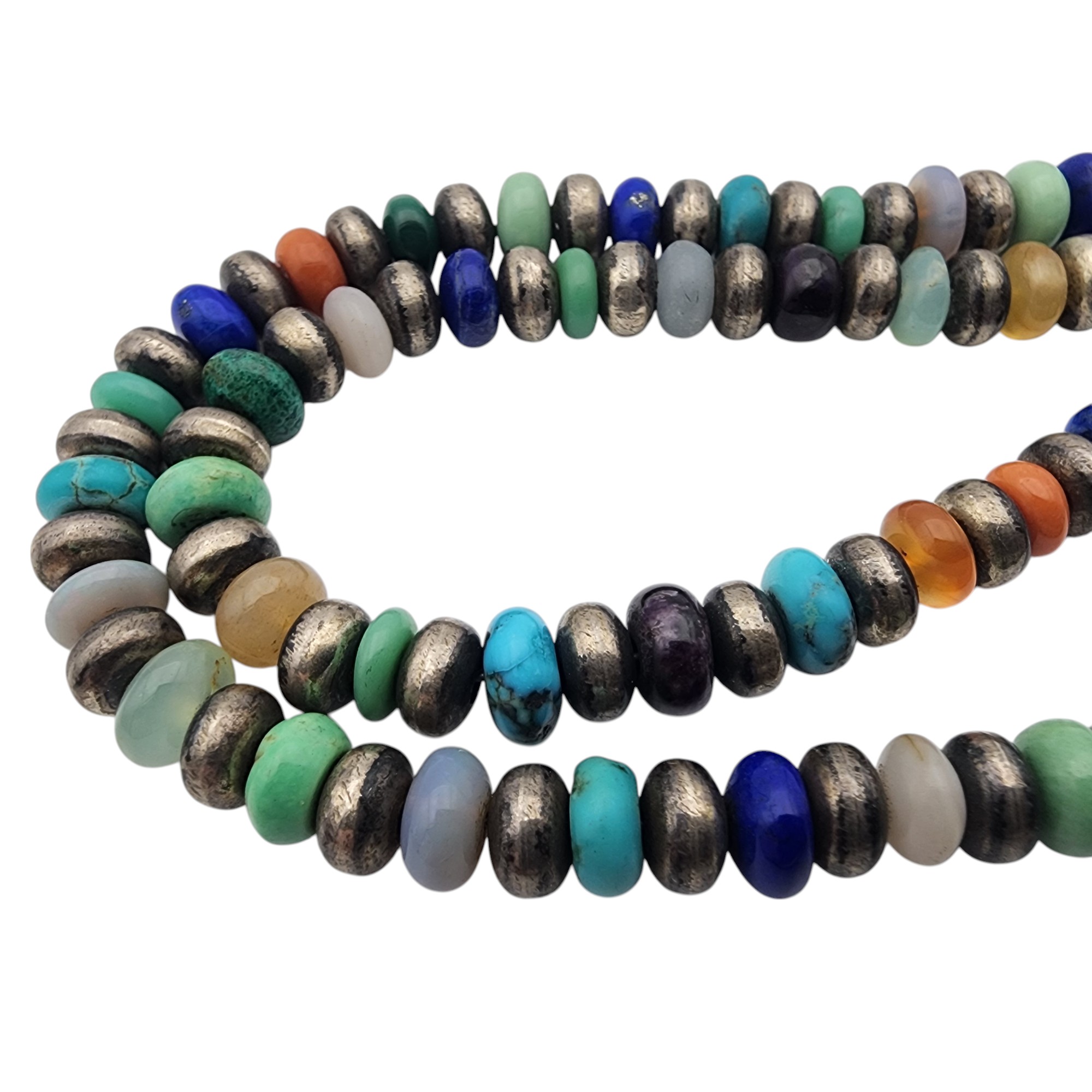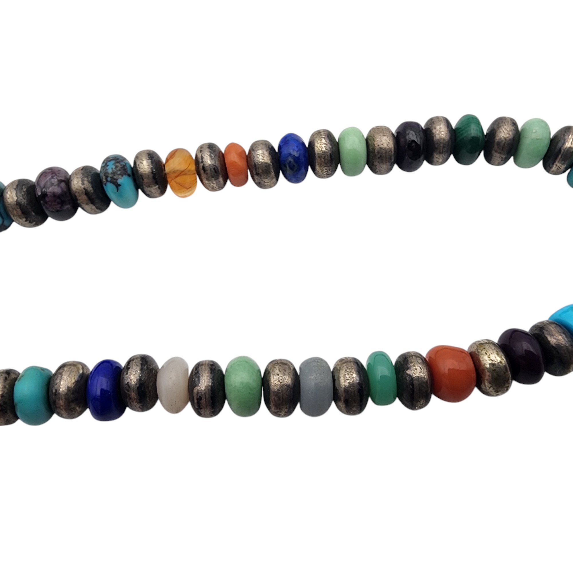 Signed Navajo (or Southwestern) Sterling Multistone Bead Necklace, 30.6g