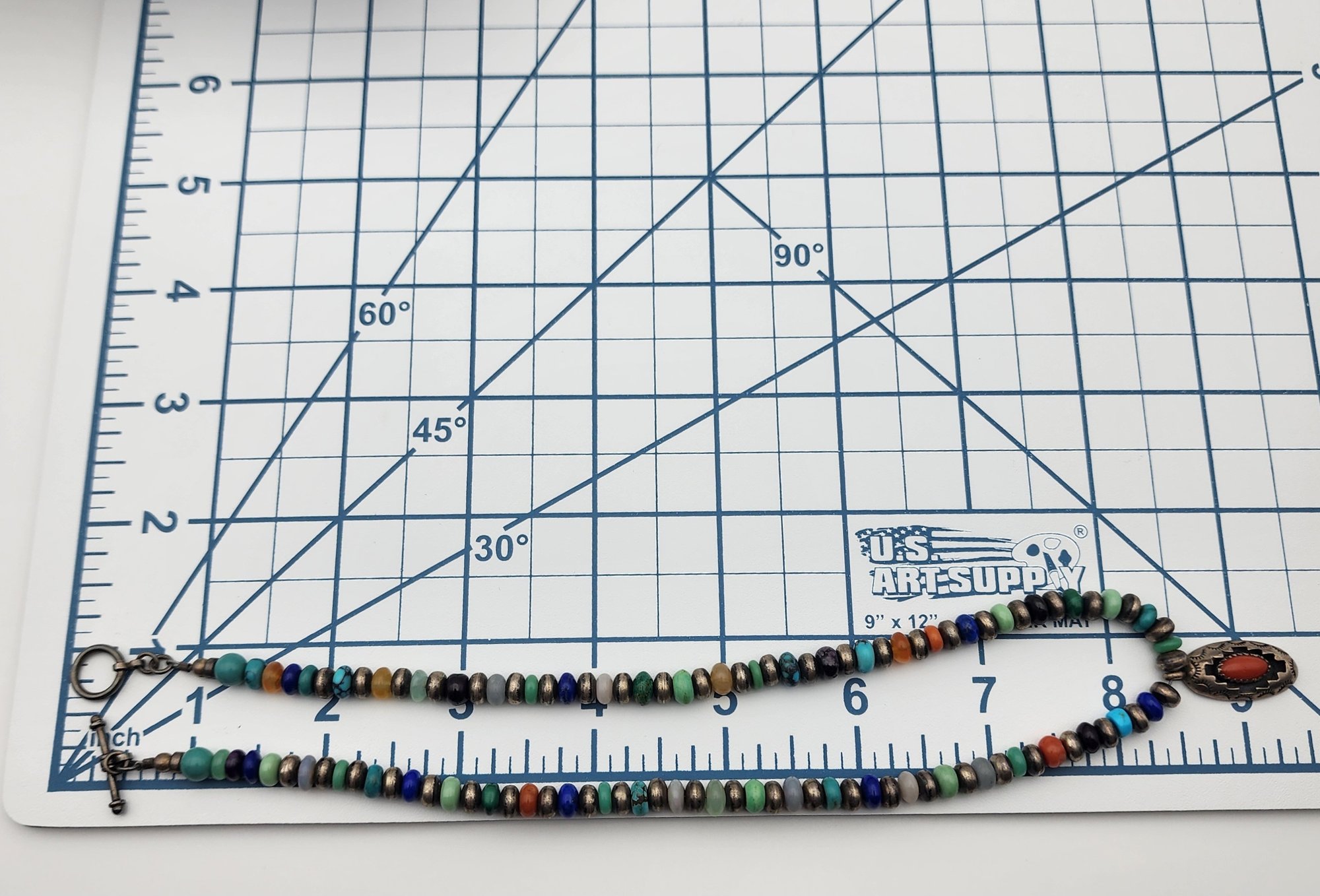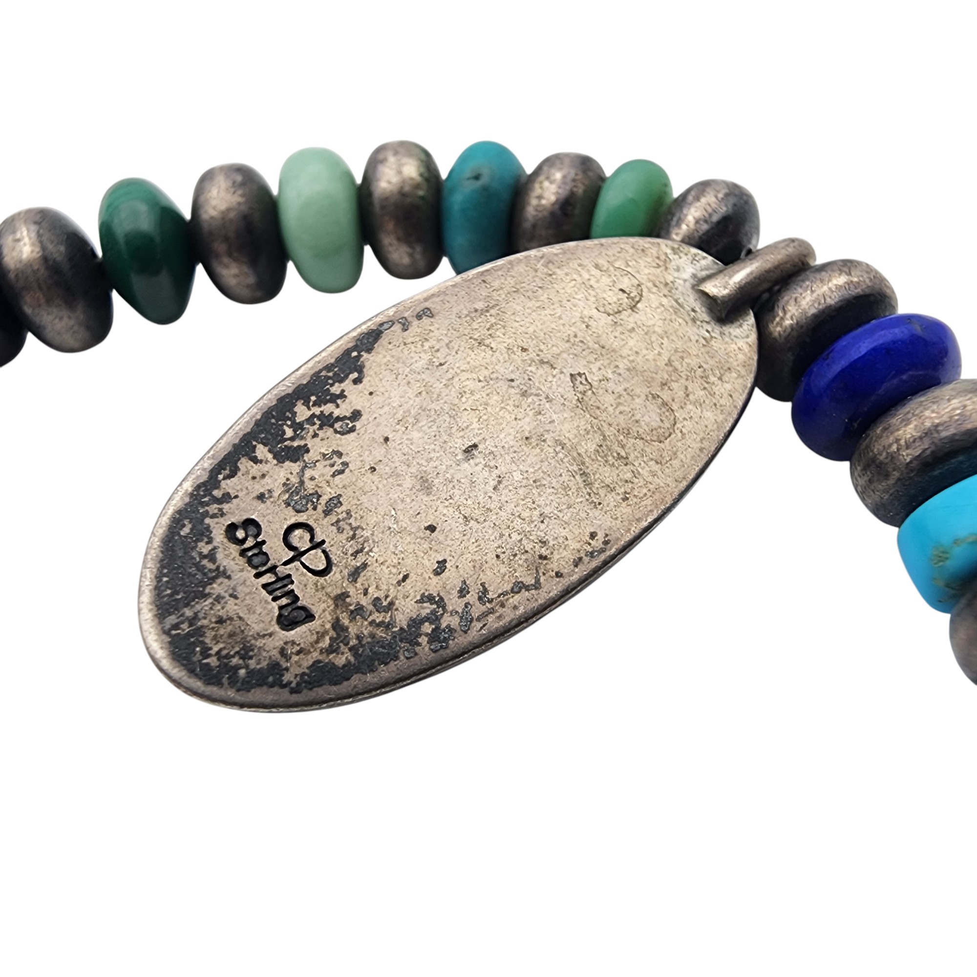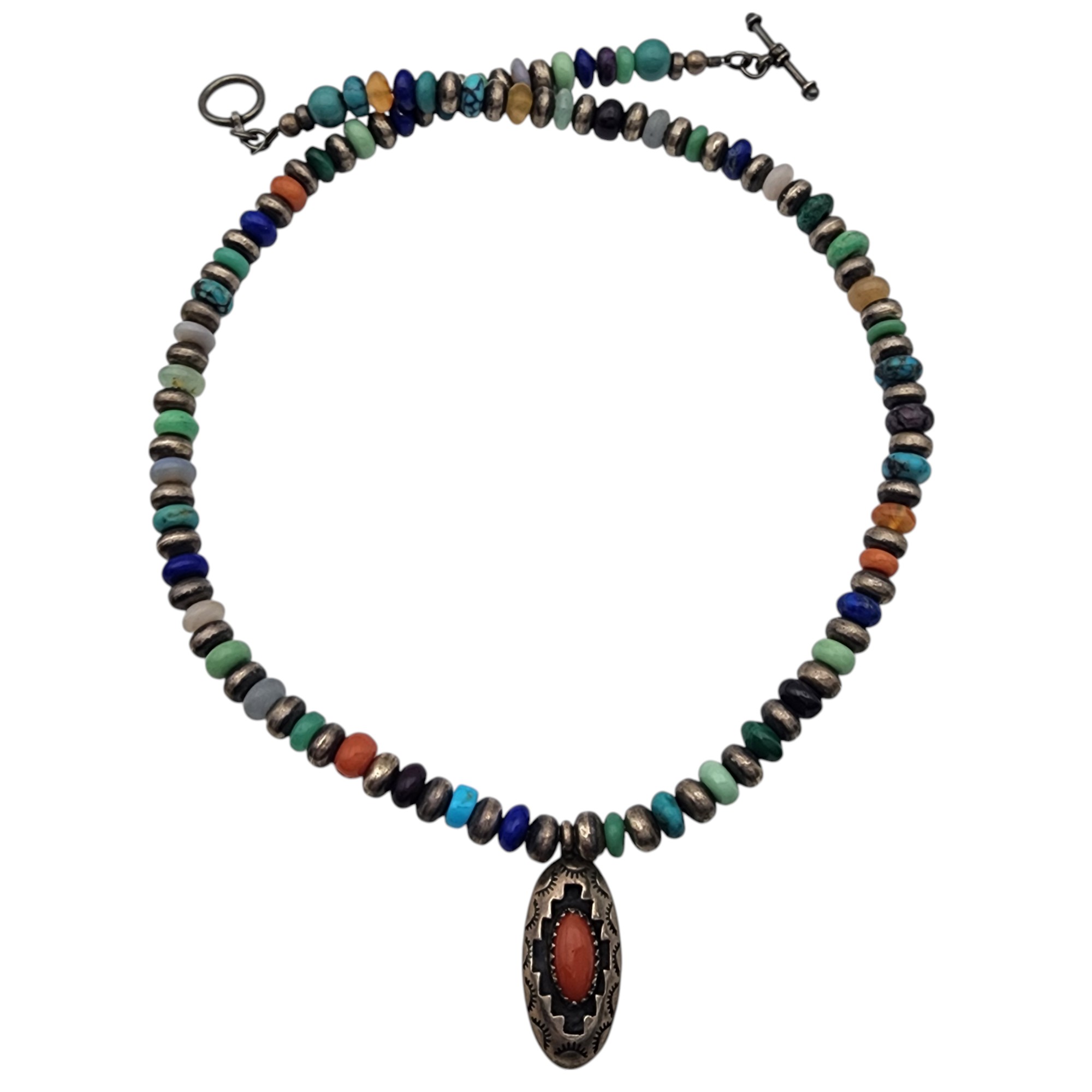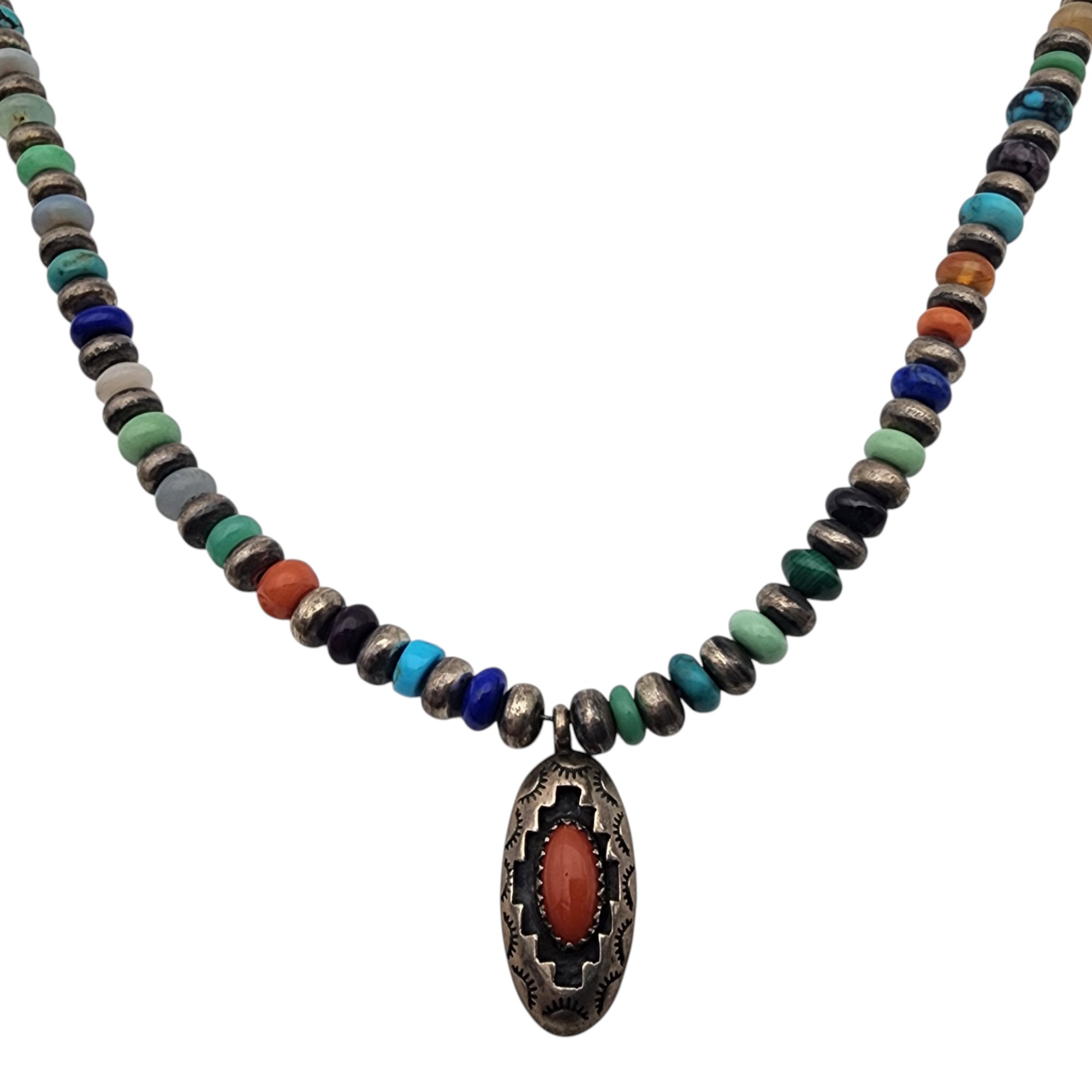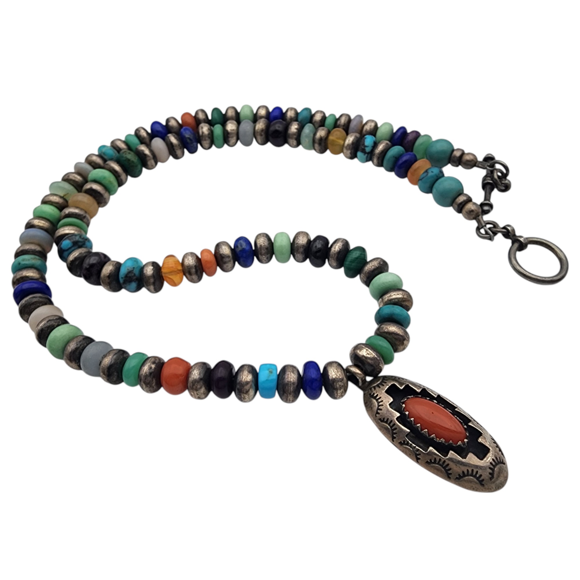 Signed Navajo (or Southwestern) Sterling Multistone Bead Necklace, 30.6g
