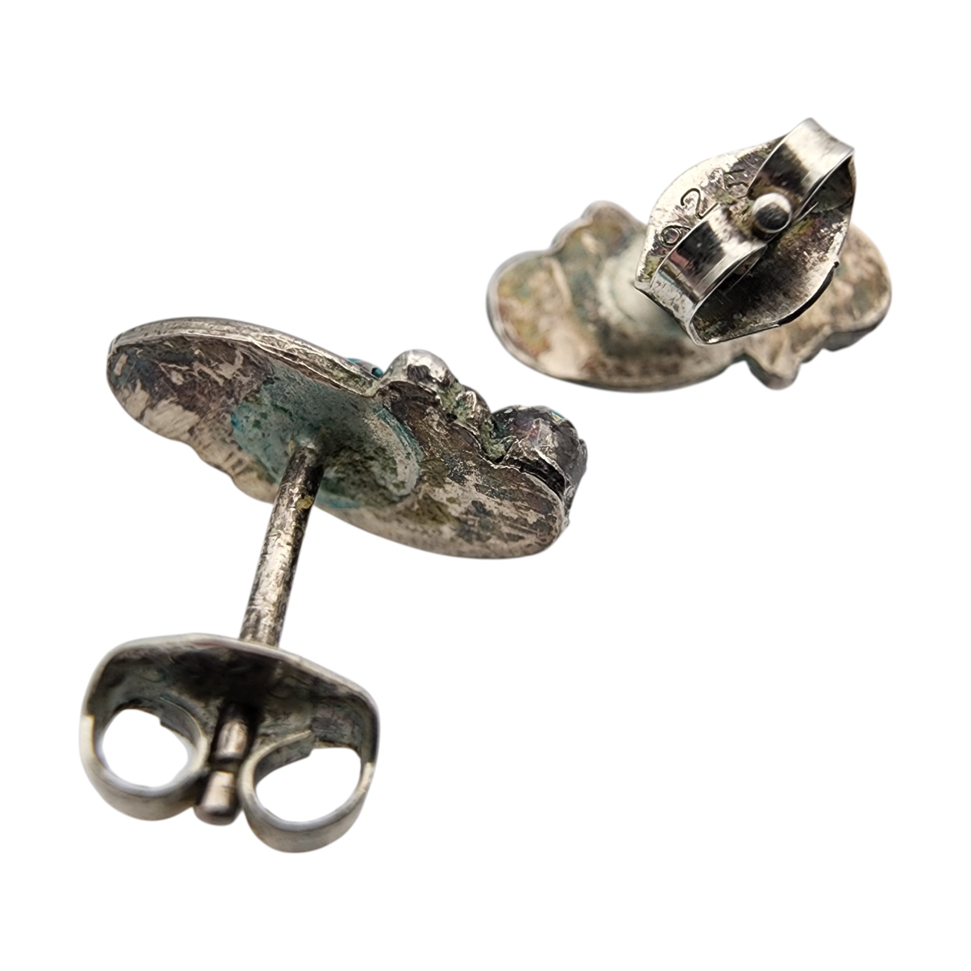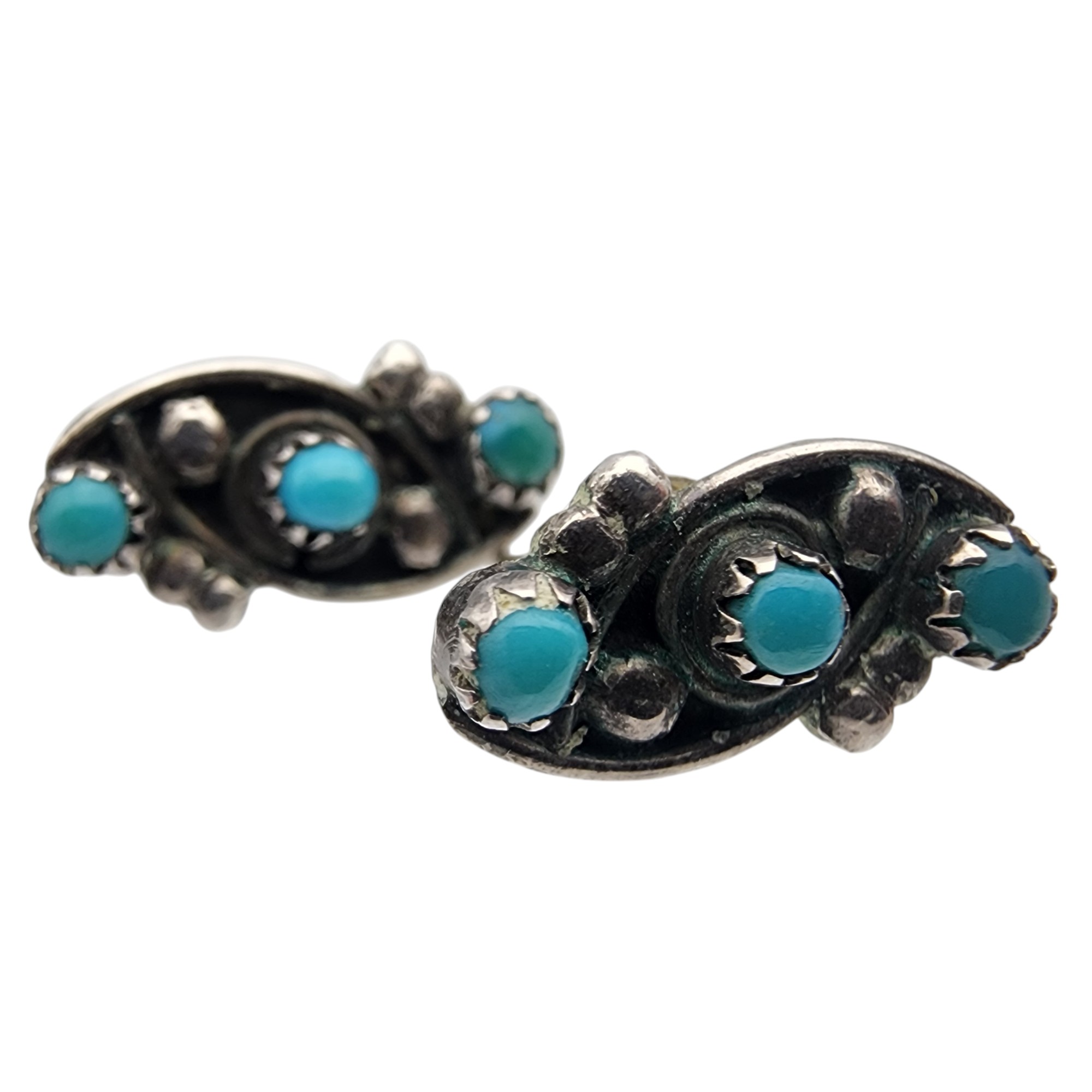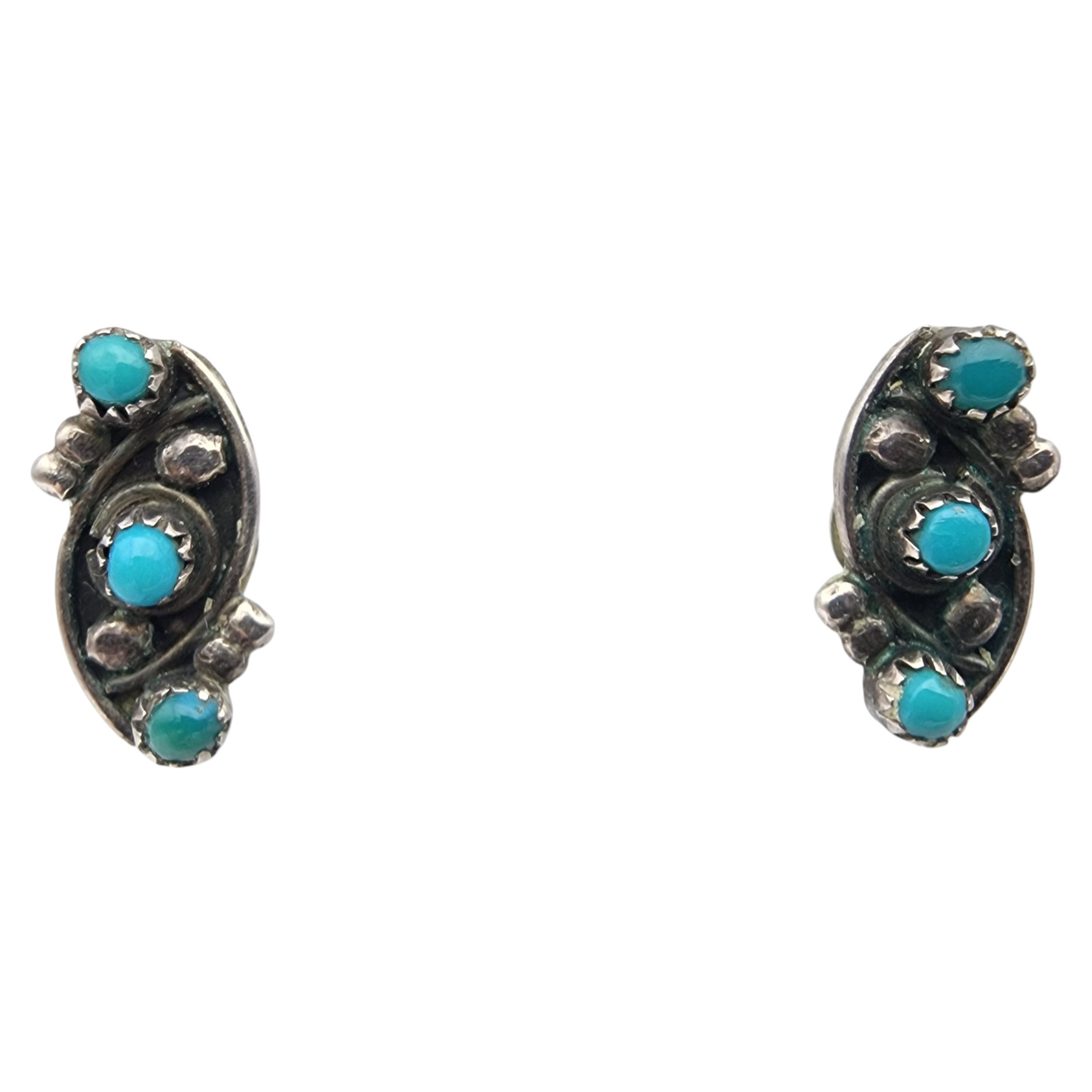 Vintage Zuni Sterling Turquoise Snake Eye Earrings, 1.4g