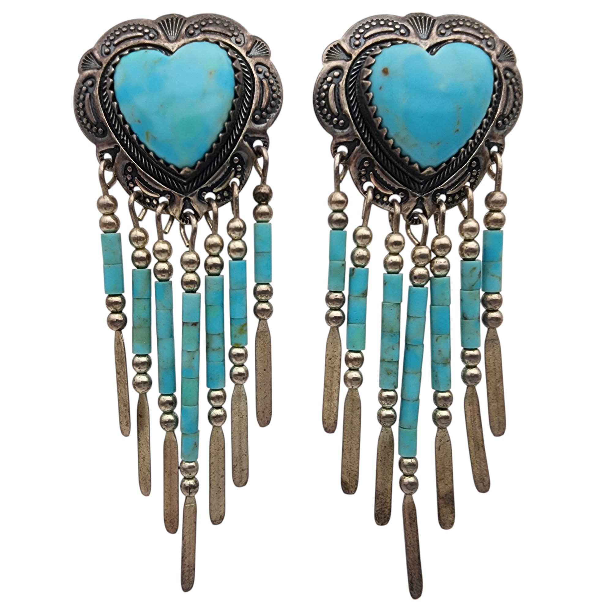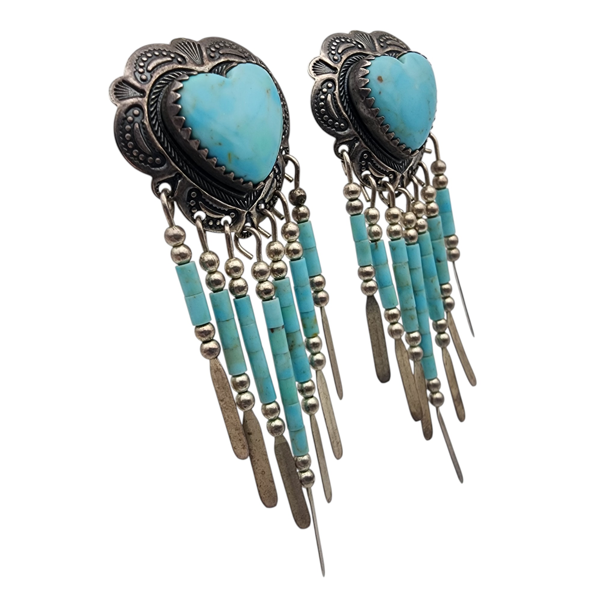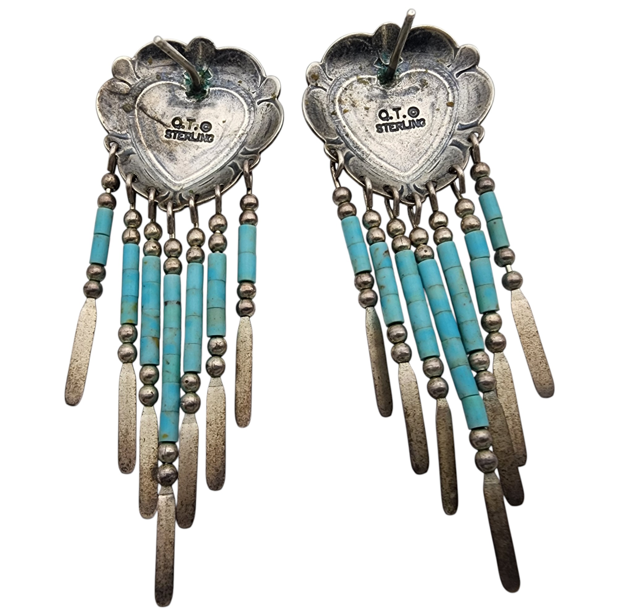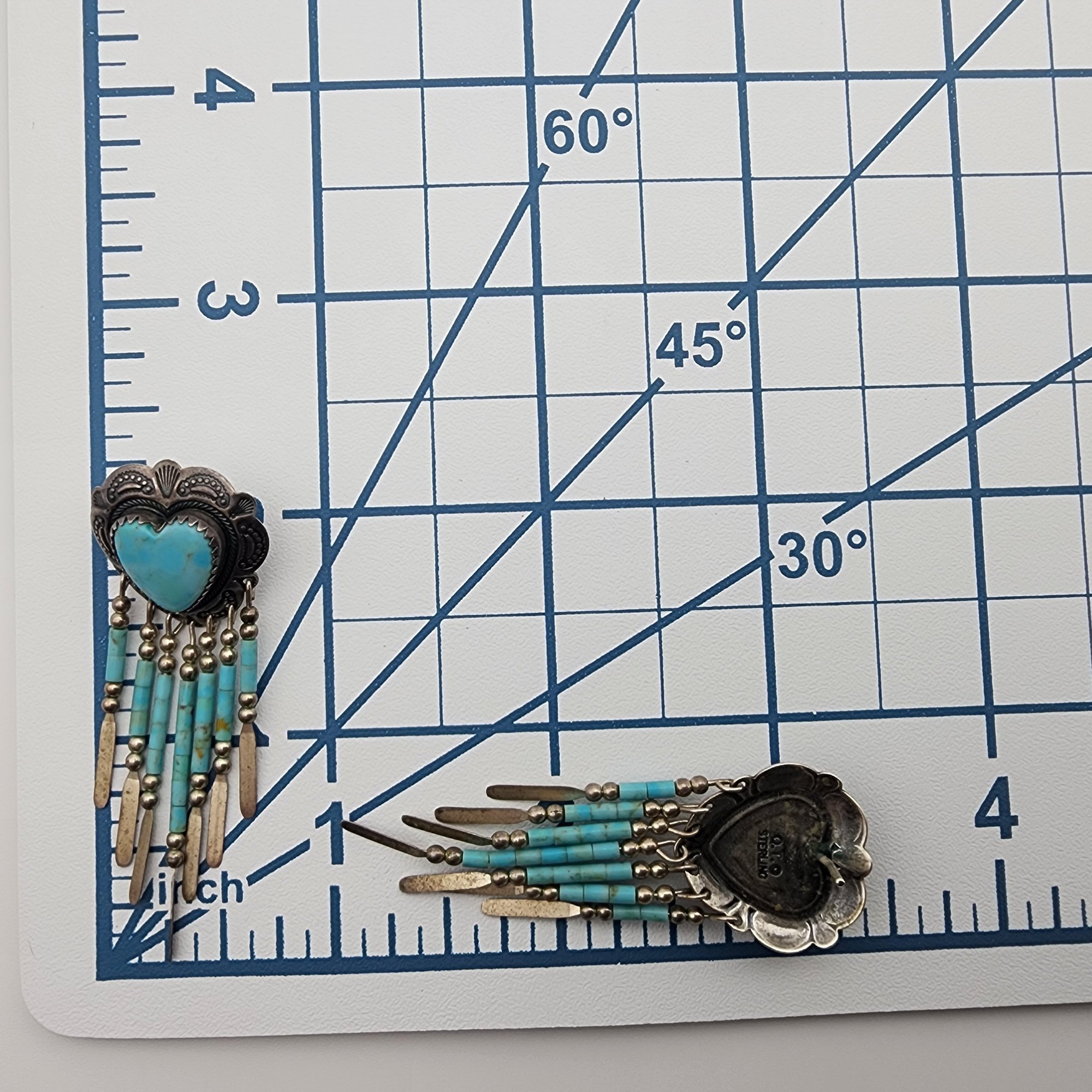 Quoc Trading Sterling Turquoise Heart Fringe Dangle Earrings, 8.6g