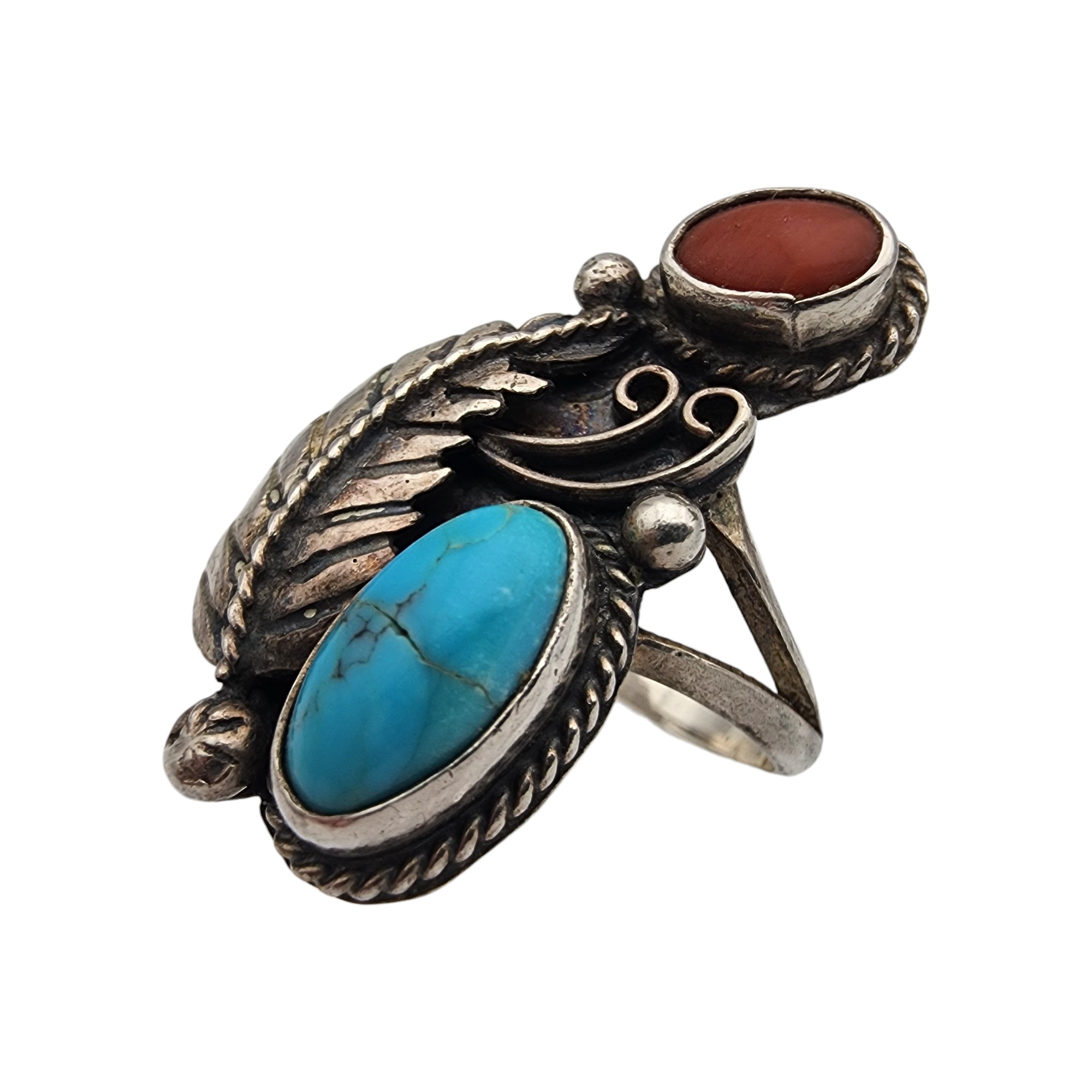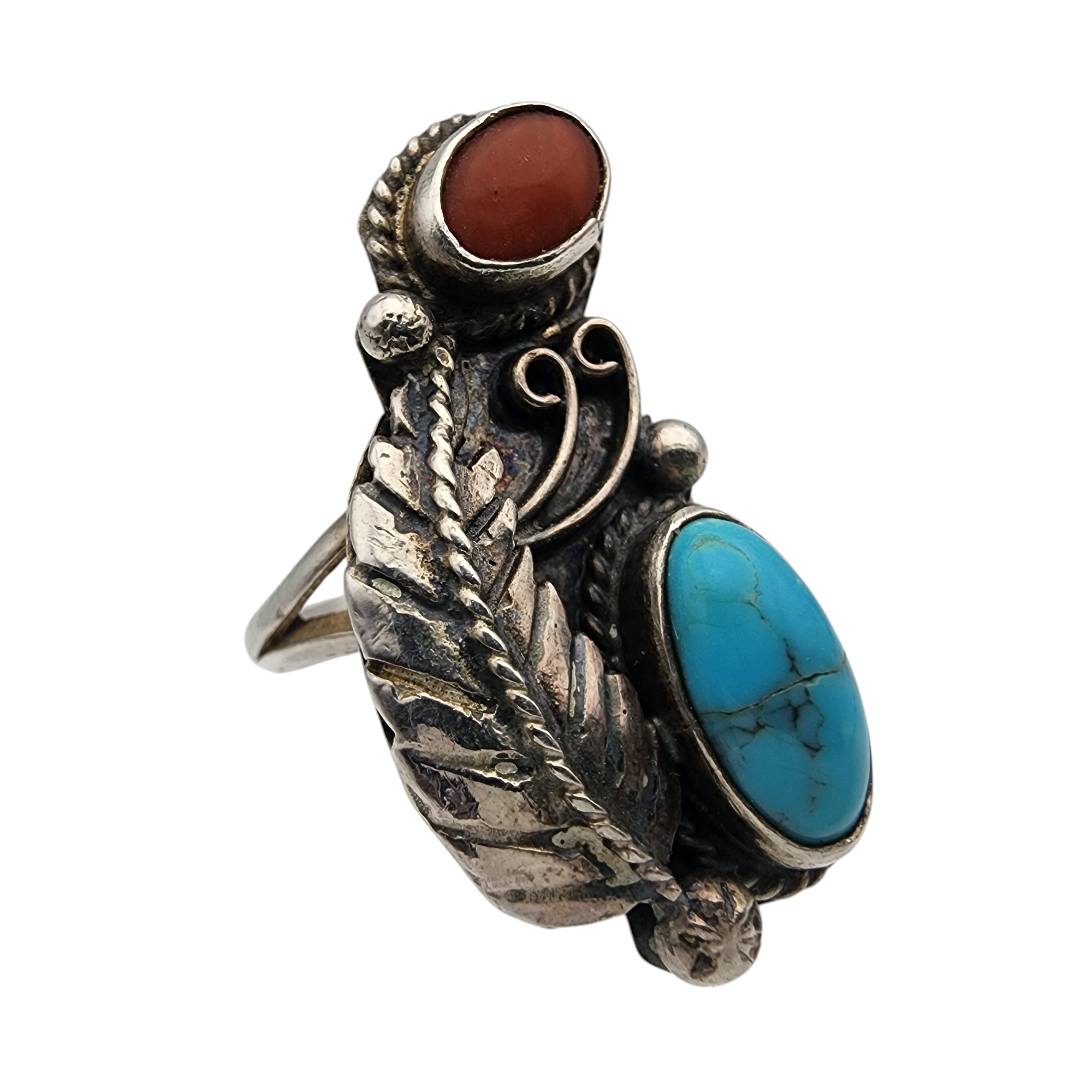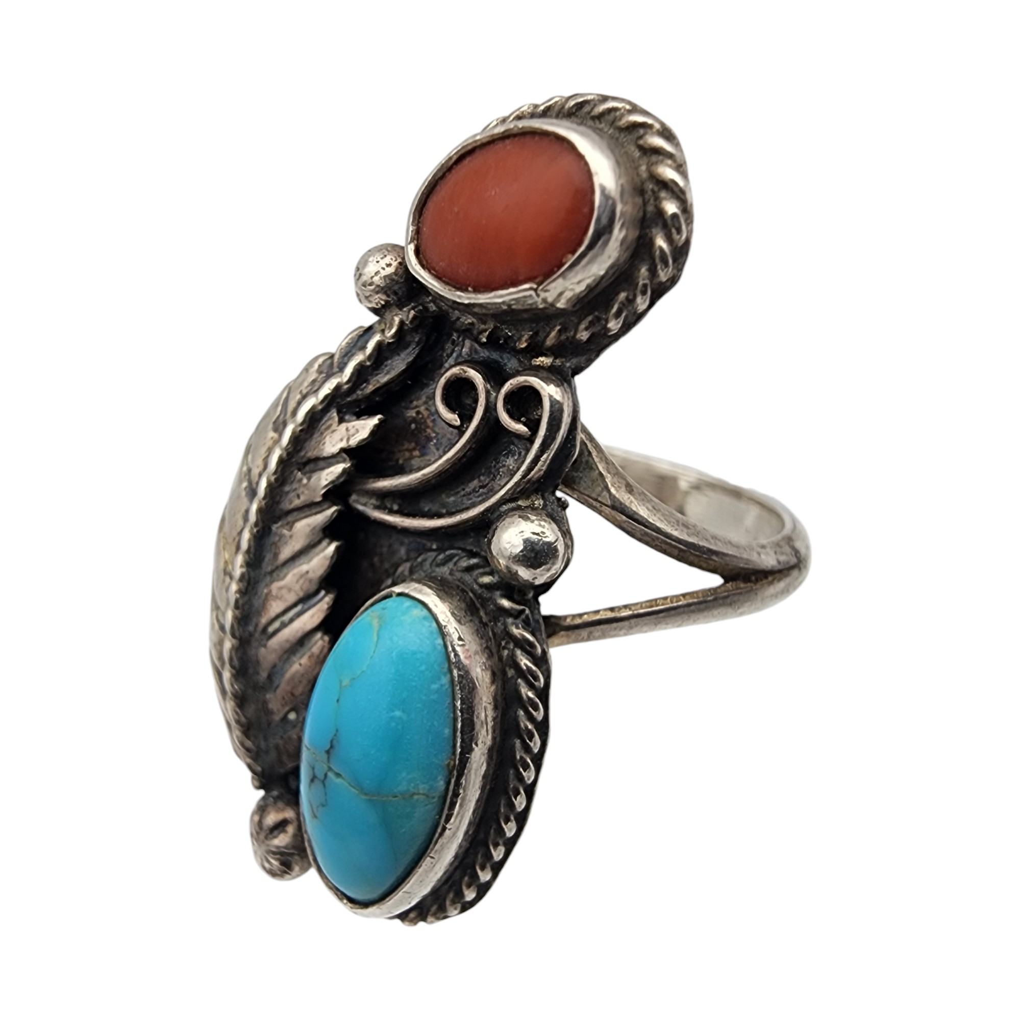 Vintage Navajo Sterling Turquoise Coral Ring Sz 5.5