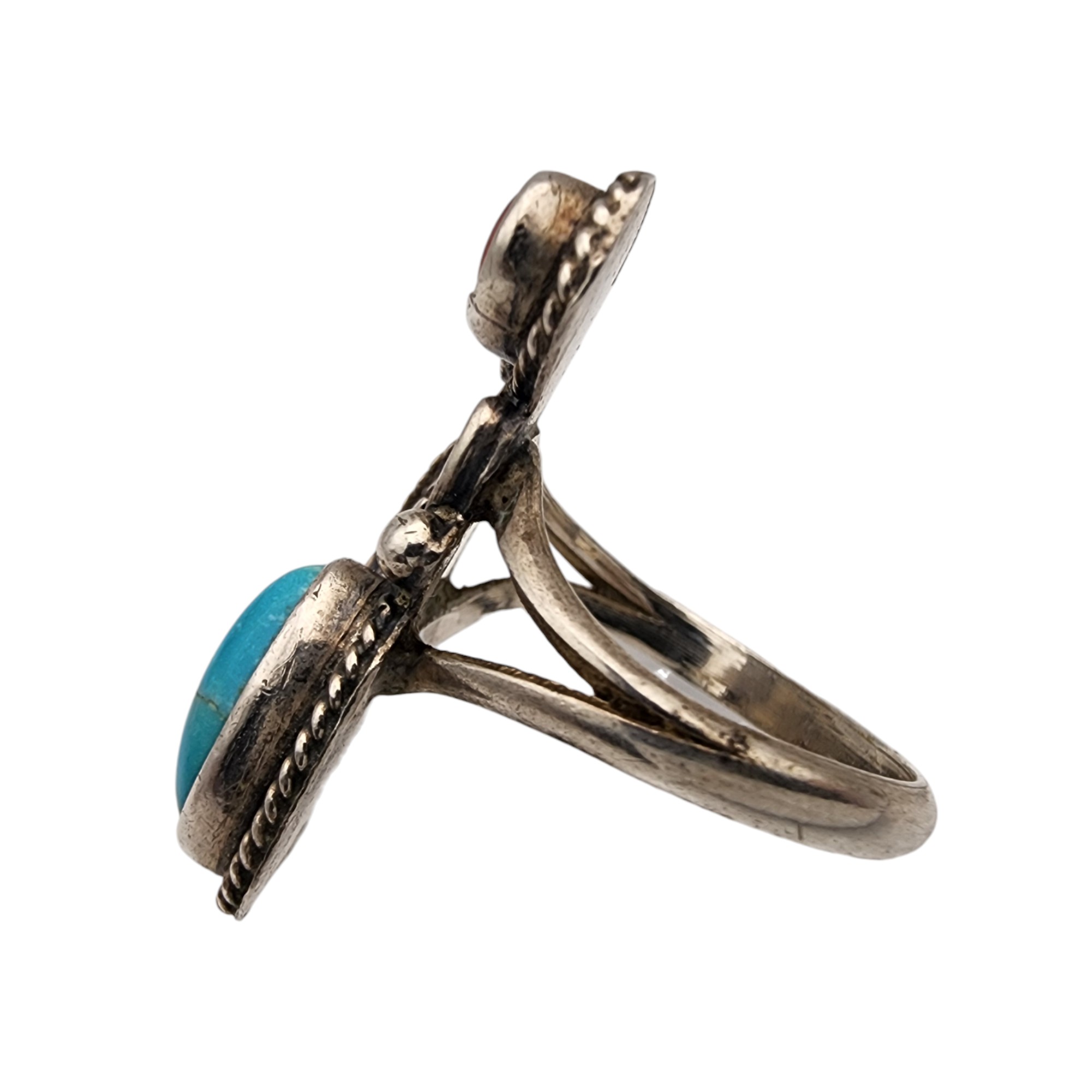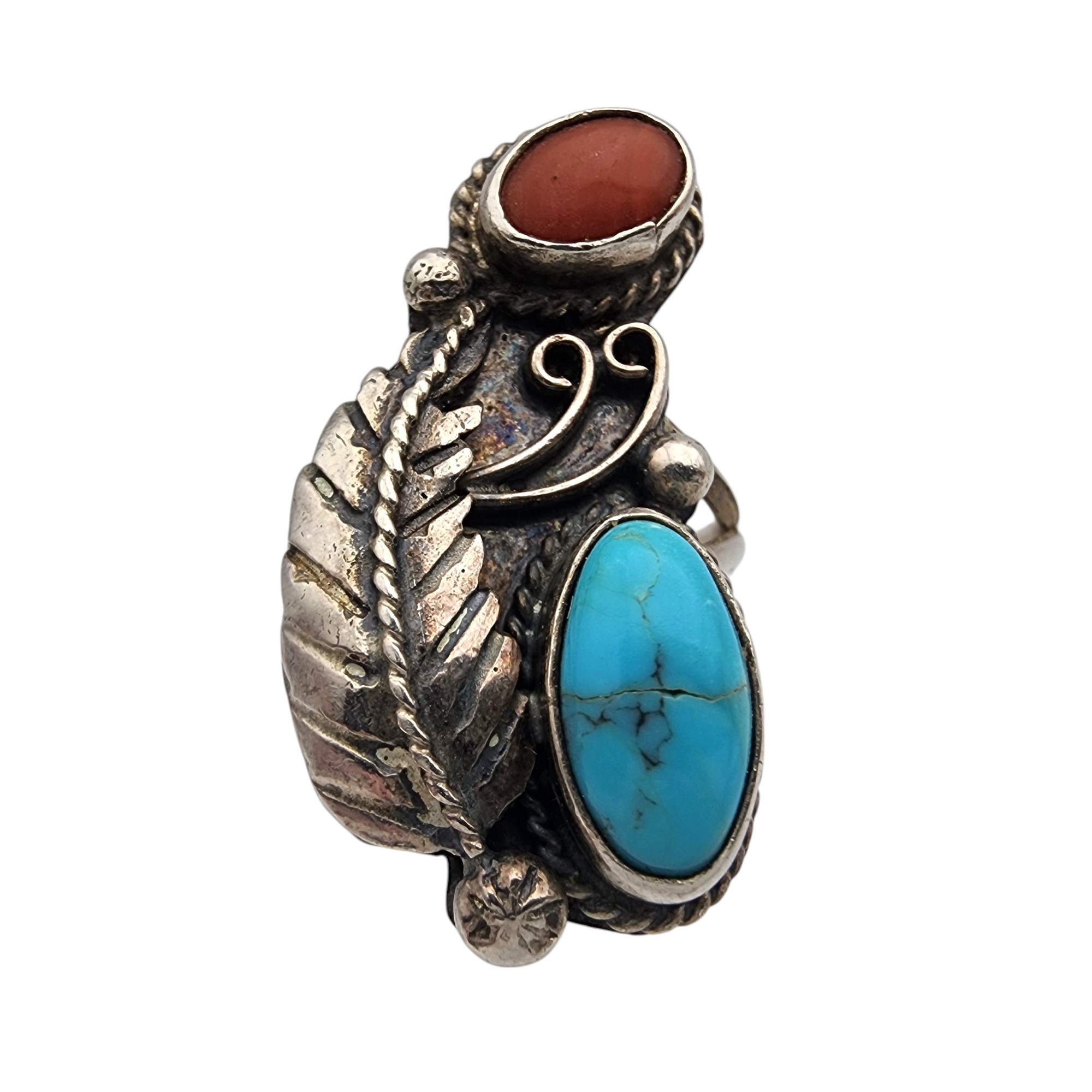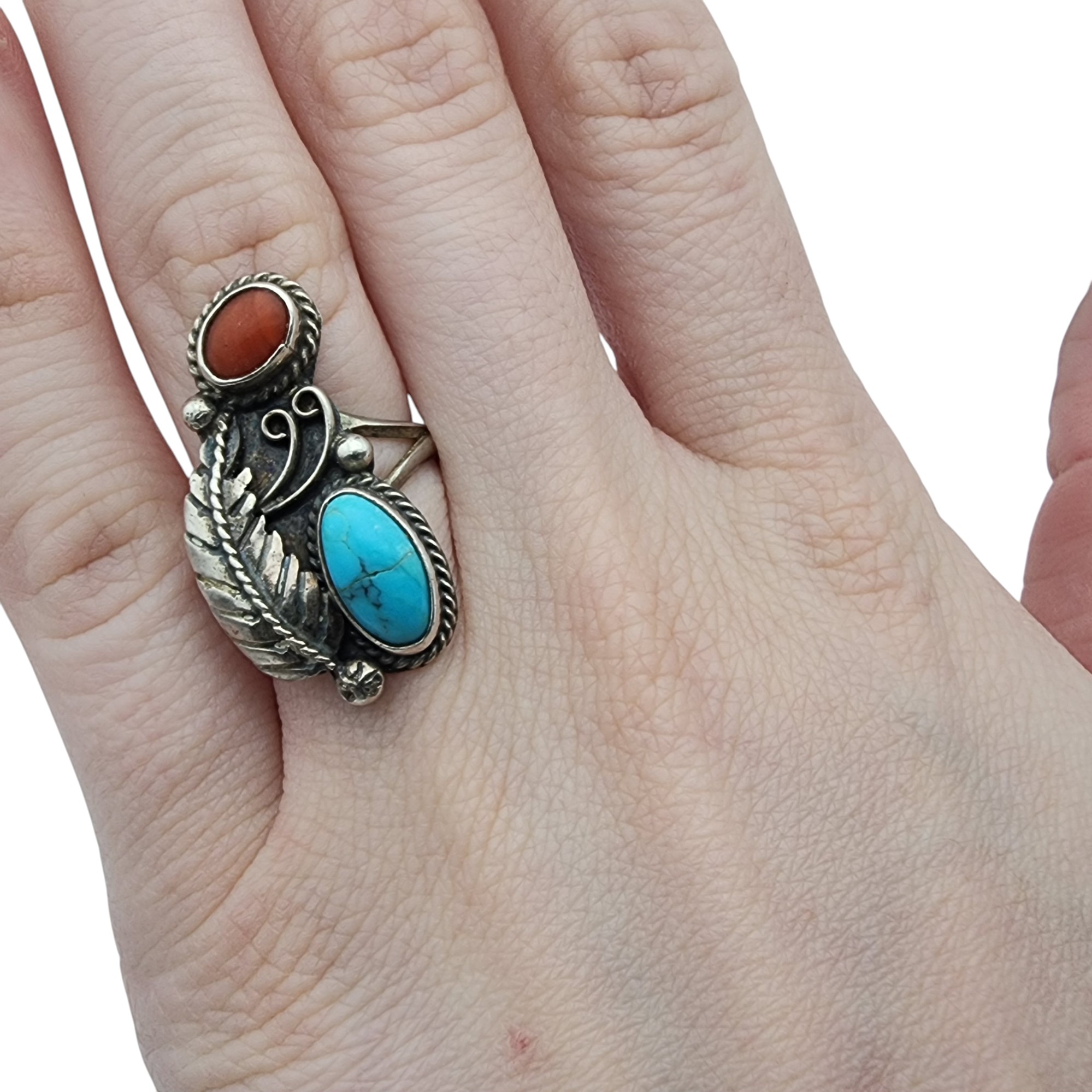 Vintage Navajo Sterling Turquoise Coral Ring Sz 5.5