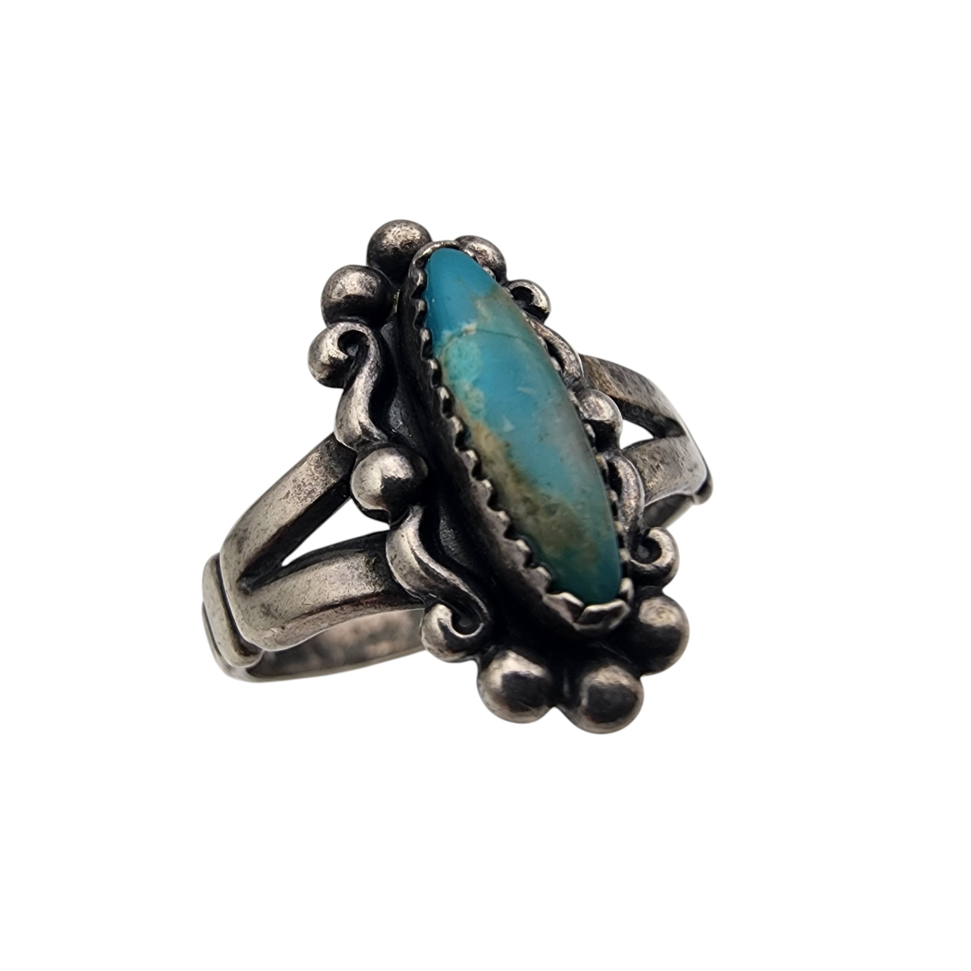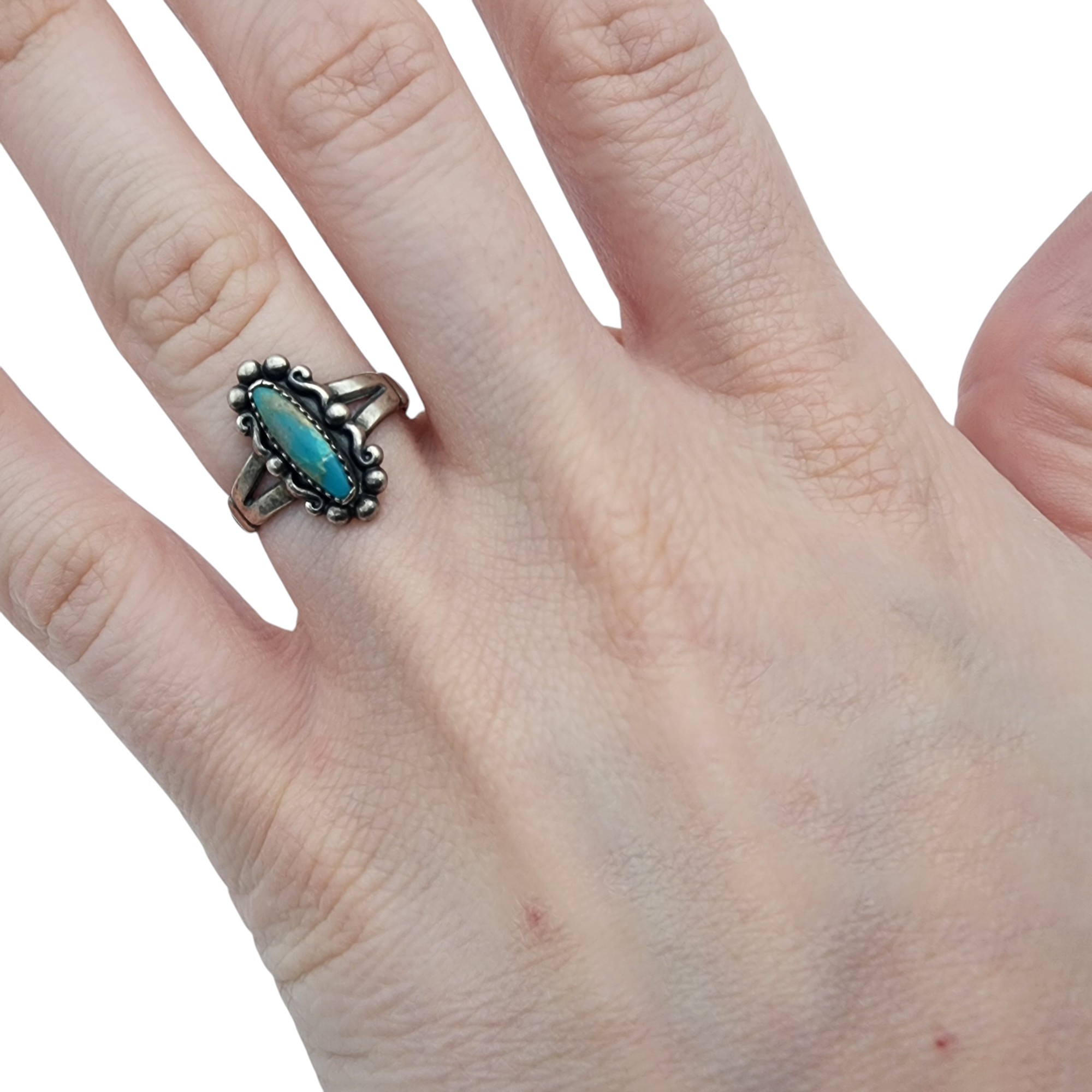 Bell Trading Post Sterling Turquoise Ring Sz 6, 2.5g, imperfections of turquoise