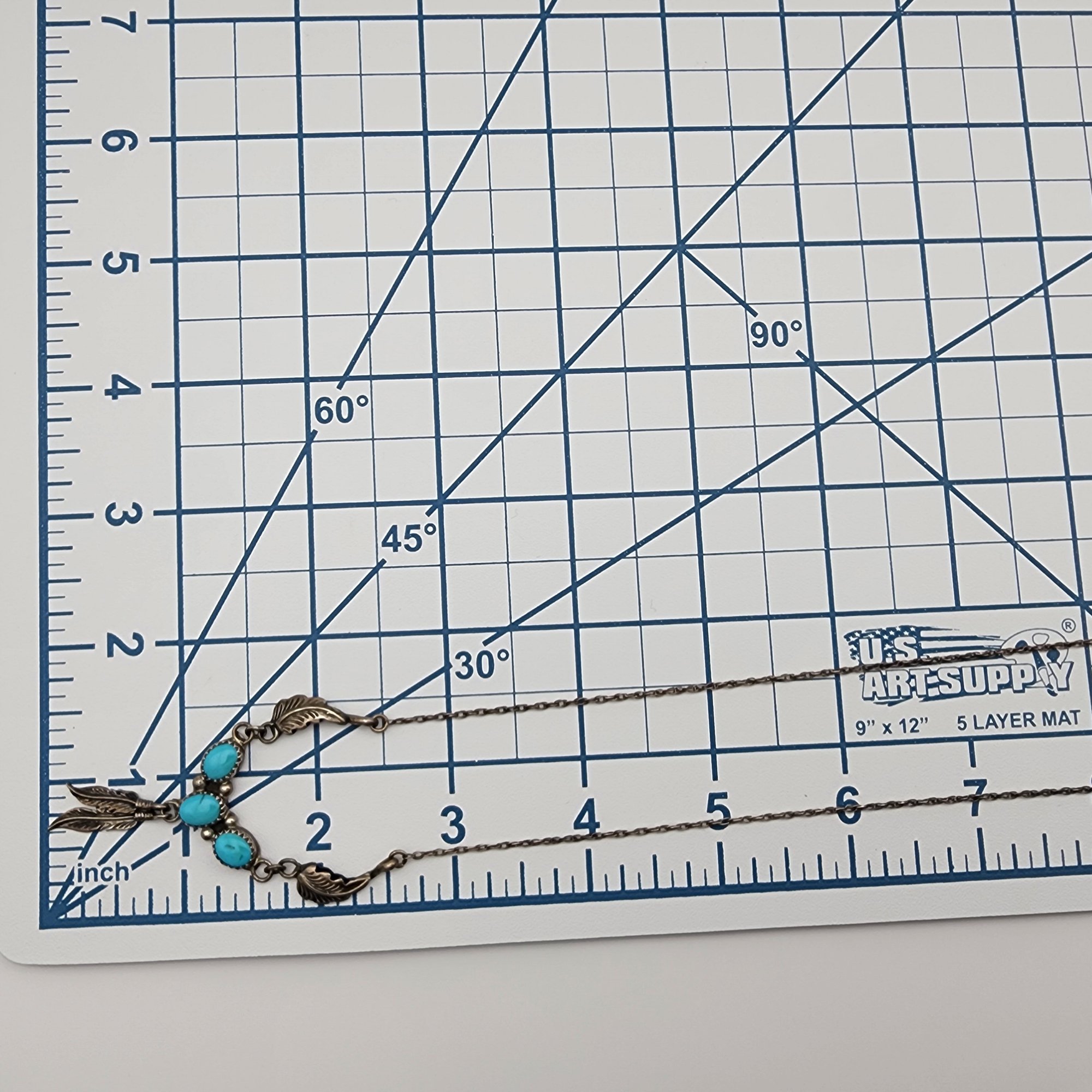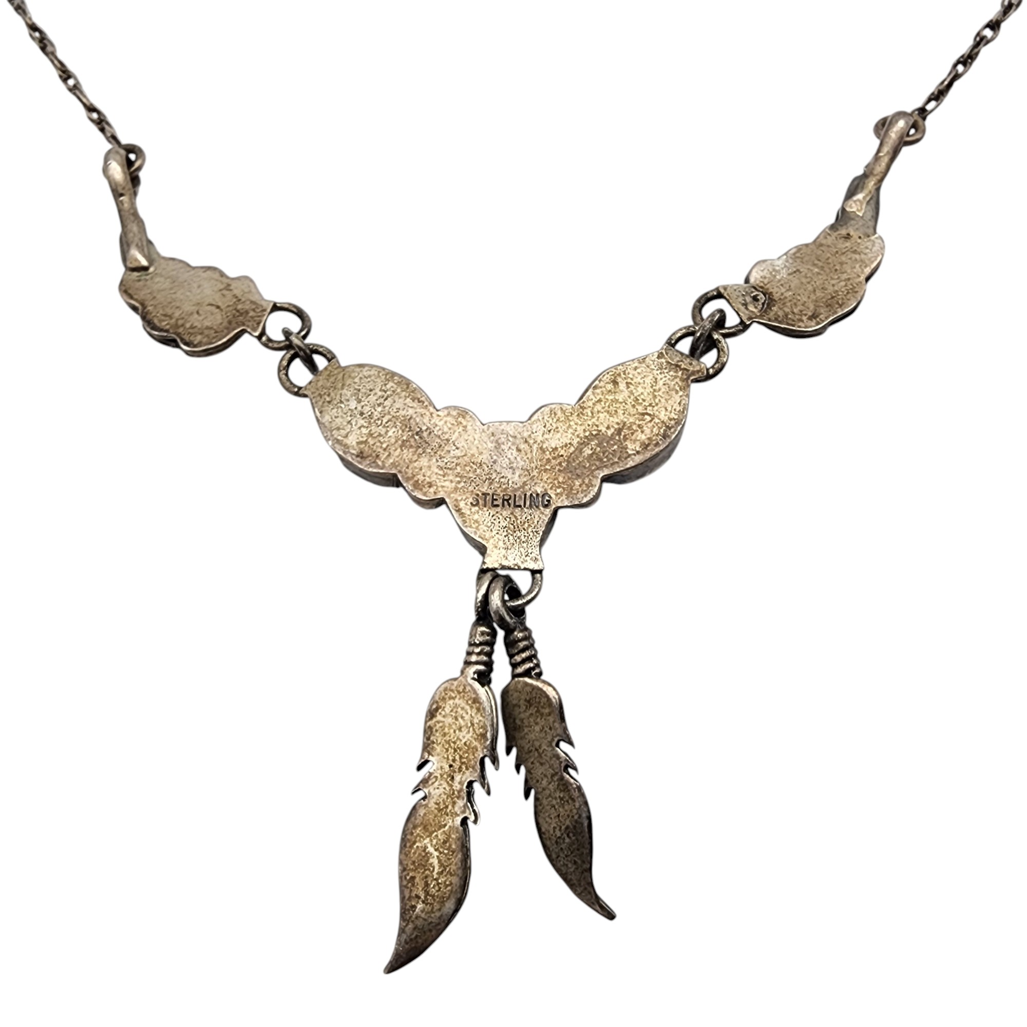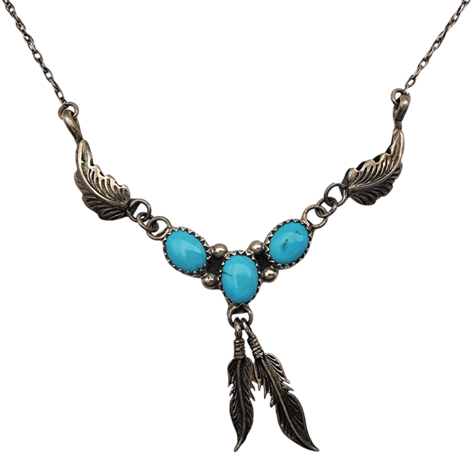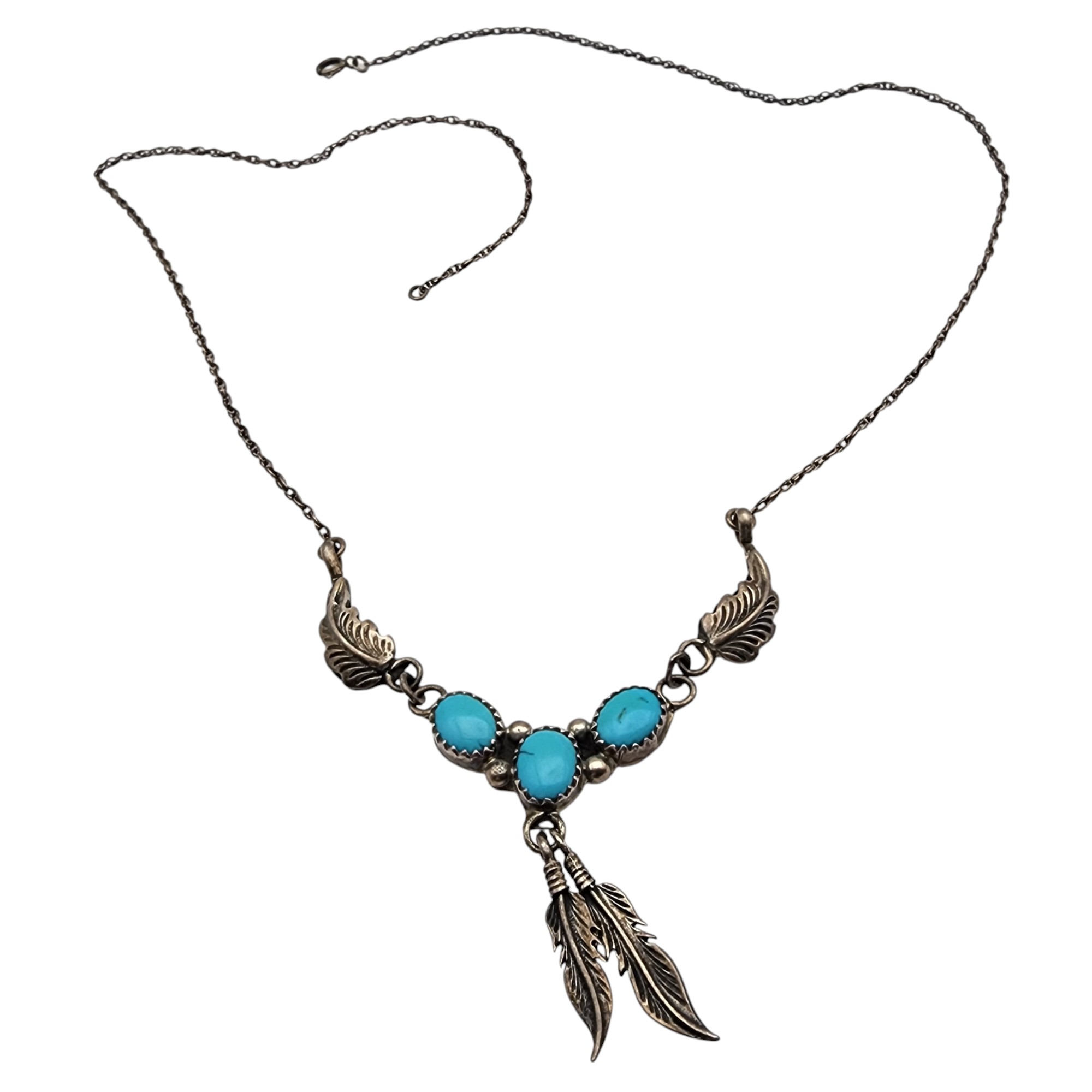 Vintage Navajo Sterling Turquoise Feather Necklace, 6.7g, total necklace length: 23″